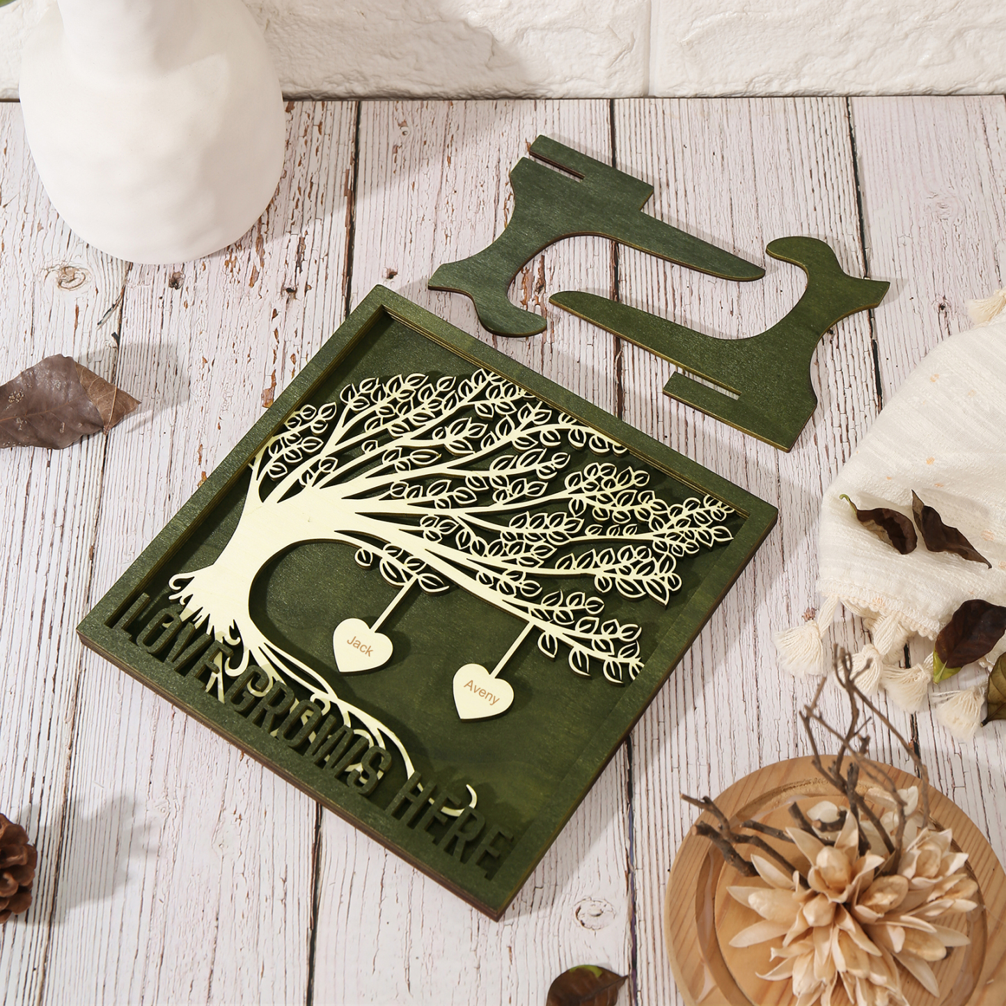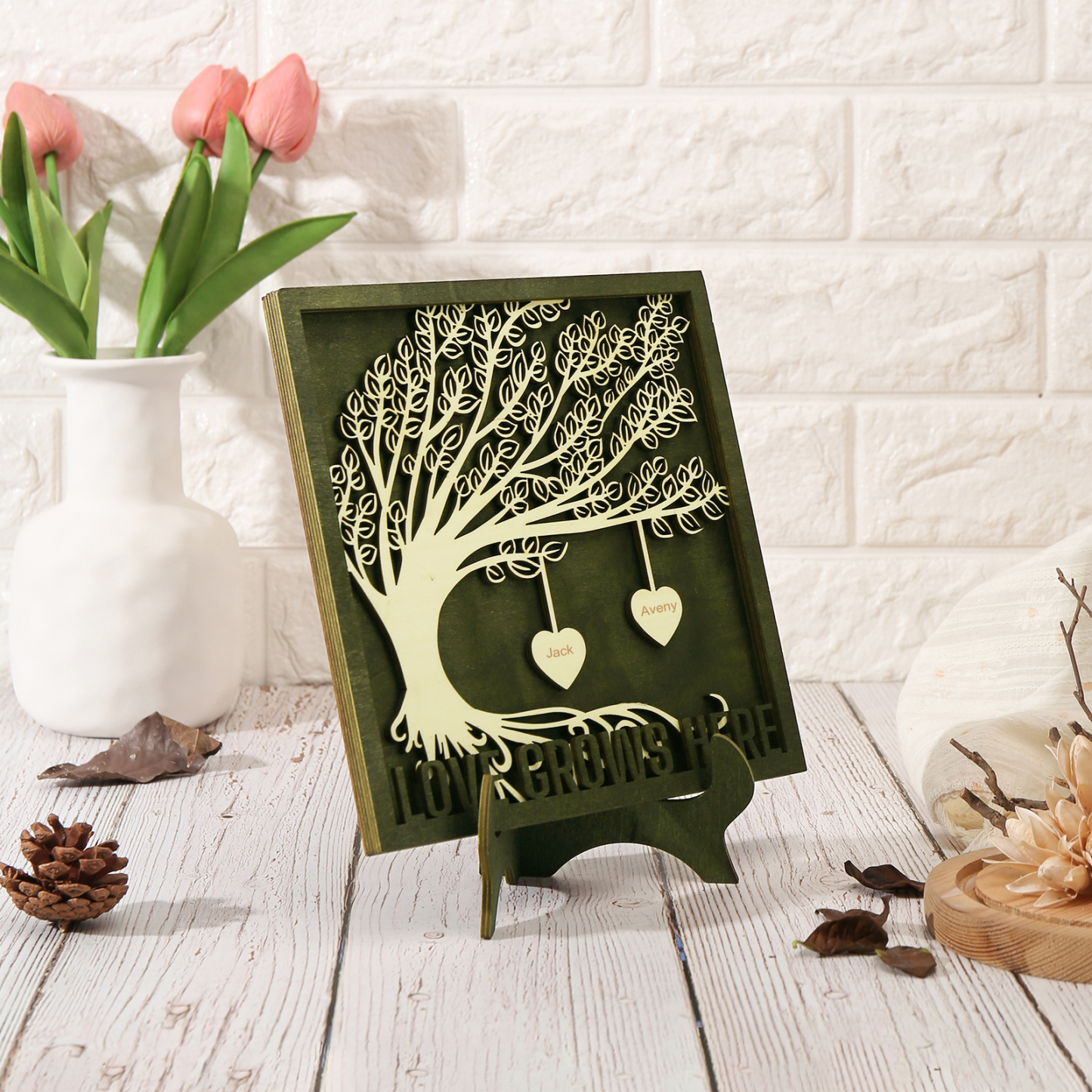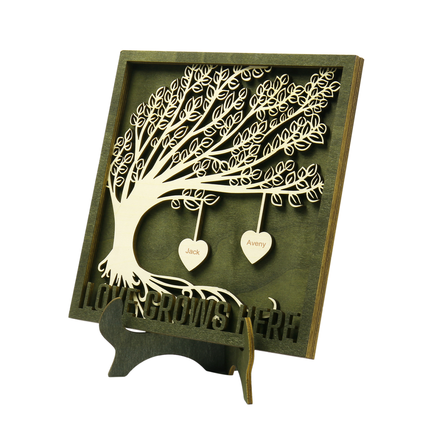 2 Names - Customized Tree Type Wooden Ornaments Decorations Text Love Grows Here