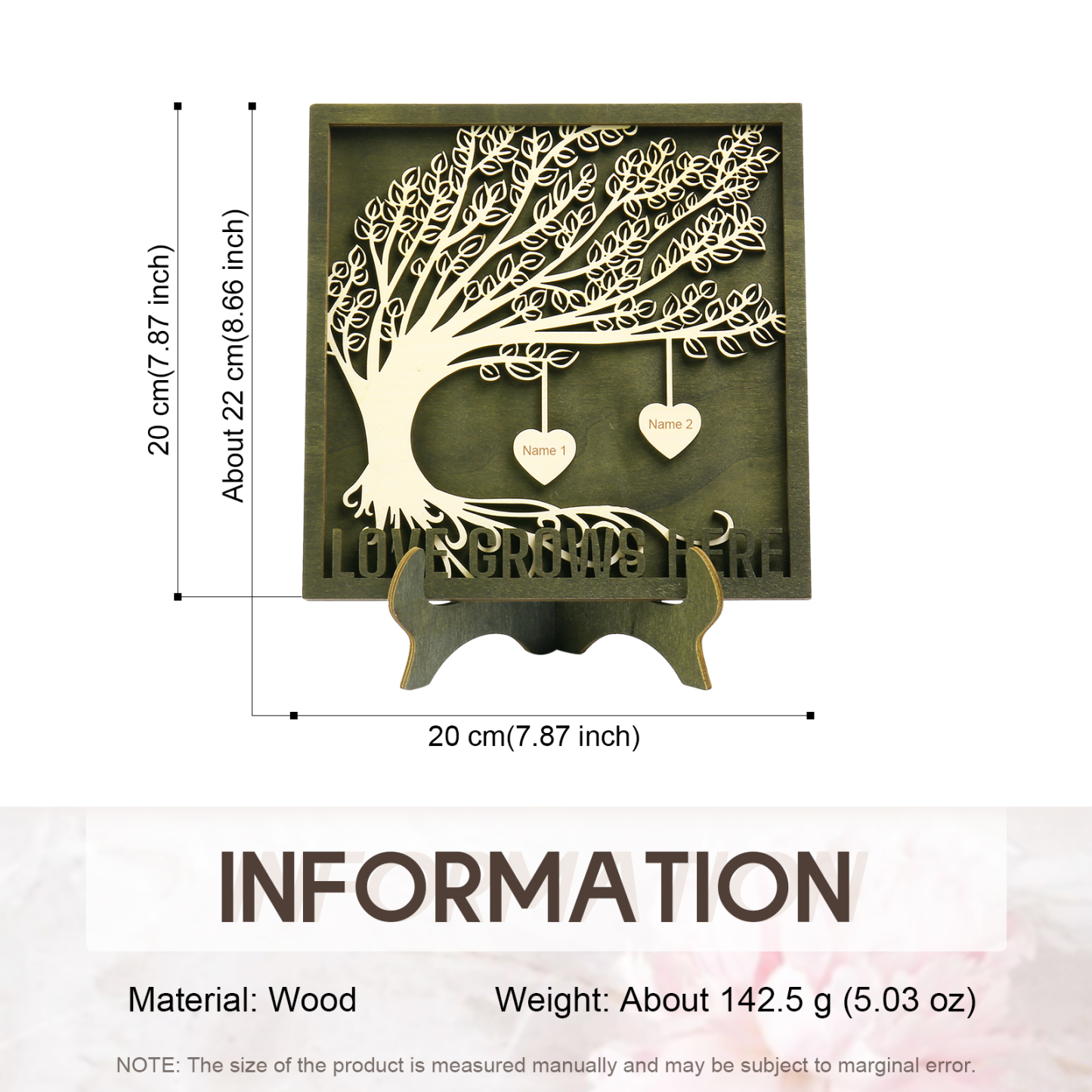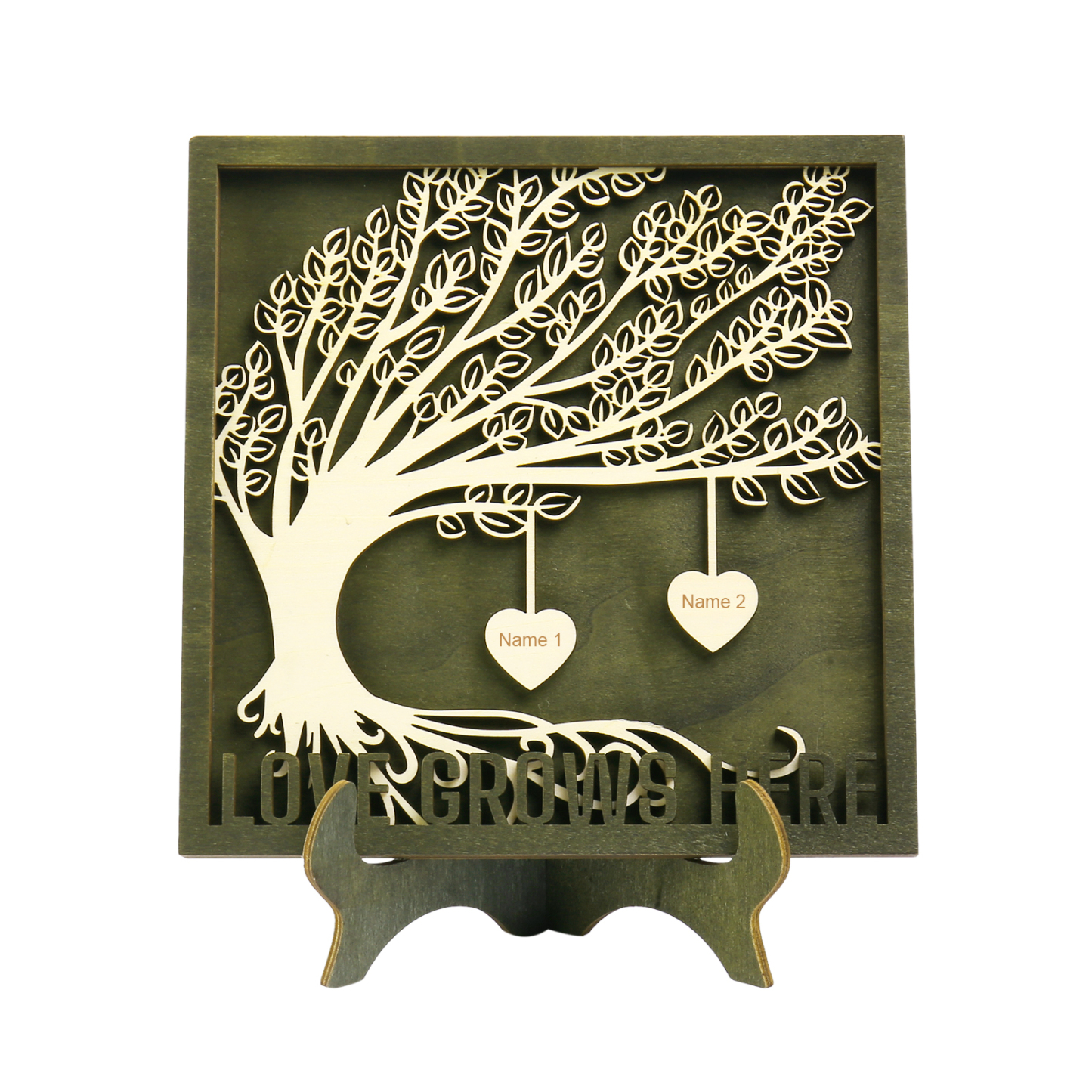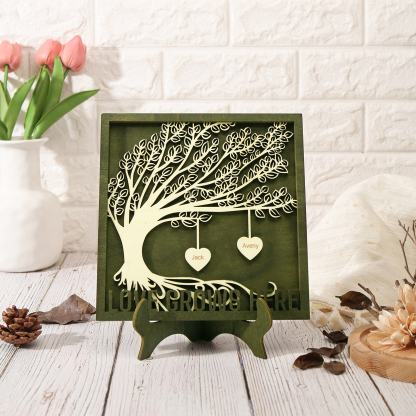 2 Names - Customized Framily Tree Type Wooden Ornaments Decorations Text Love Grows Here