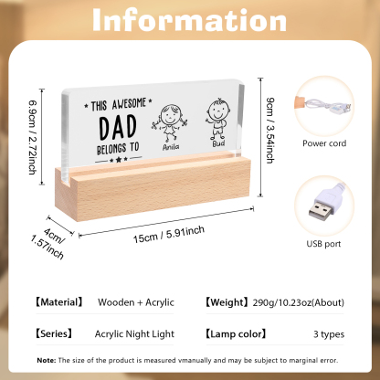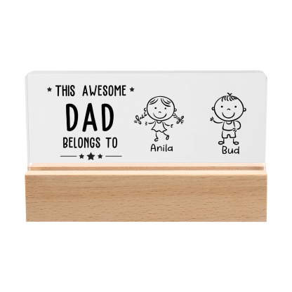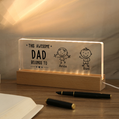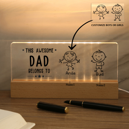 2 Names & Doll Gender - Personalized Lamp -This Awesome Dad Belongs To - Father's Day Gift for Dad