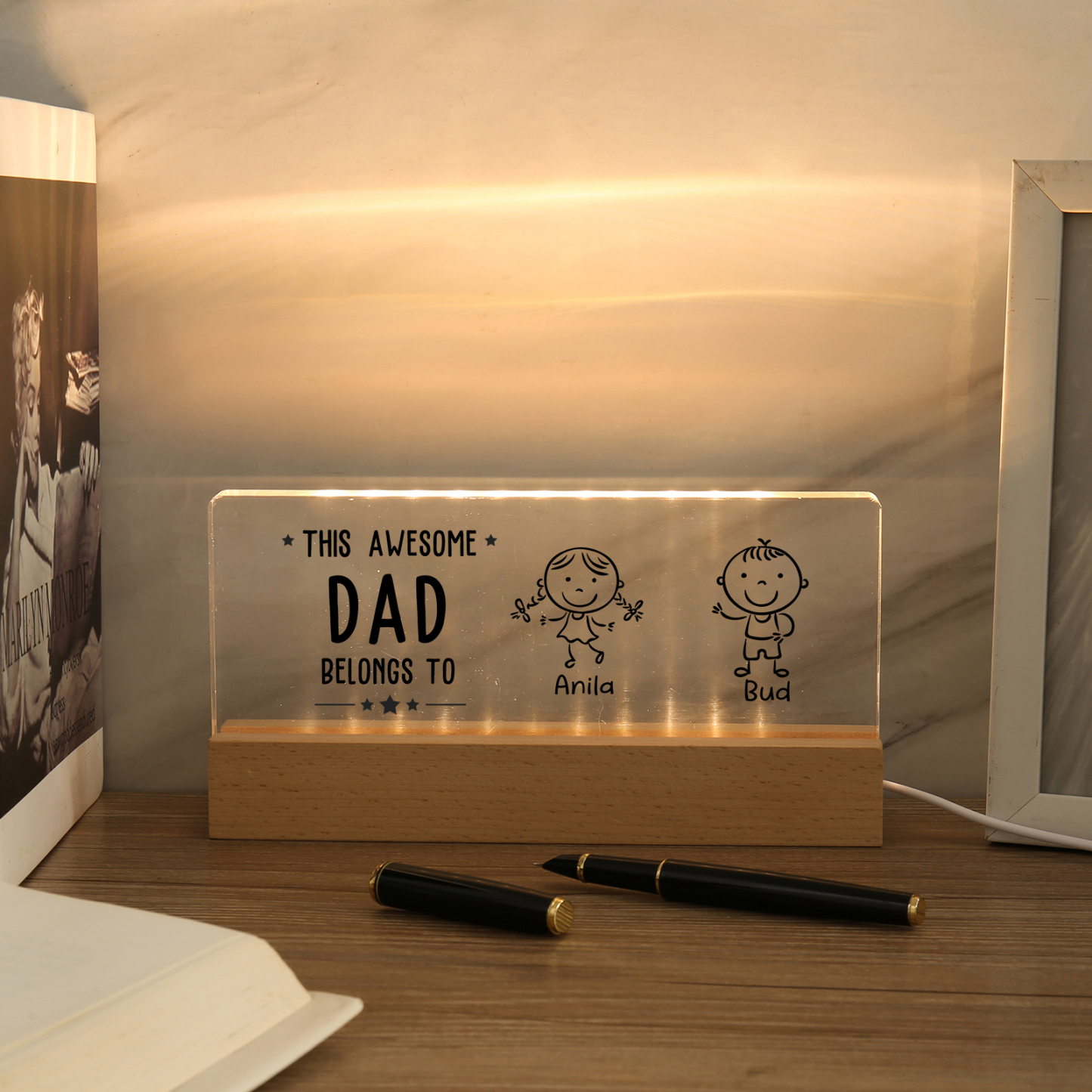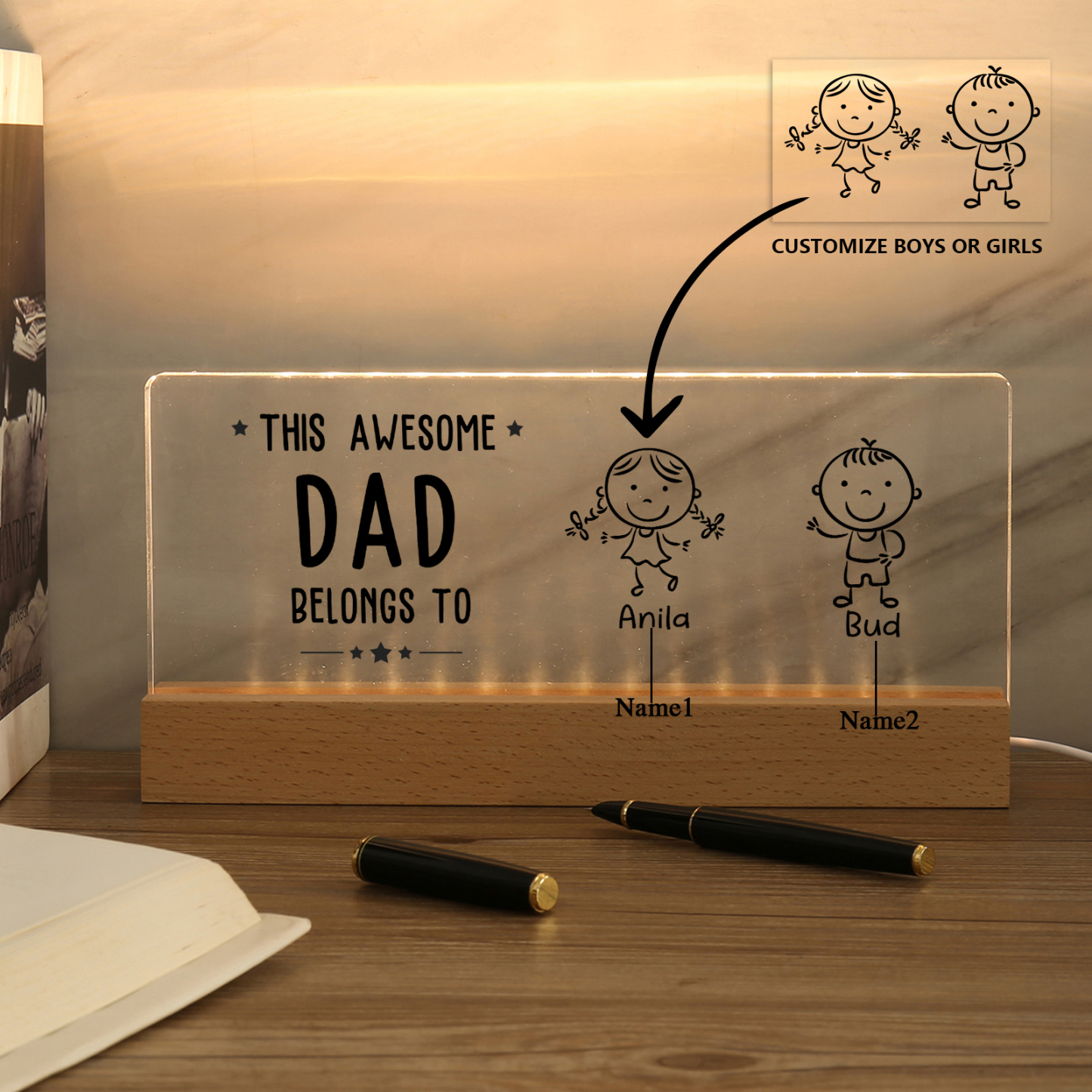 💡Customize this doll desk lamp with Dad's name! 🌟 Light up Dad's world with a unique gift. ❤️ Featuring Dad's name and an impressive doll design, this stylish desk lamp will add a modern touch to his space. Brighten his day with personalized warmth and style. Order now to brighten his day! 🥰