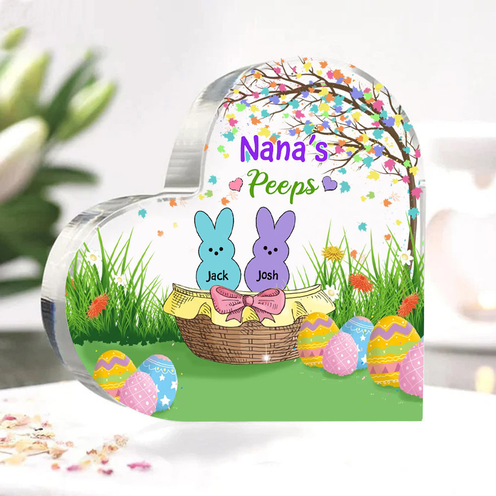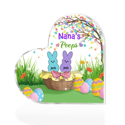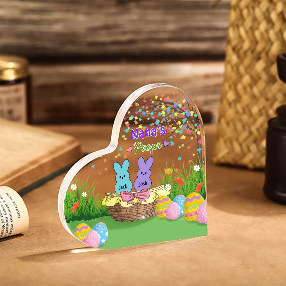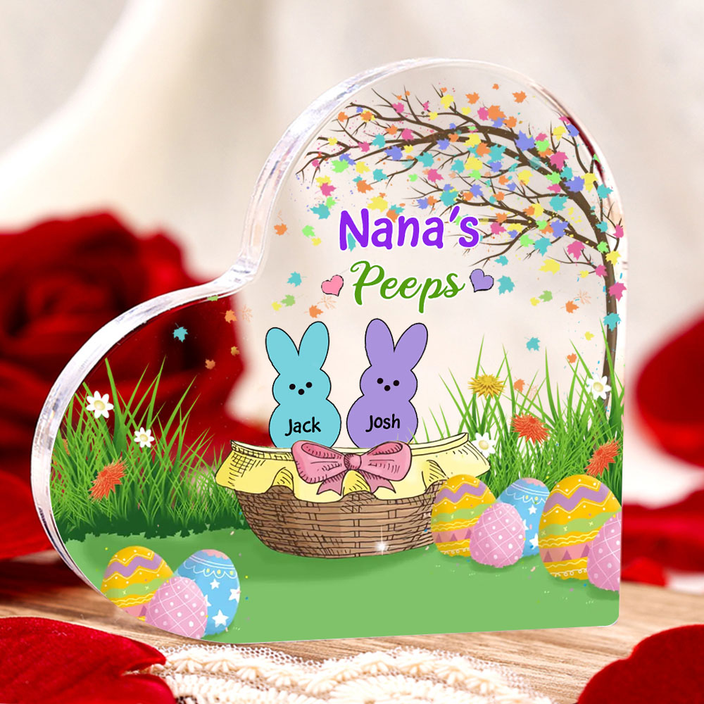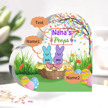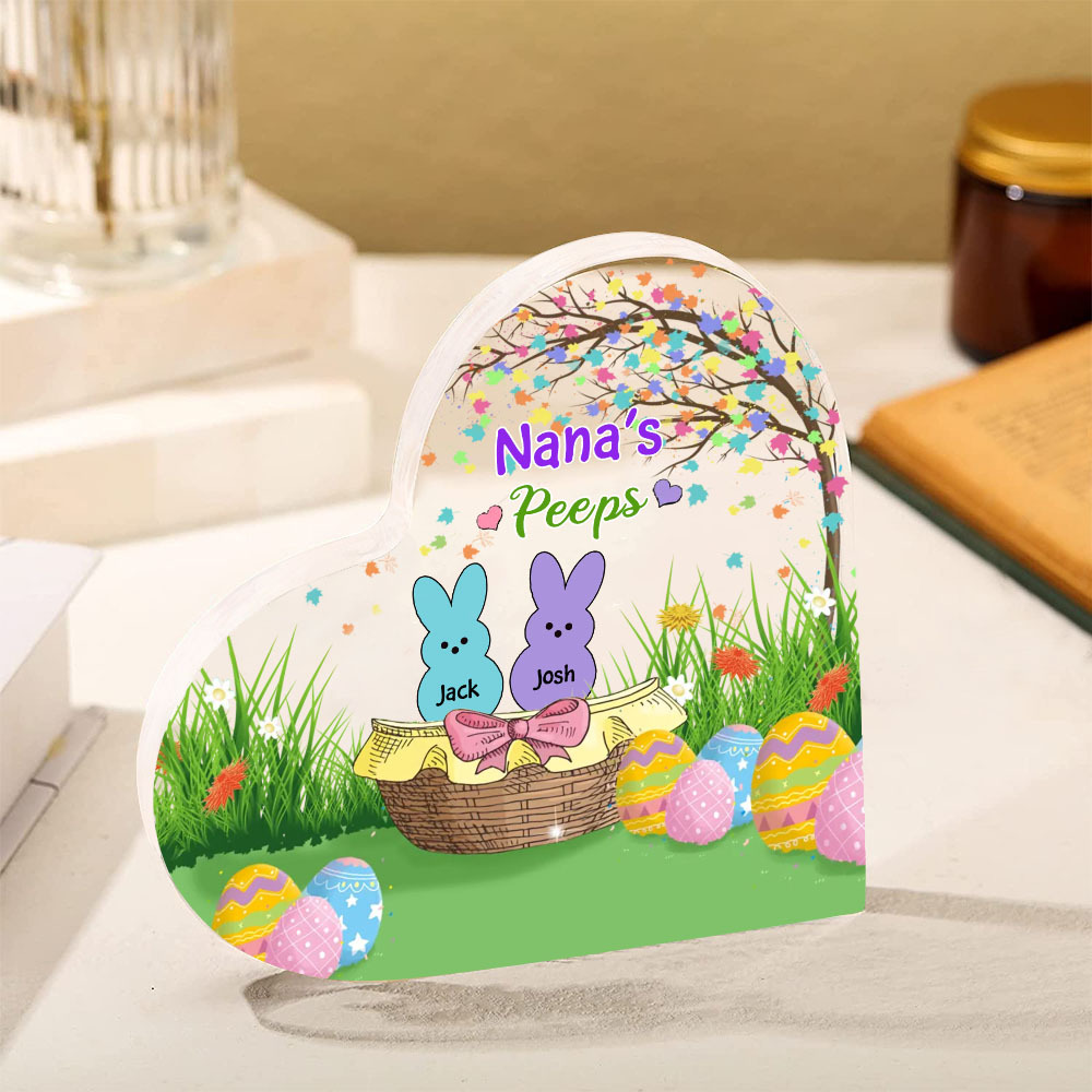 2 Names-Personalized Acrylic Heart Keepsake Custom Acrylic plaque Names Bunny Ornaments Gifts for Mum/Nan/Nana