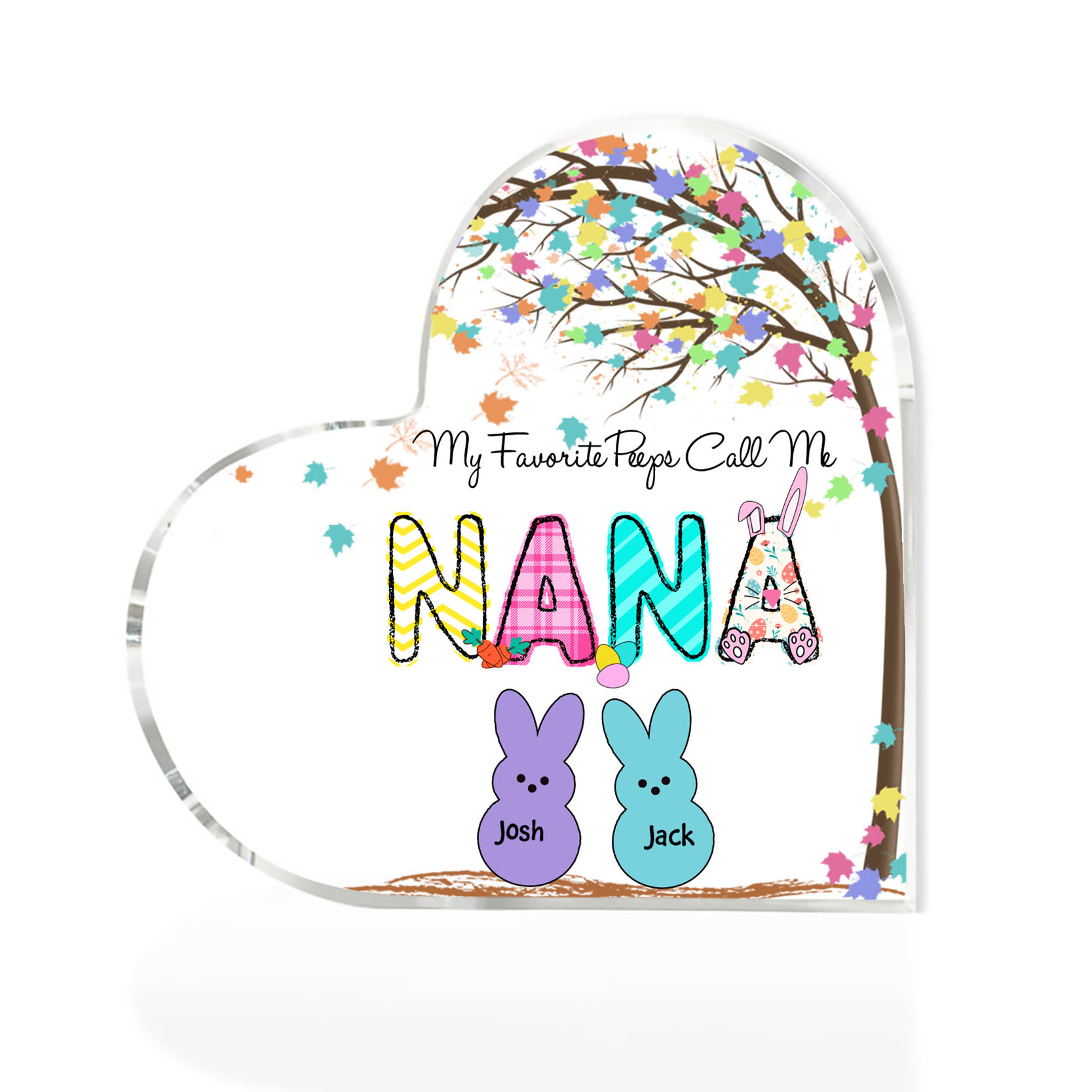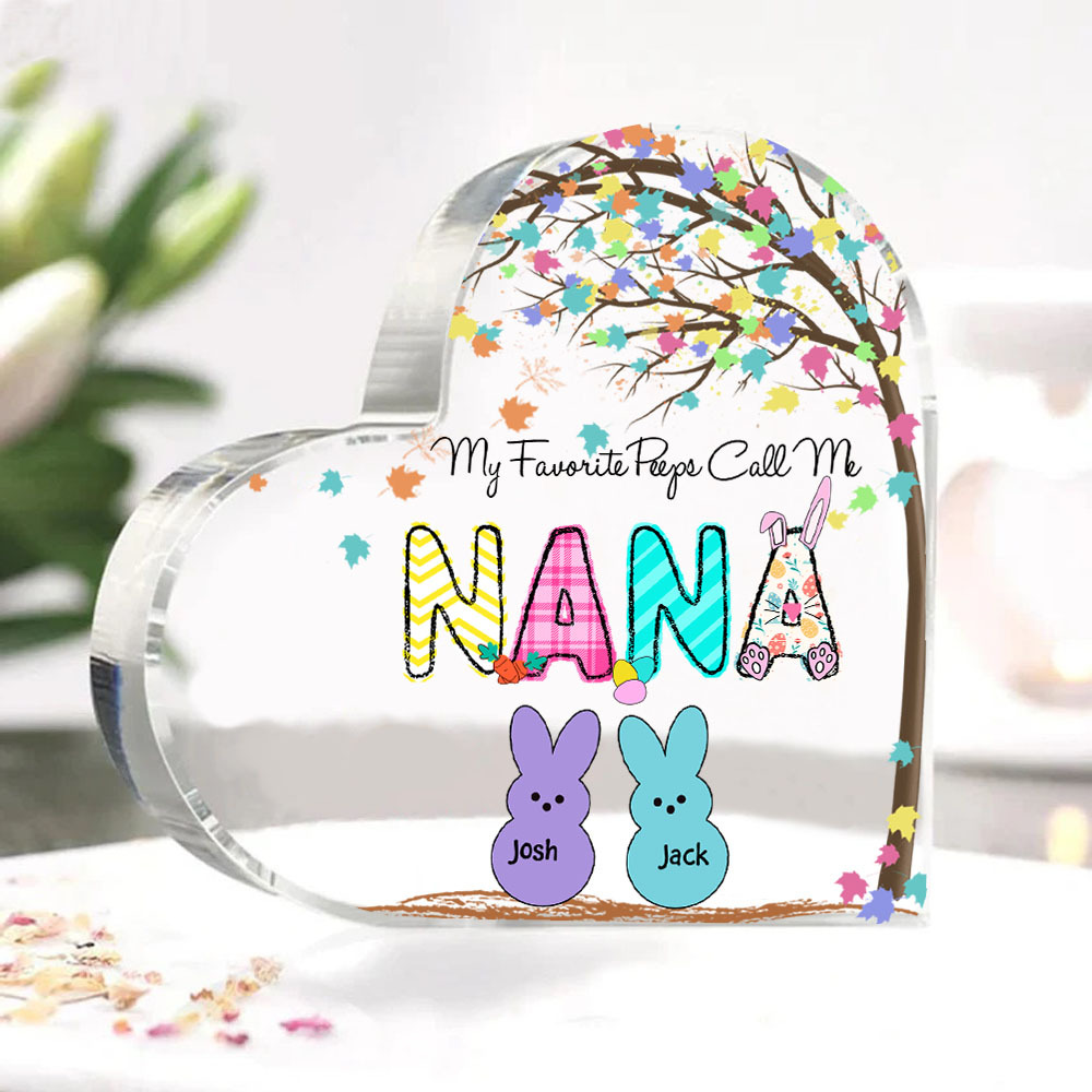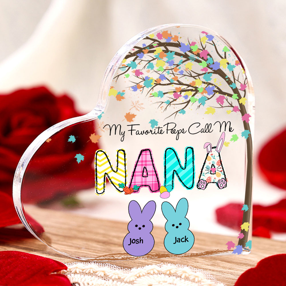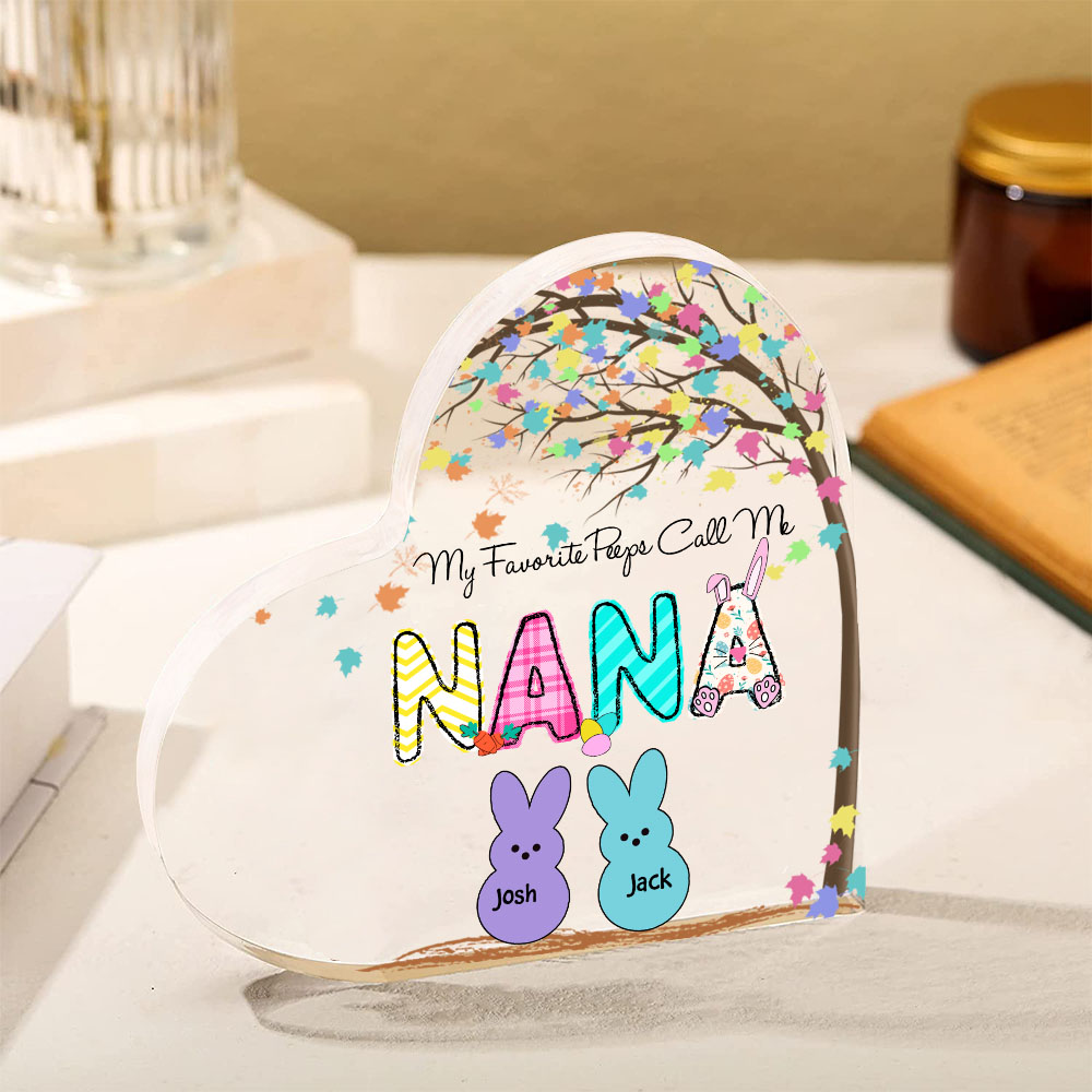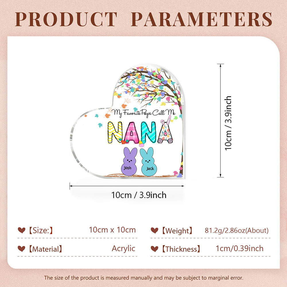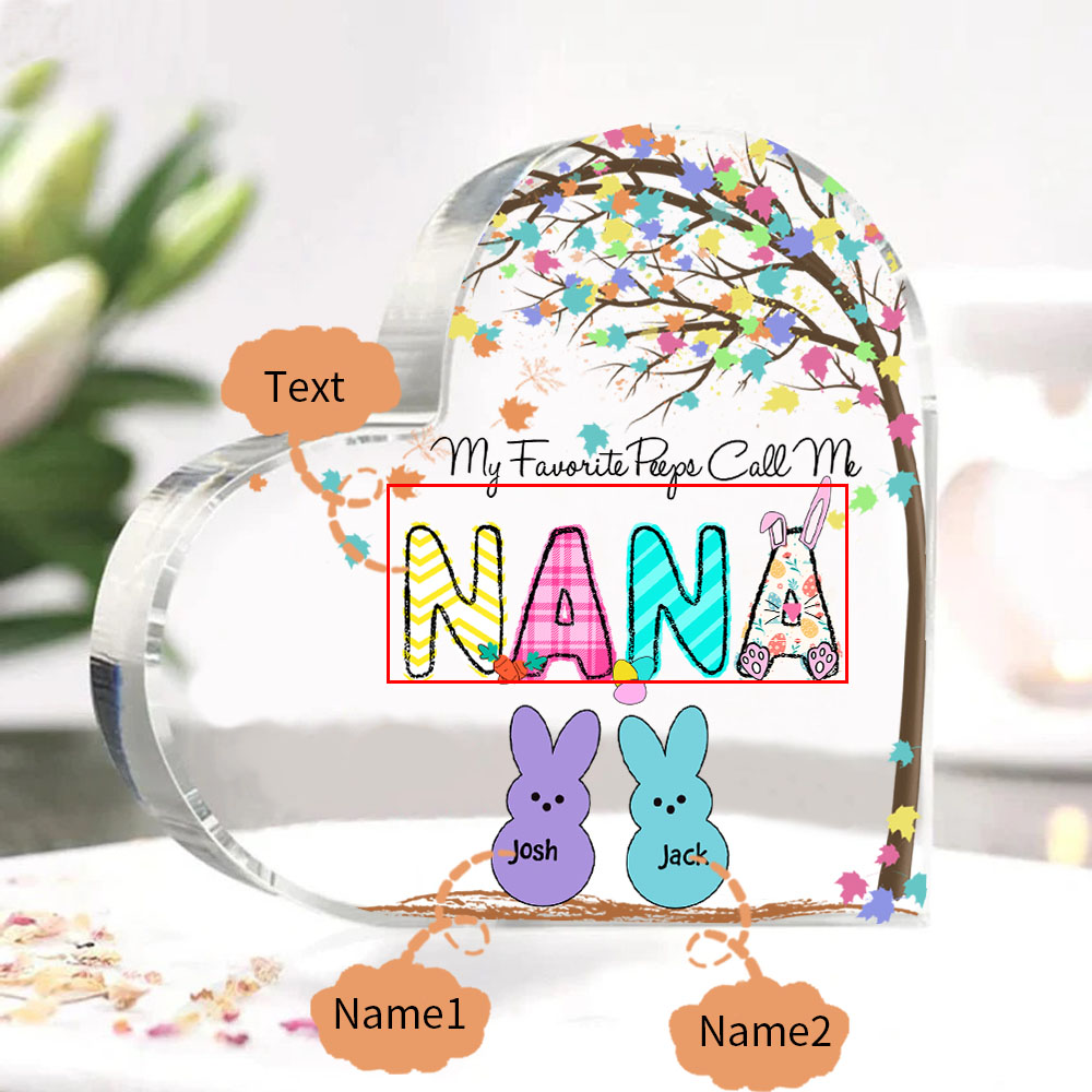 2 Names-Personalized Acrylic Heart Keepsake Custom Names Bunny Acrylic plaque Ornaments Gifts for Mum/Nan/Nana
