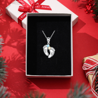 2 Names-Personalized Baby Foot Necklace Gift Set With Gift Box-Custom Women Necklace With 2 Birthstones Engraved Names Gift For Mother/Nan/Her