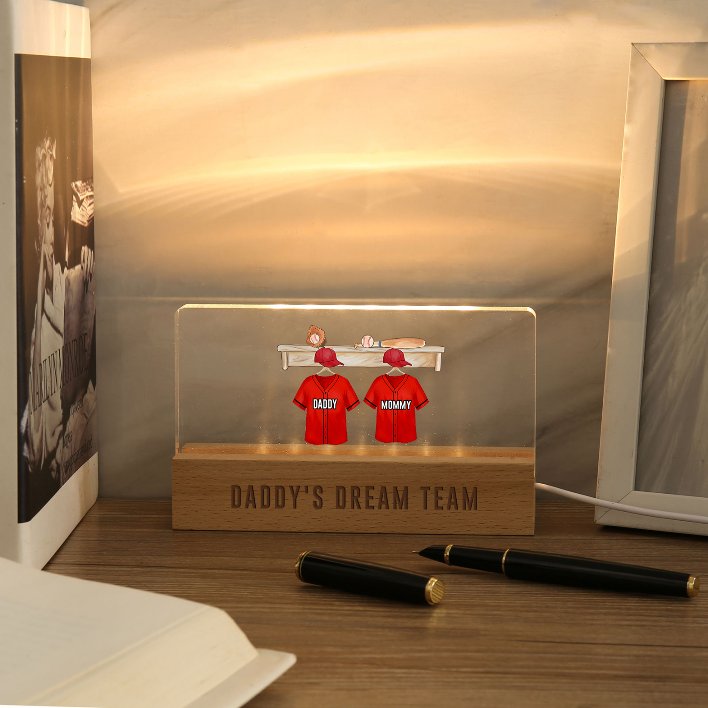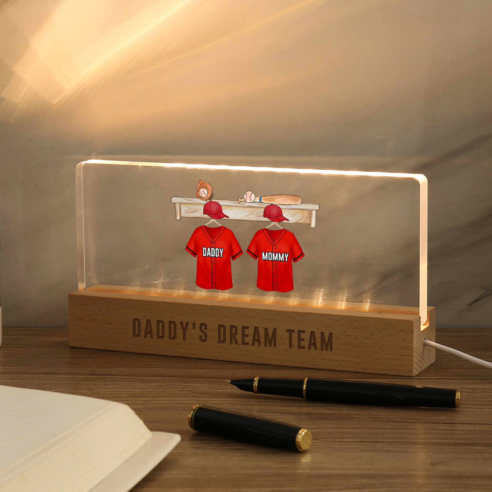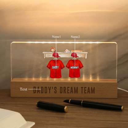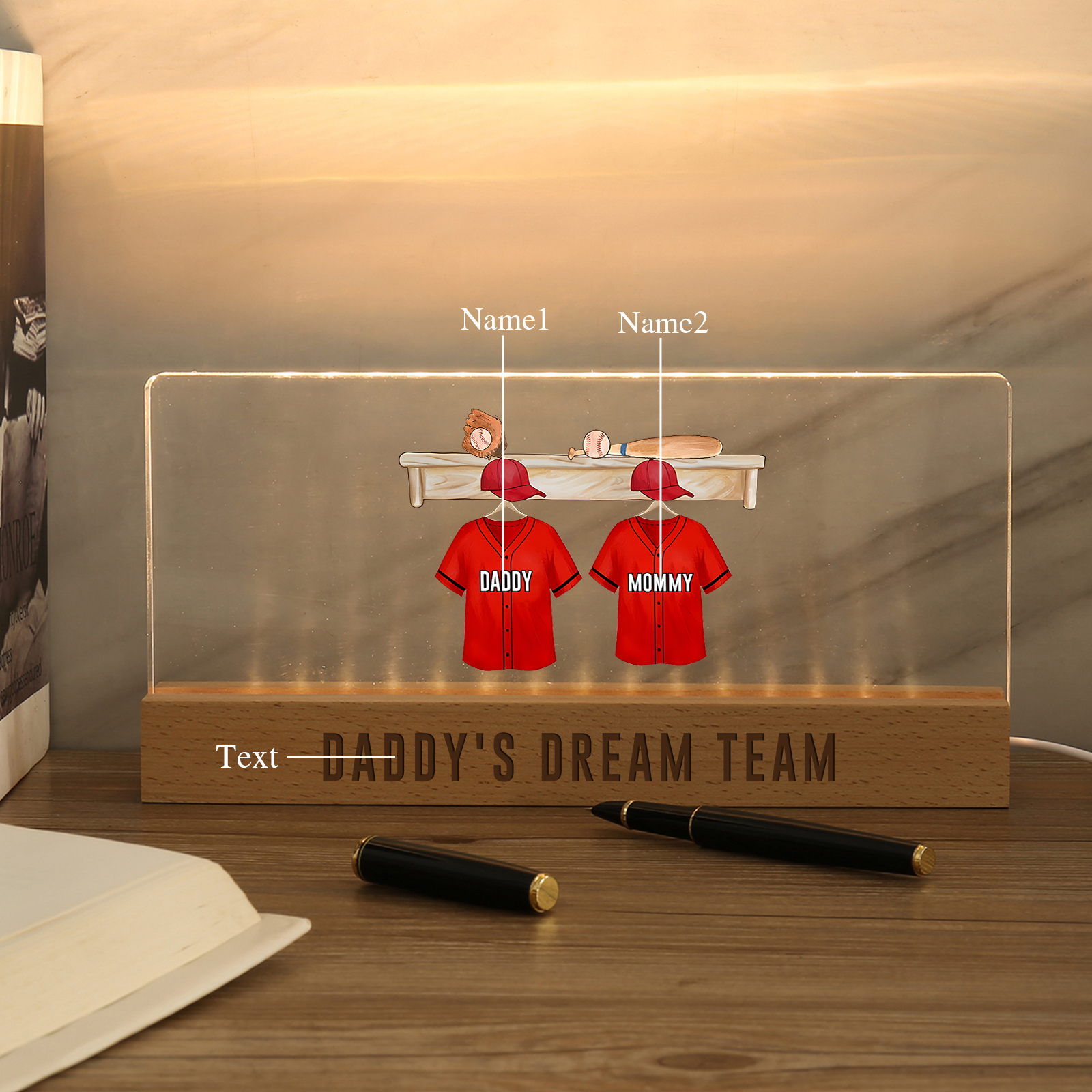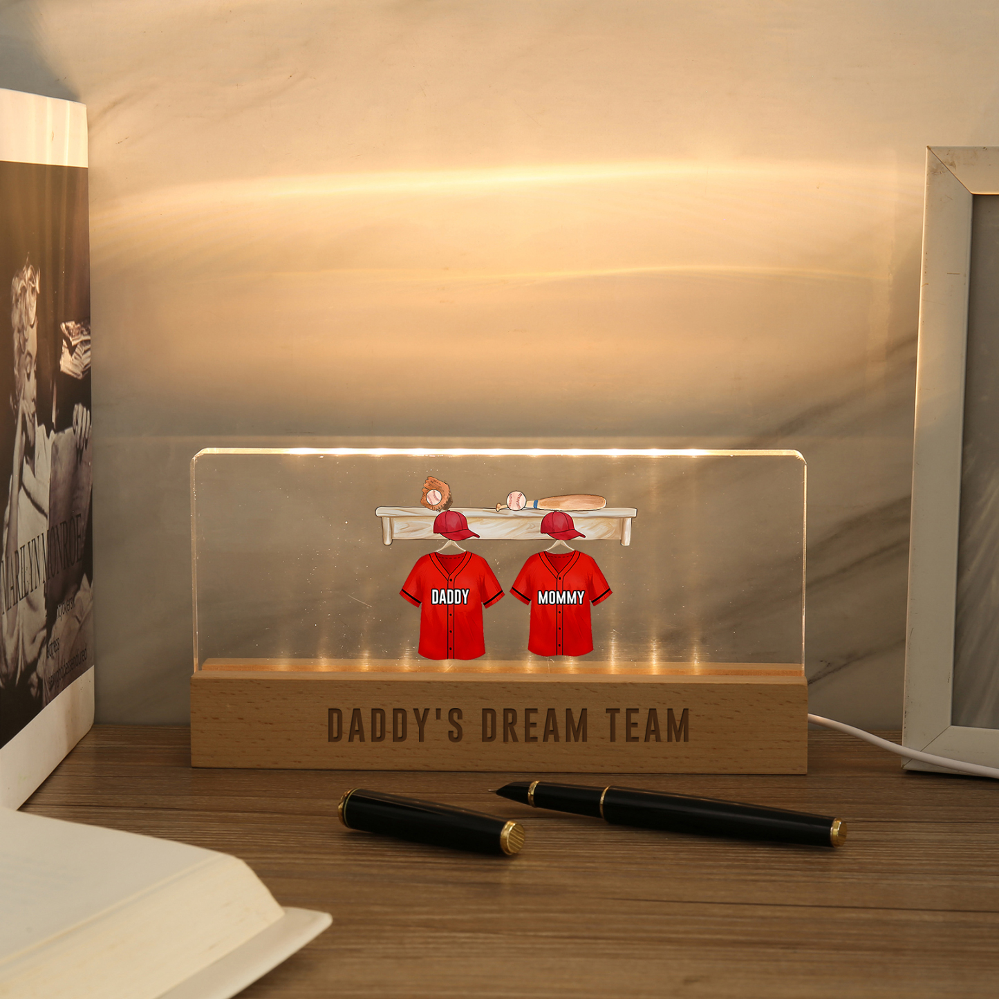 2 Names - Personalized Baseball Jersey Desk Lamp - Dad's Dream Team - Father's Day Gift for Dad