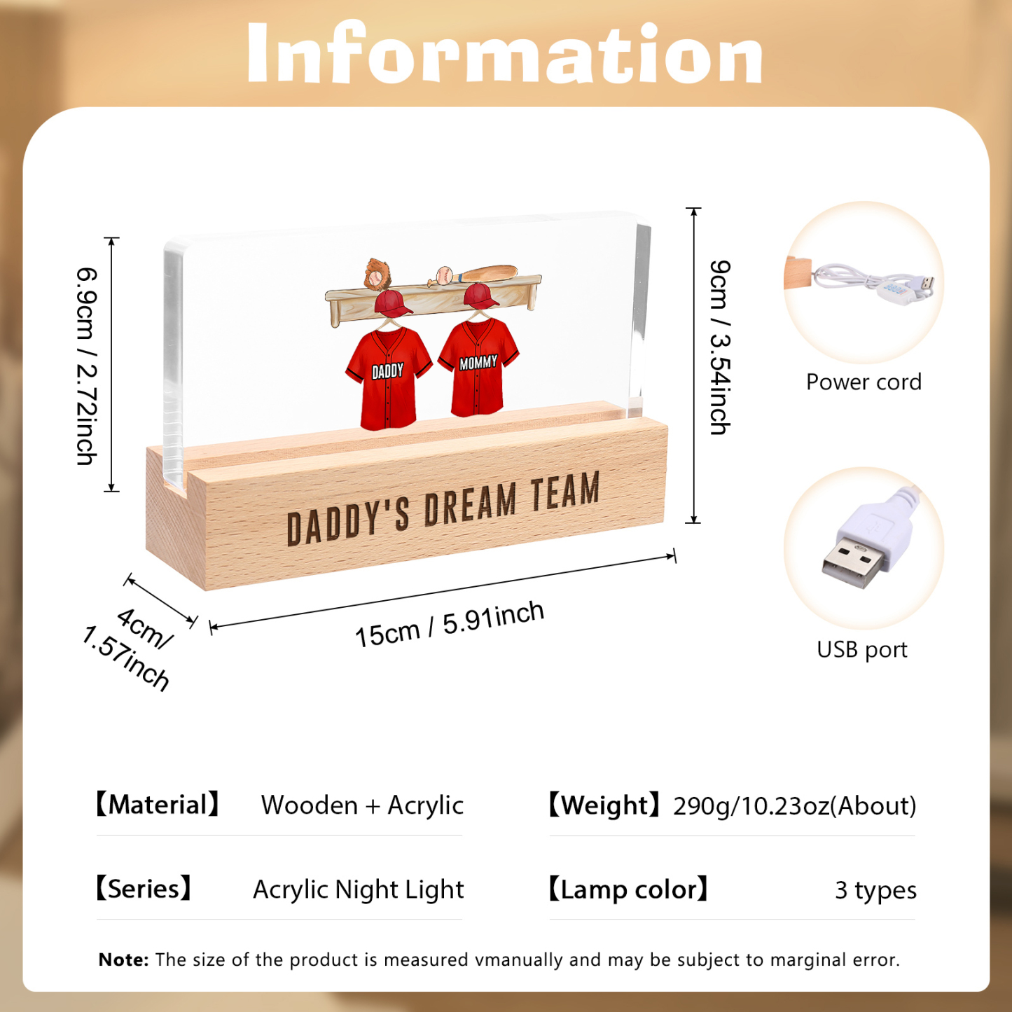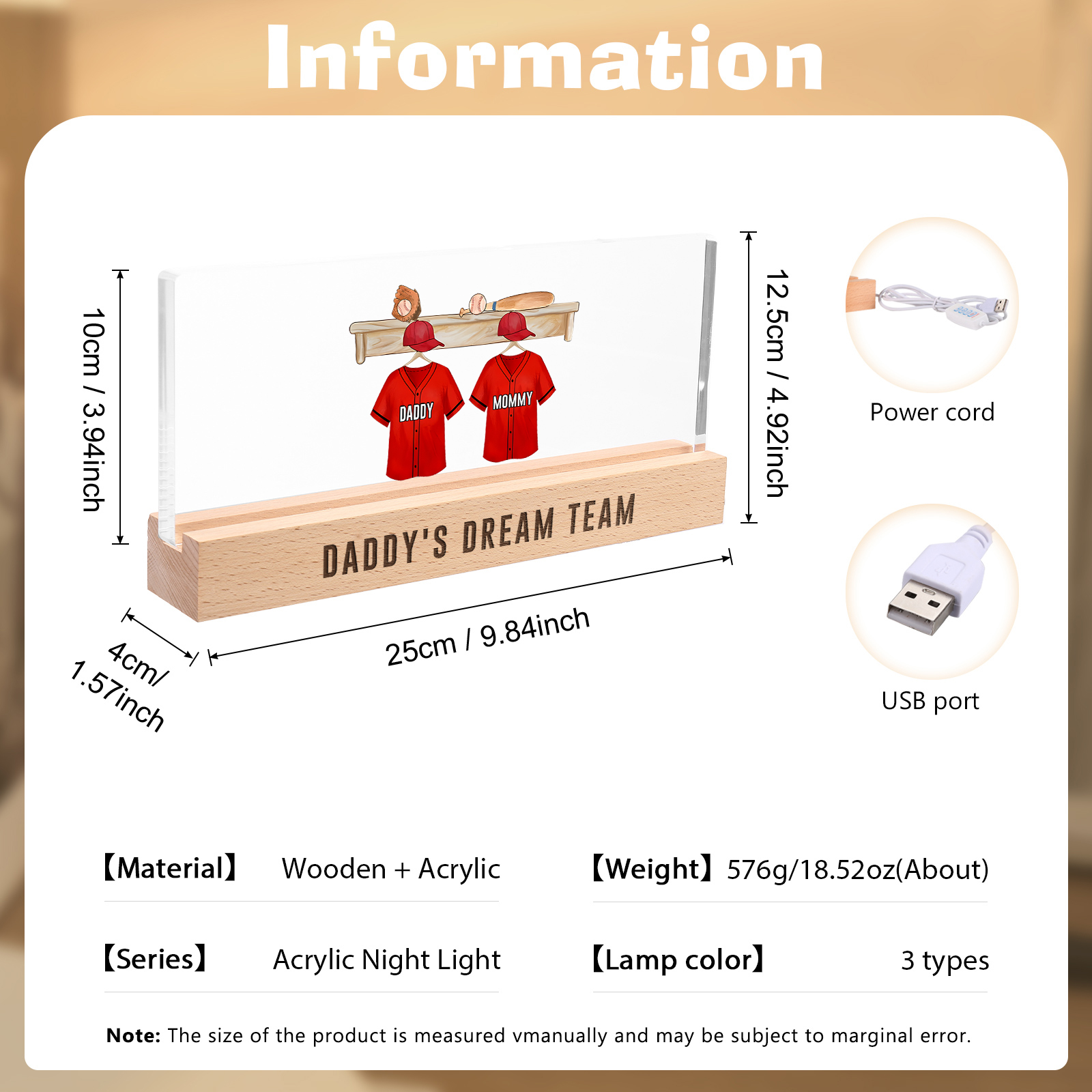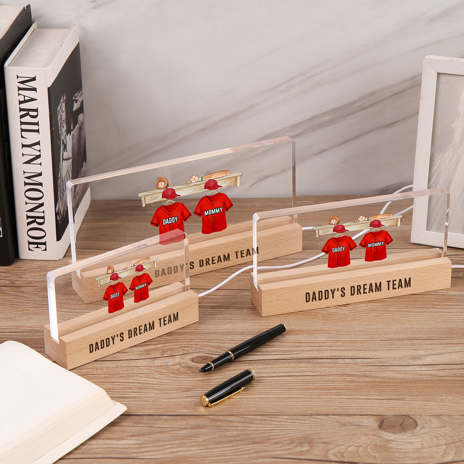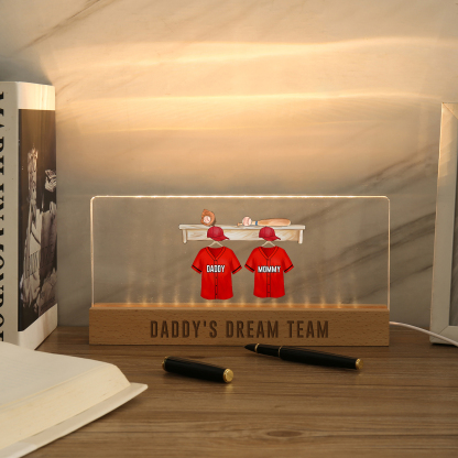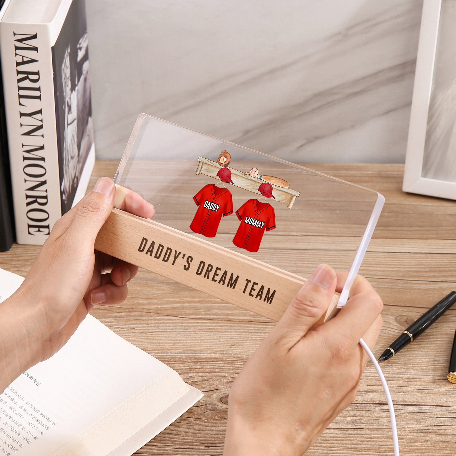 2 Names - Personalized Baseball Jersey Desk Lamp - Dad's Dream Team - Father's Day Gift for Dad