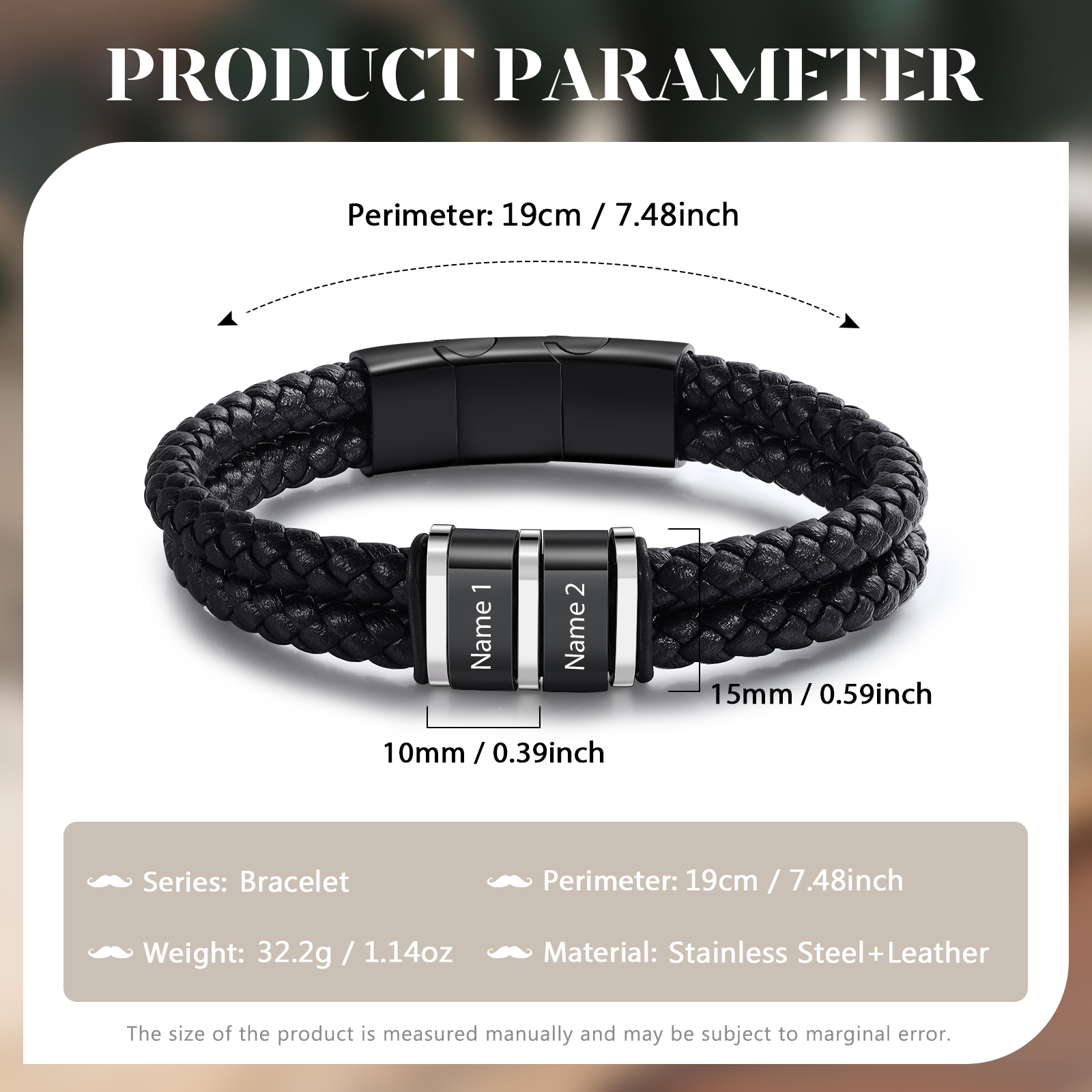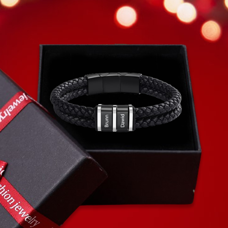2 Names-Personalized Bead Bracelet Custom Men's Bracelet Engraved Name Personalized Gift Set With Gift Box for Him
