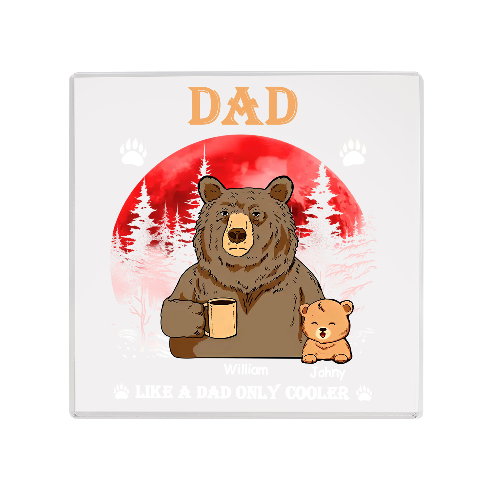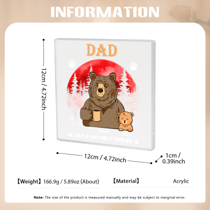 2 Names - Personalized Bear Family Pattern Custom Name Acrylic Square Ornament Father's Day Gift