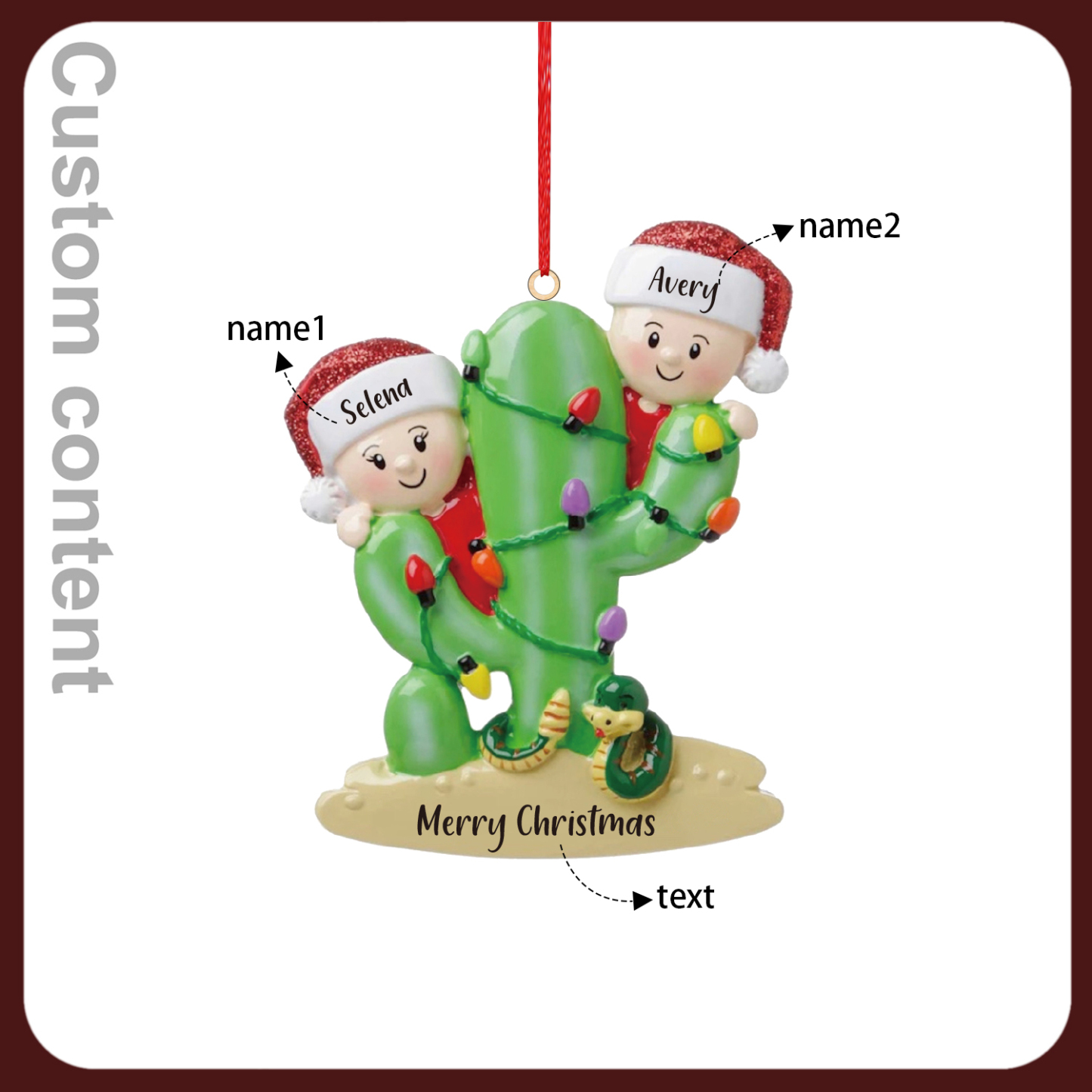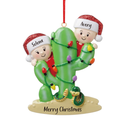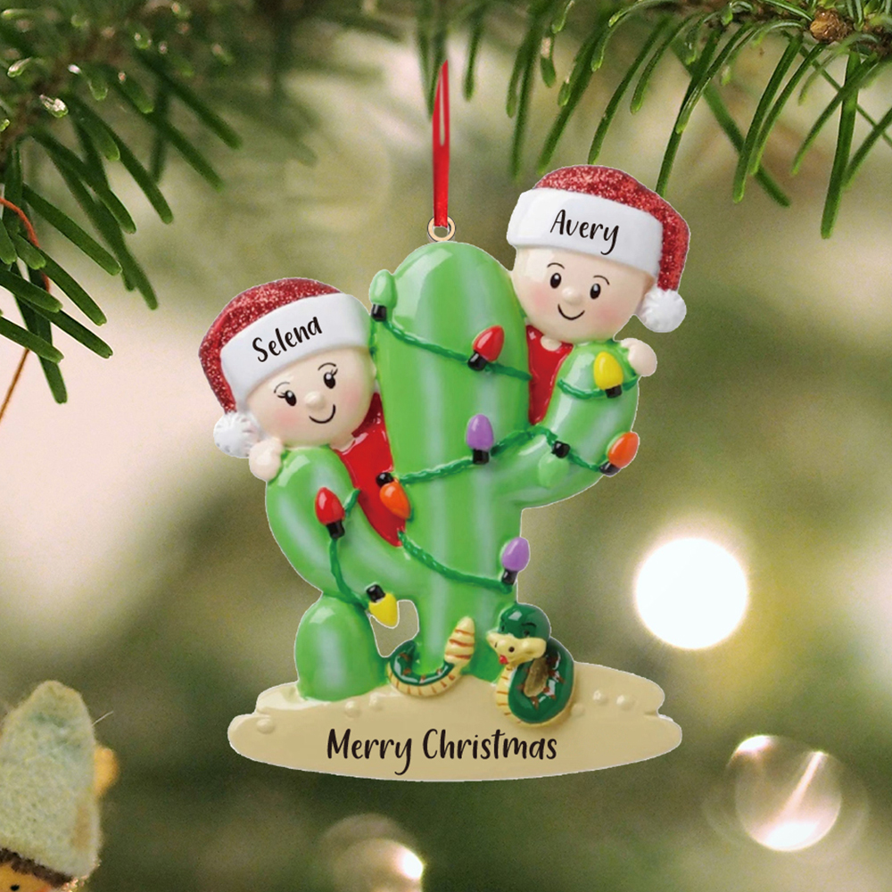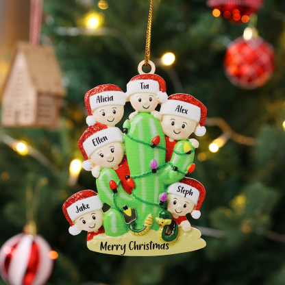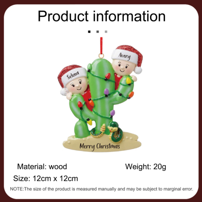 2 Names-Personalized Cactus Family Wooden Christmas Xmas Tree Decoration Ornament-Custom 2 Names Hanging Ornament Gifts For Family