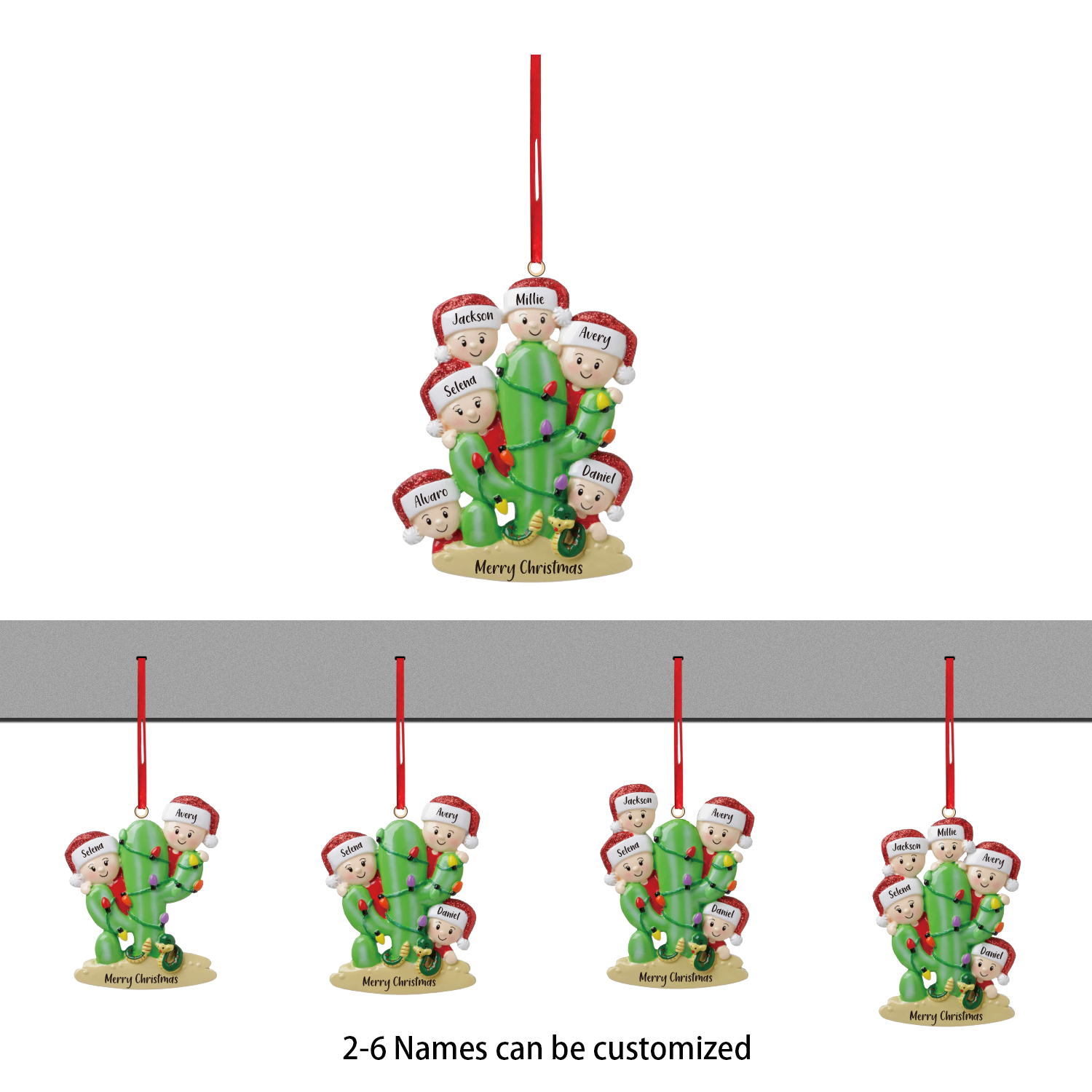 🎁Made of wooden material, 2-6 names and text can be customized, The names of each family member are written on the hats, and a year or family name can be written on the banner. this is a great Christmas gift for the family.