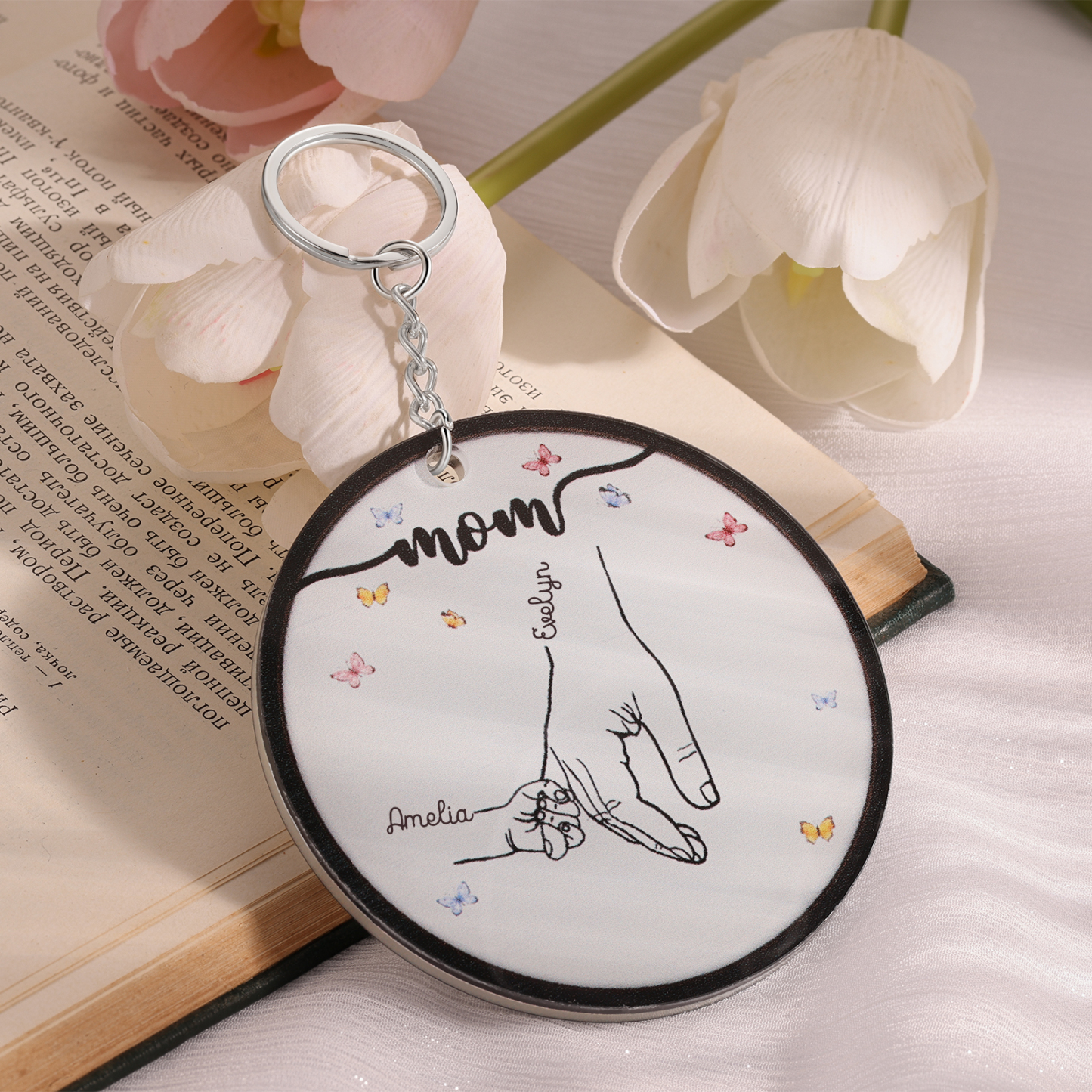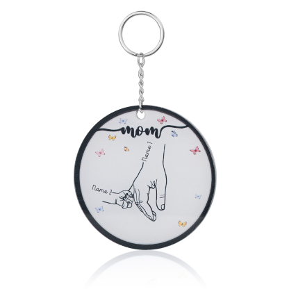 2 Names Personalized Mom Charm Keychain Hooking Engrave Name Special Gift For Mom