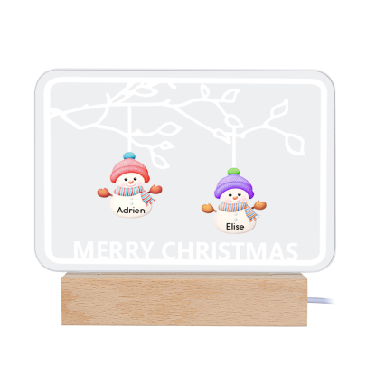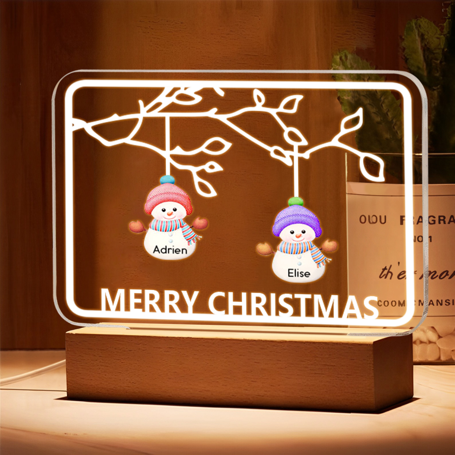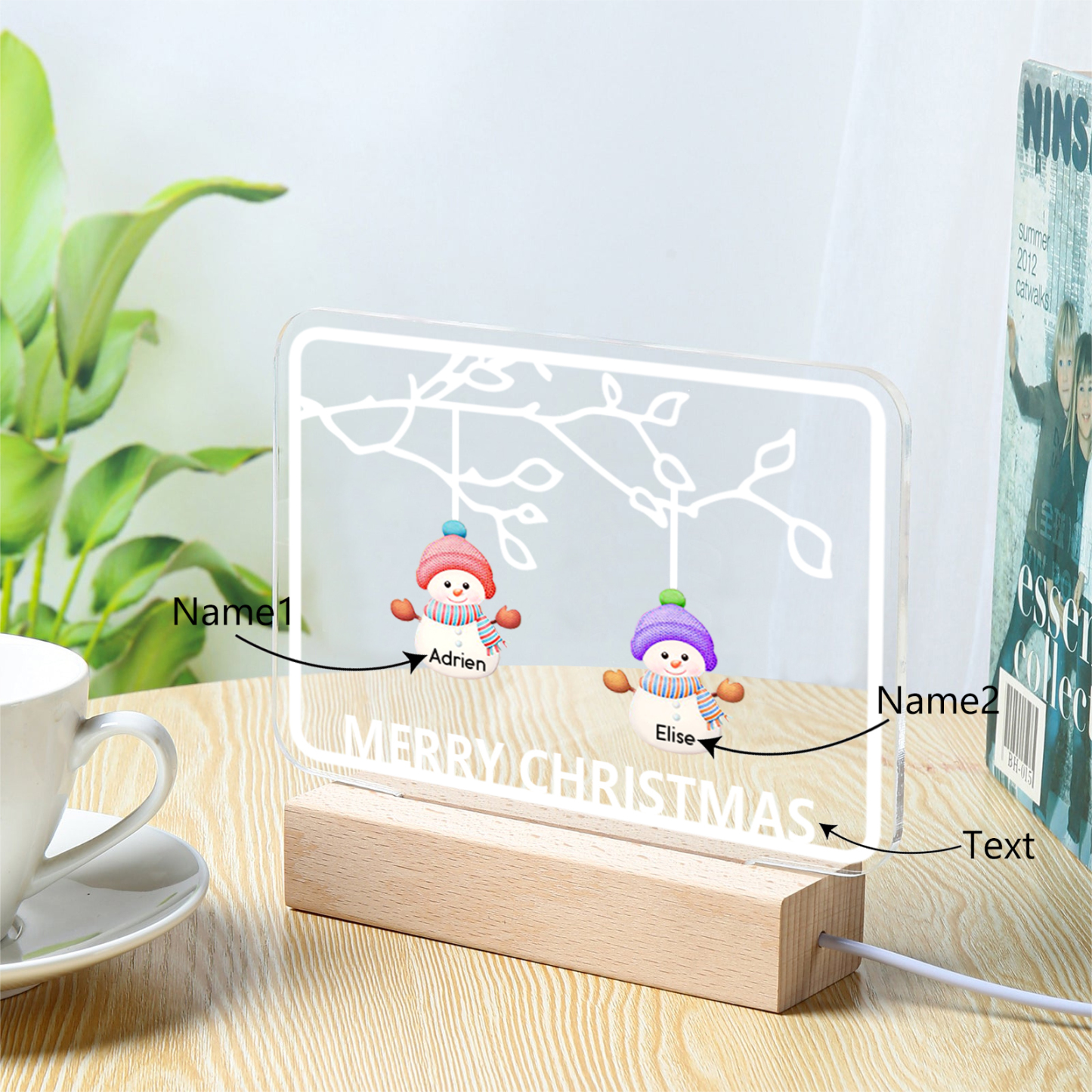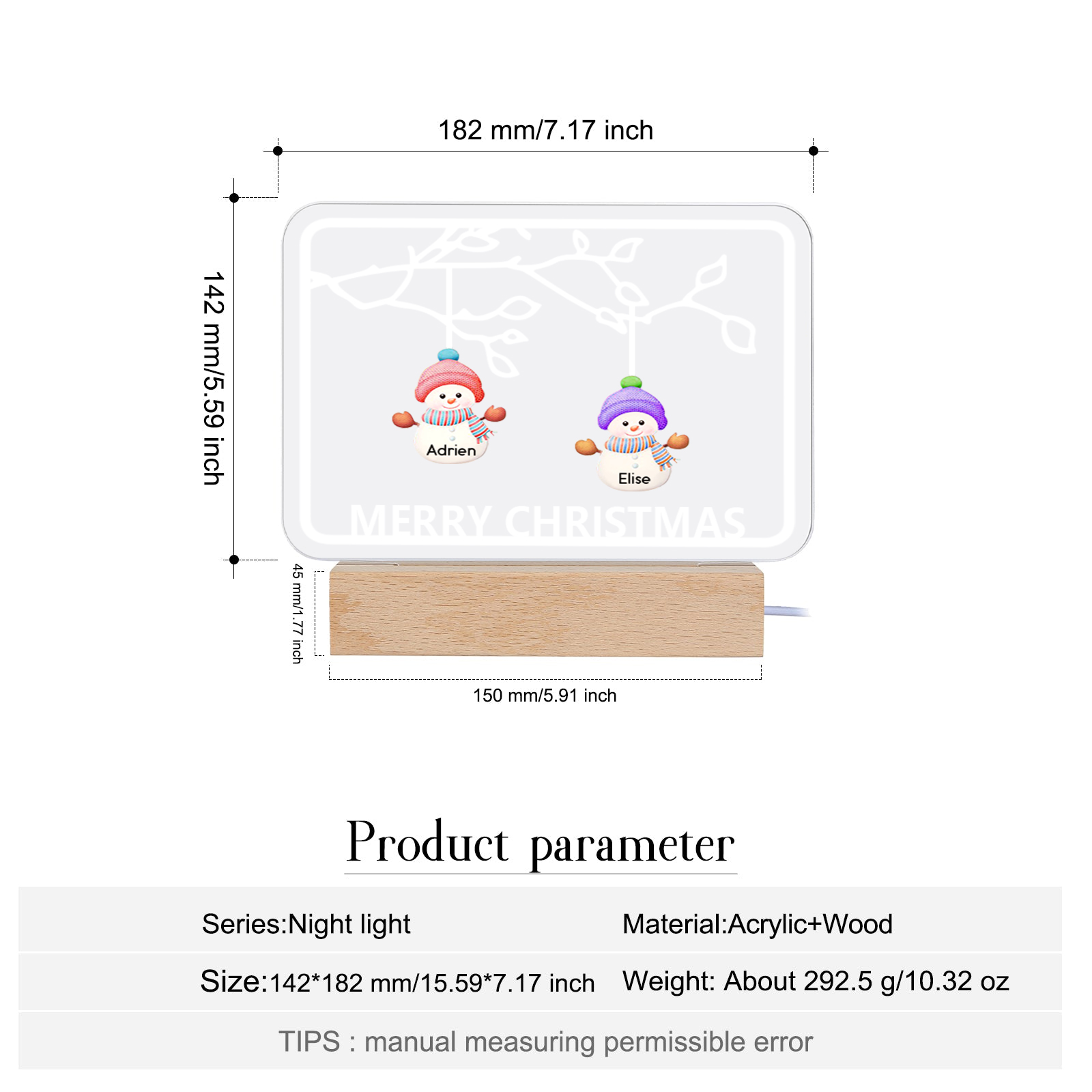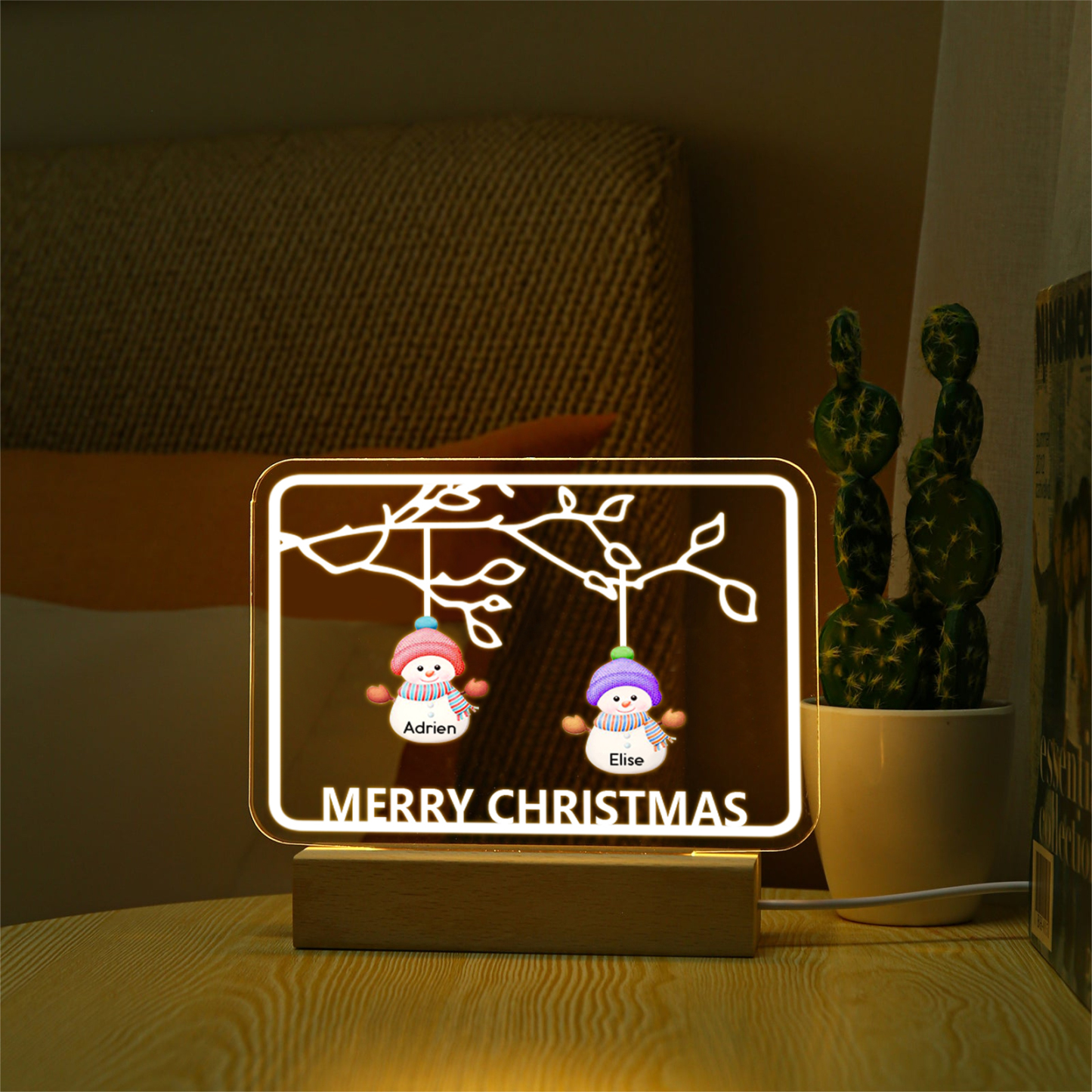 2 Names-Personalized Christmas Family Night Light with Family Member Names, Custom 2 Names Night Light with LED Lighting Bedroom Decoration