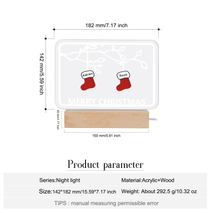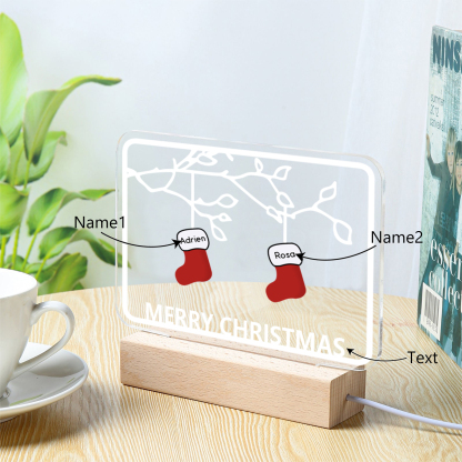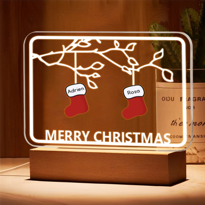 2 Names-Personalized Christmas Family Night Light with Family Member Names, Custom 2 Names Night Light with LED Lighting Bedroom Decoration