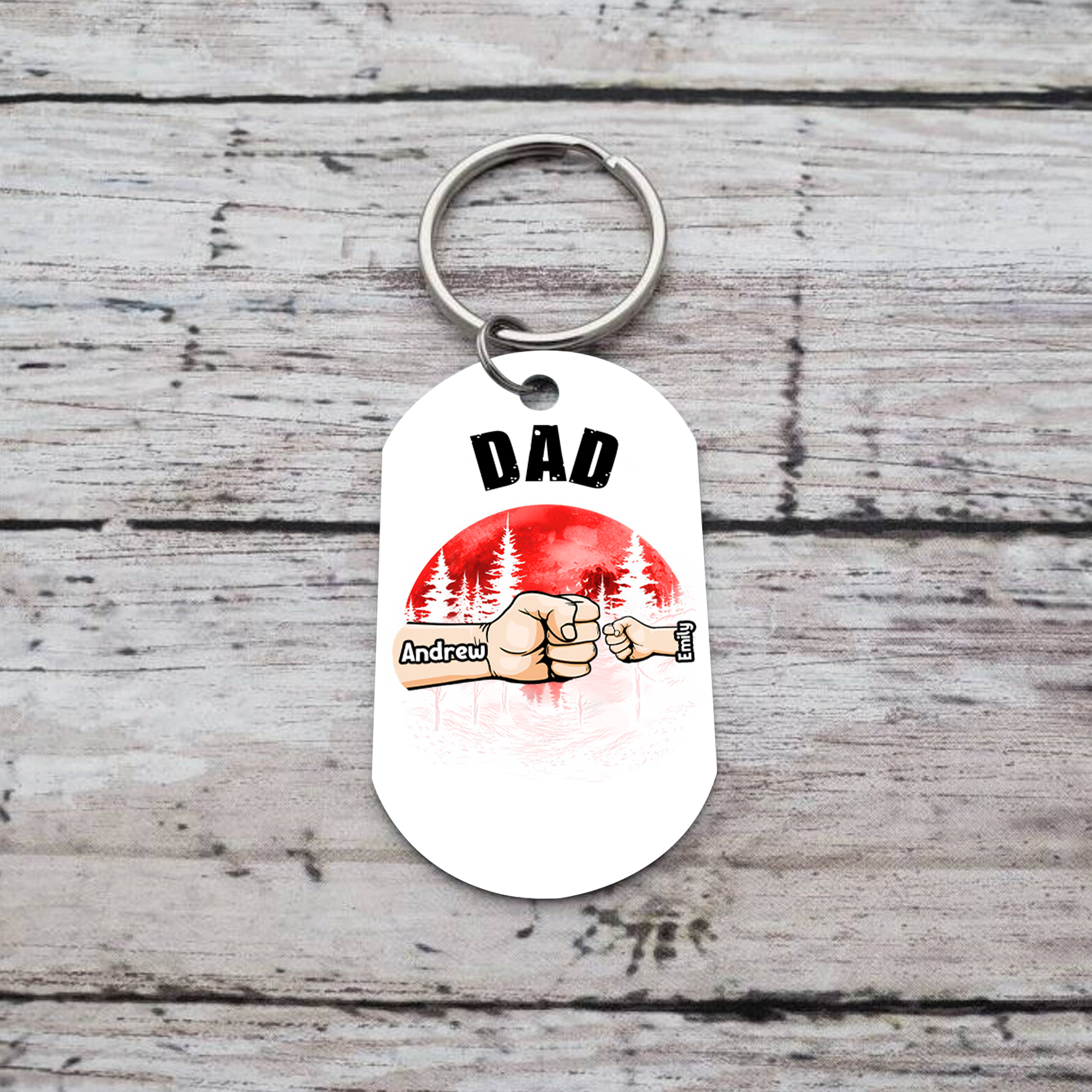2 Names - Personalized Custom Fist Bump Keychain Mangrove Style Keychain Gift for Dad