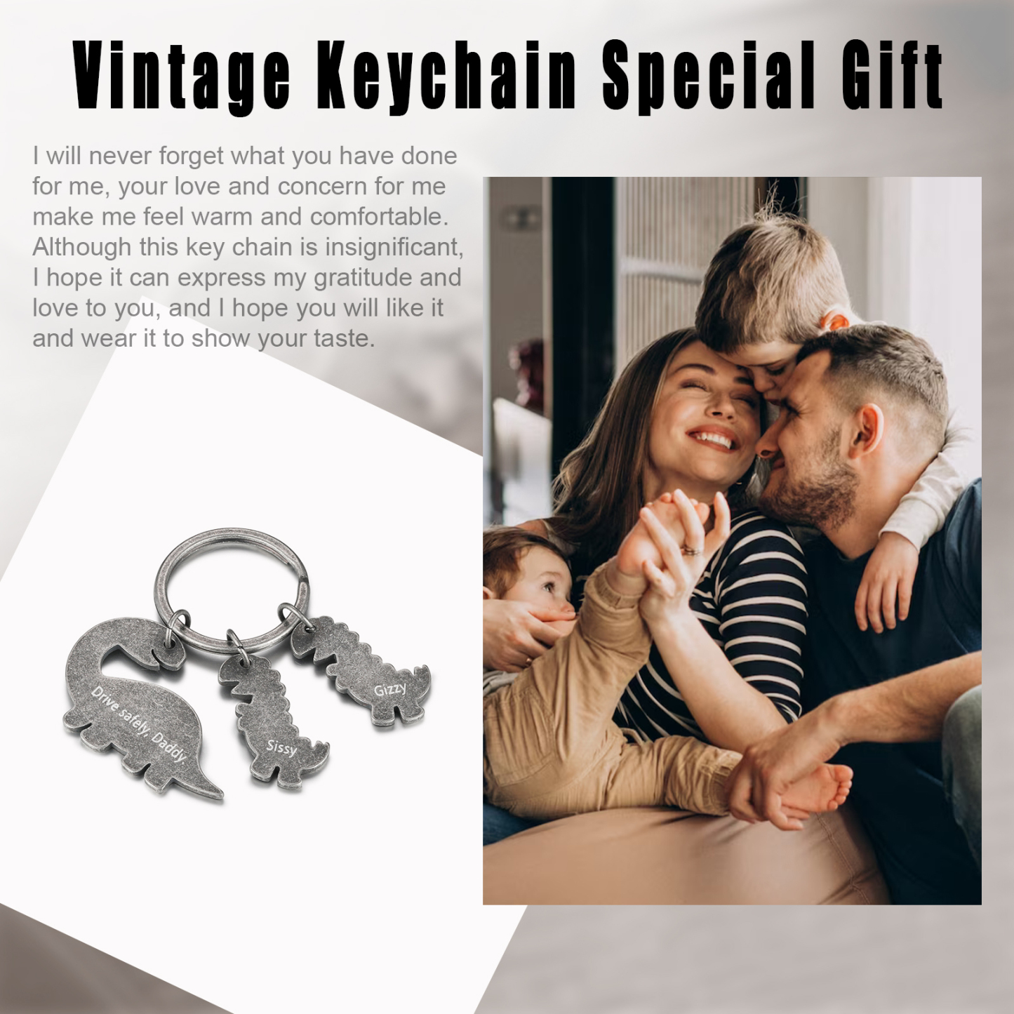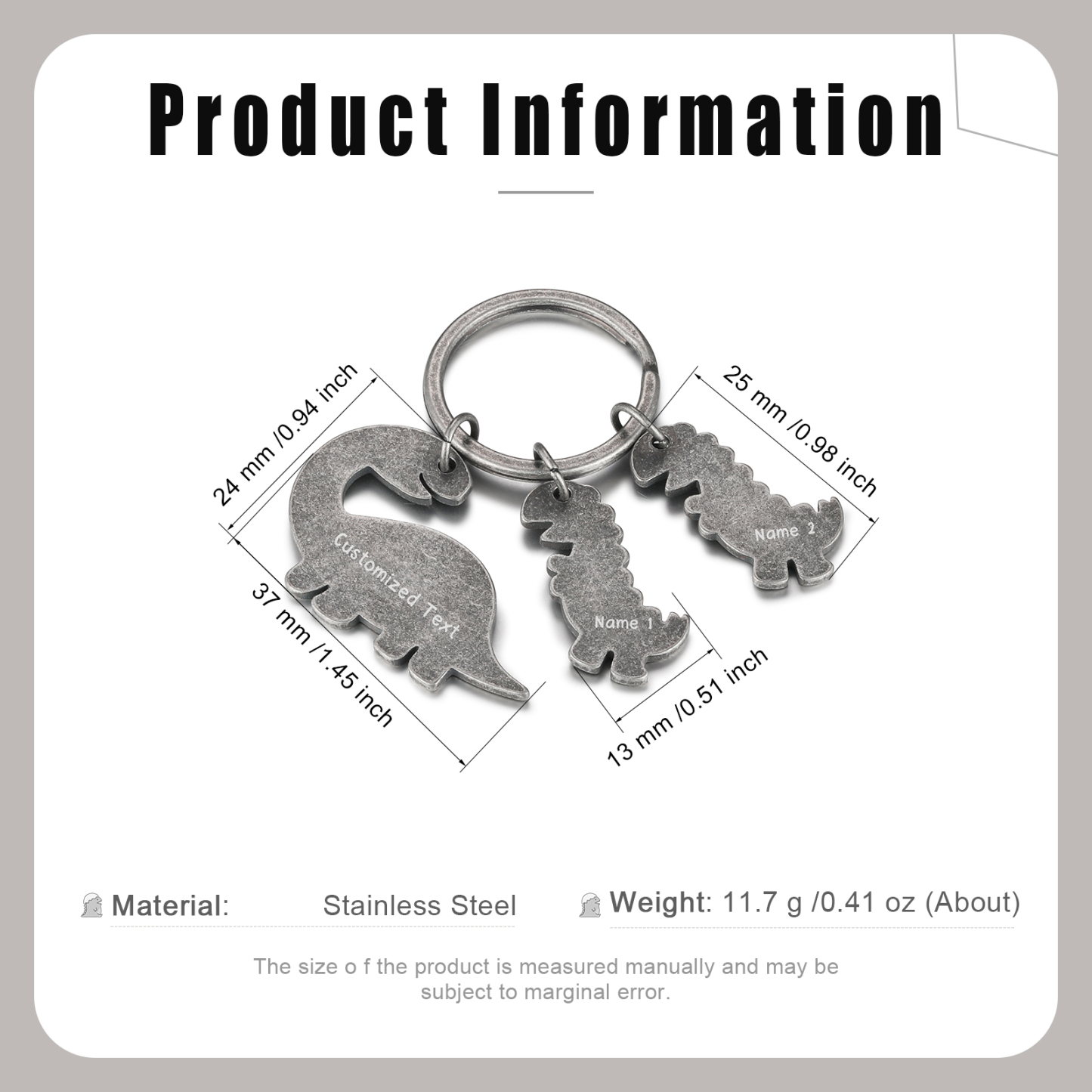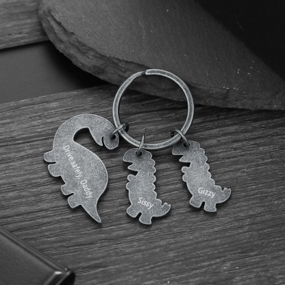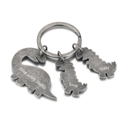 2 Names-Personalized Dinosaur Kids Charms Keychain Gift Set-Custom Names And Text Special Keychain Gift For Grandpa/Father
