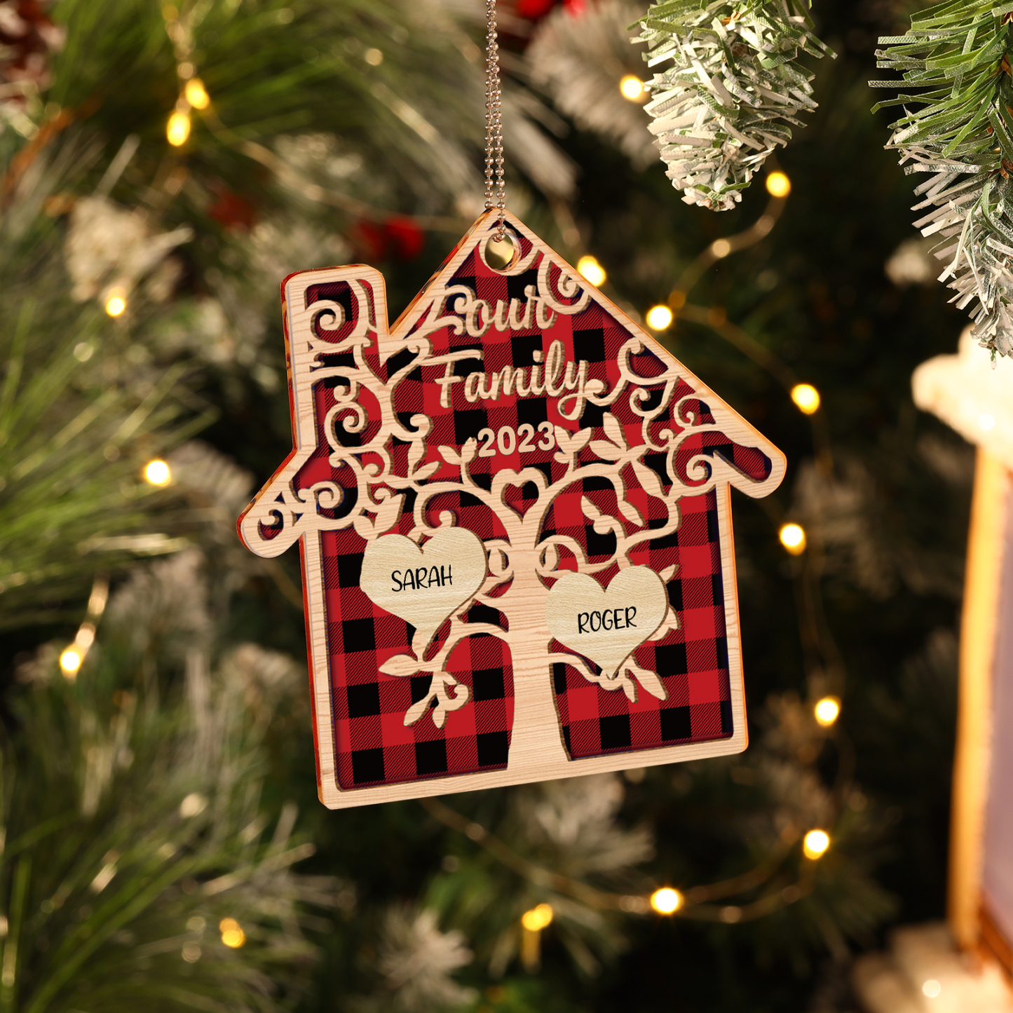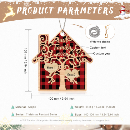 2 Names-Personalized Family Acrylic Christmas Xmas Tree Decoration Ornament-Custom 2 Names And Text Hanging Ornament Gifts For Family