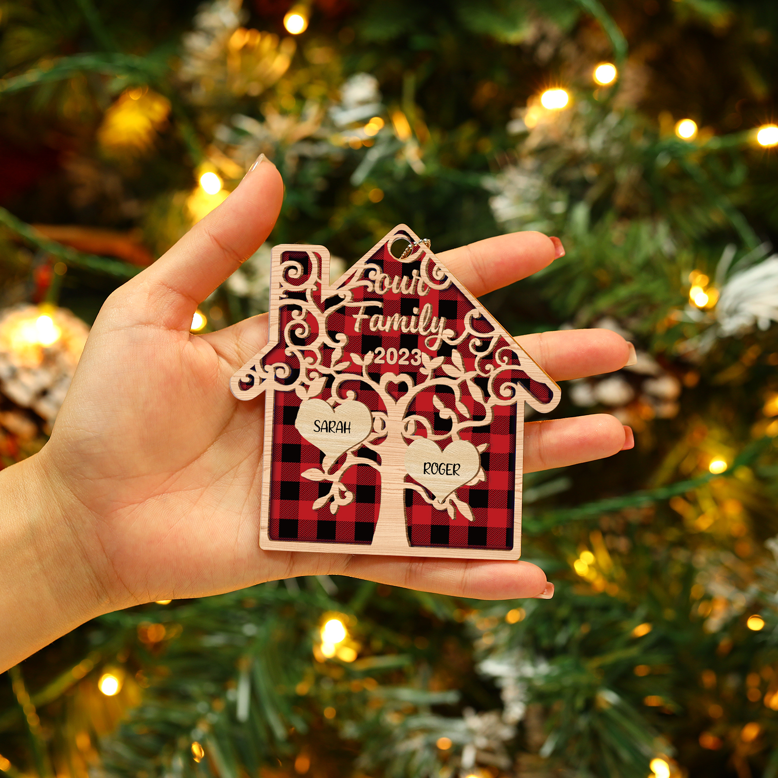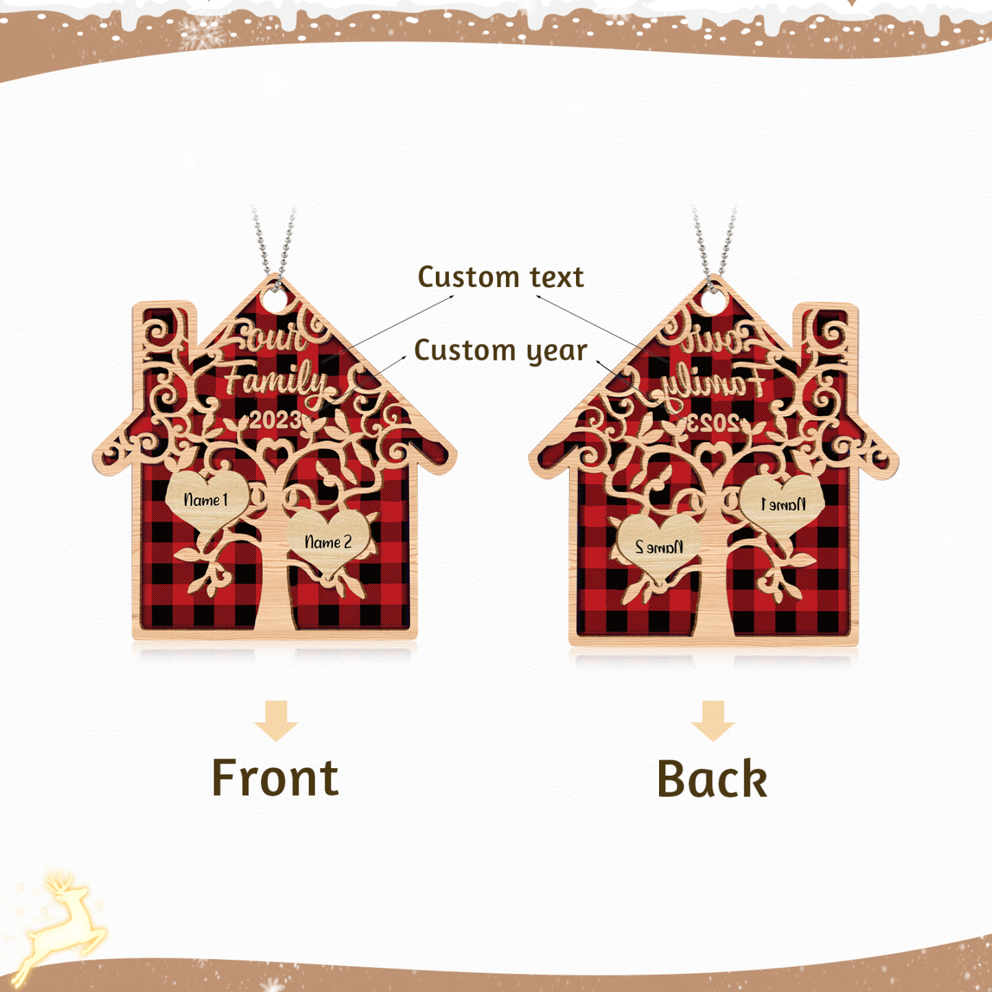 🎁Made of acrylic material, 2-8 names can be customized. The names of each family member are written on the tree, and the personalized text and year can be written on it. This is a great Christmas gift for the family.