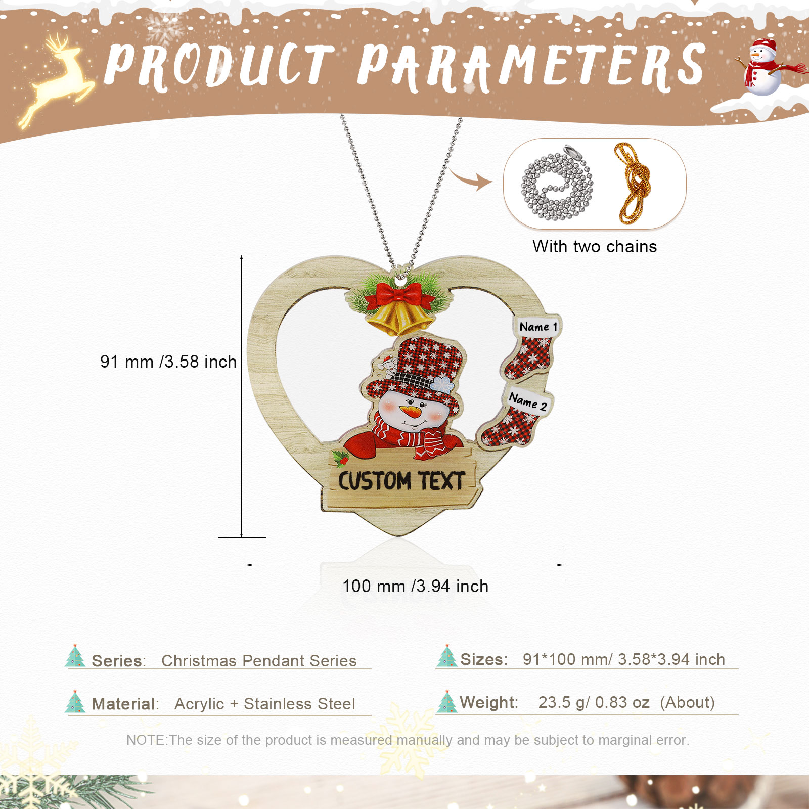 🎁Made of acrylic material, 2-8 names can be customized, The names of each family member are written on the Christmas Shocks, and the personalized text can be written under the snow man. This is a great Christmas gift for the family.