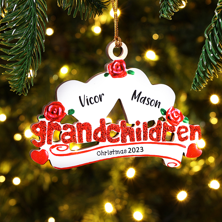 2 Names-Personalized Family Wooden Christmas Ornament-Custom 2 Names Hanging Ornament Gifts For Family-Grandchildren