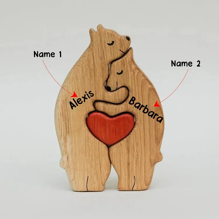 2 Names-Personalized family Wooden Puzzle Ornament-Custom 2 Names Bear Hug Ornament Gifts For Family-Special Home Decoration