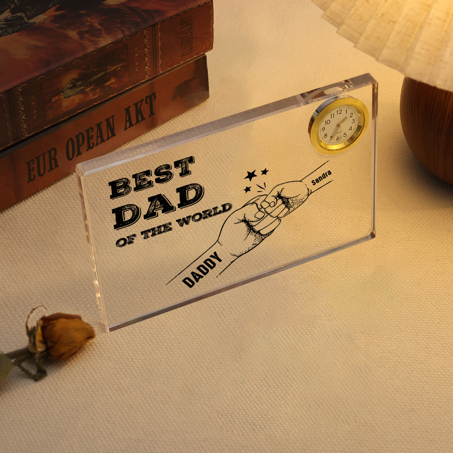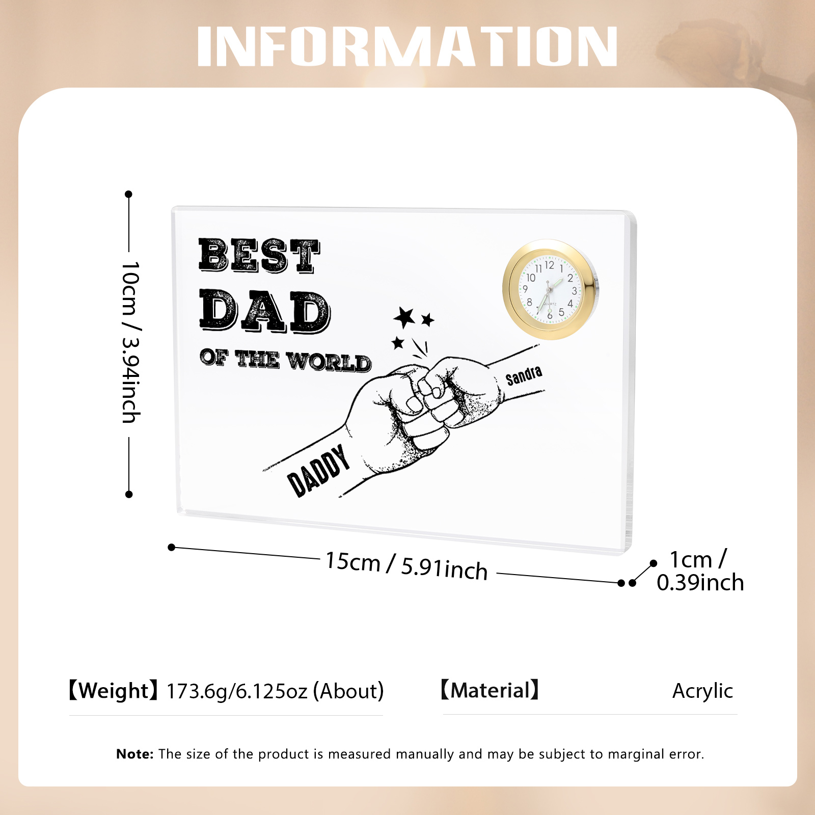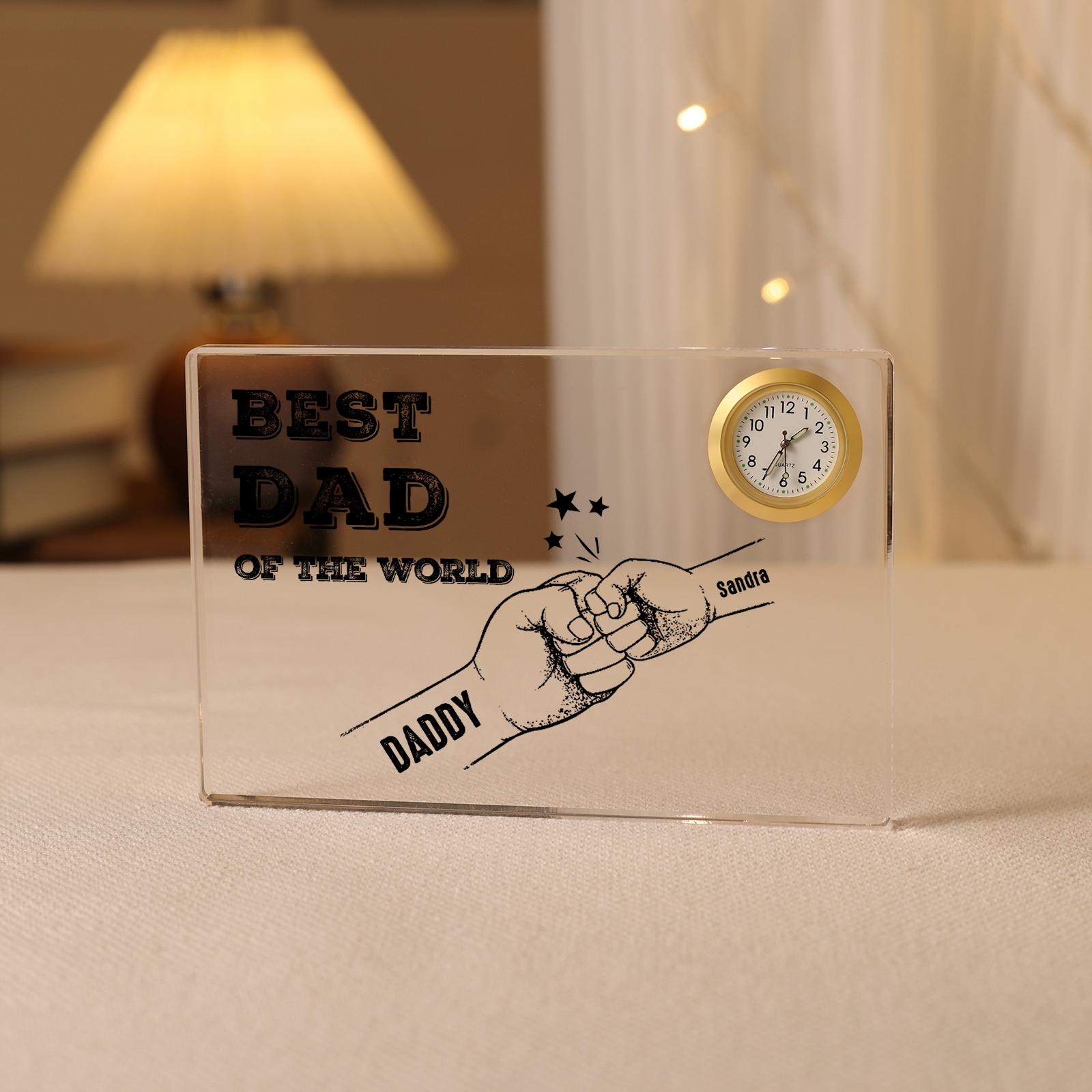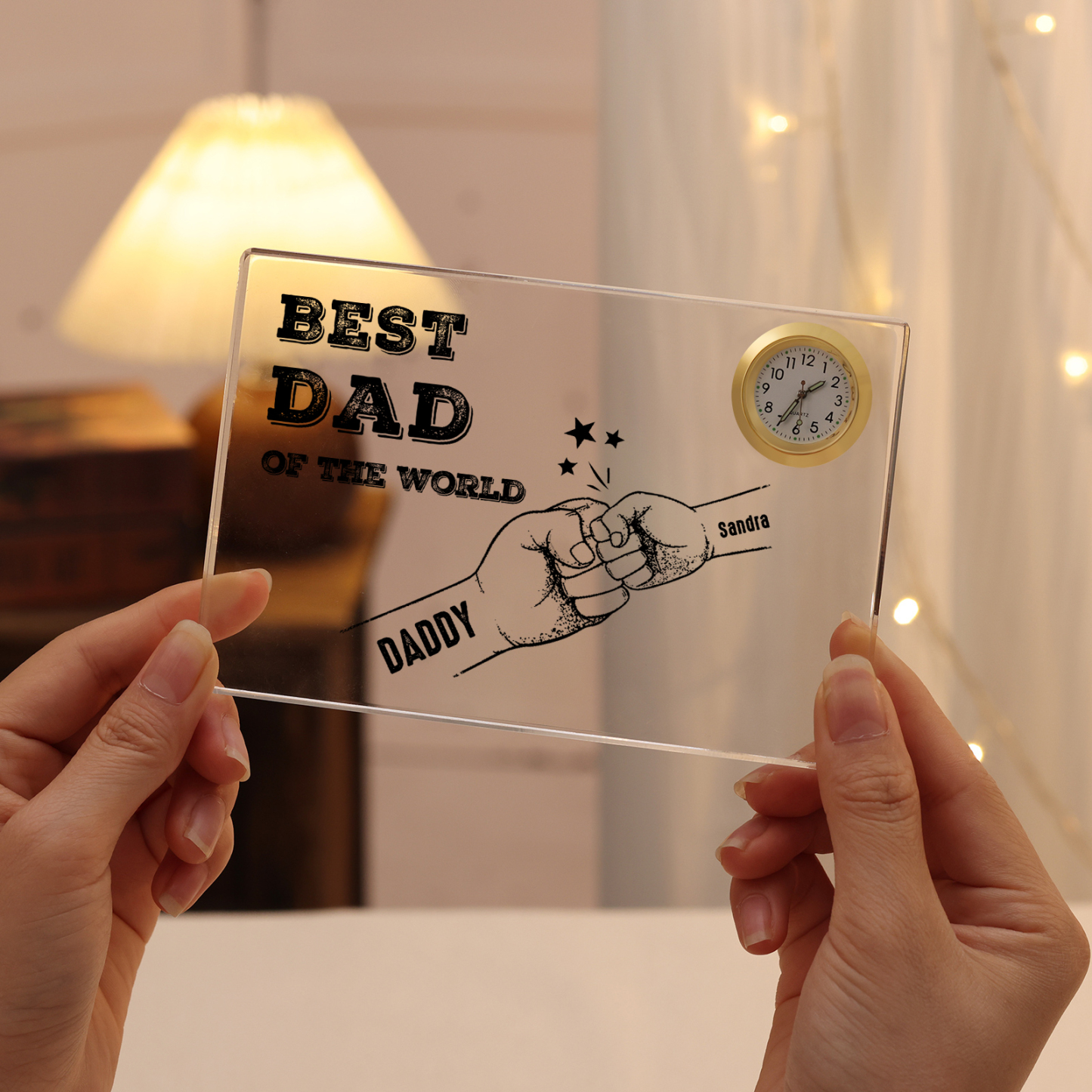 2 Names - Personalized Fist Bump Acrylic Rectangular Clock Ornament Father's Day Gift for Dad