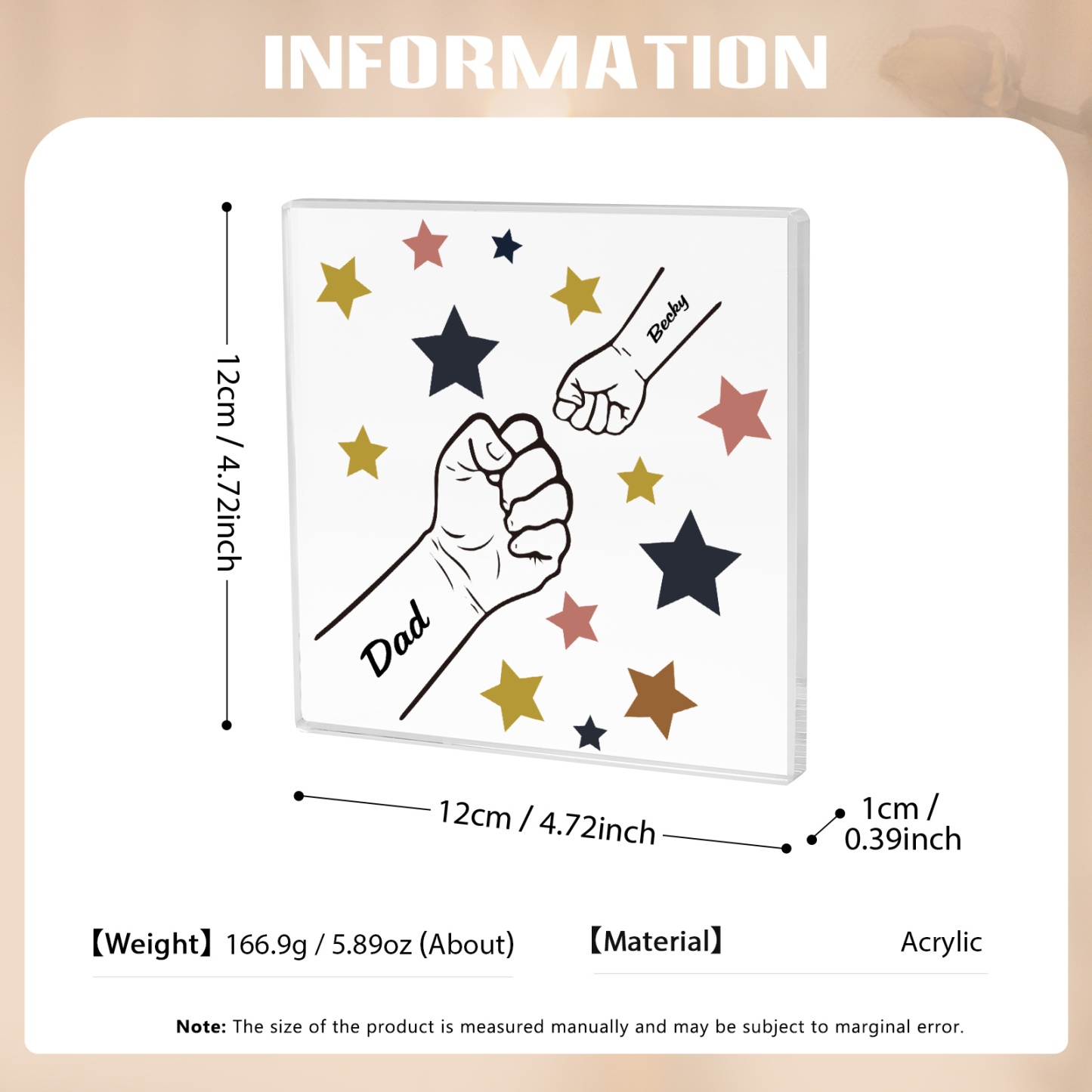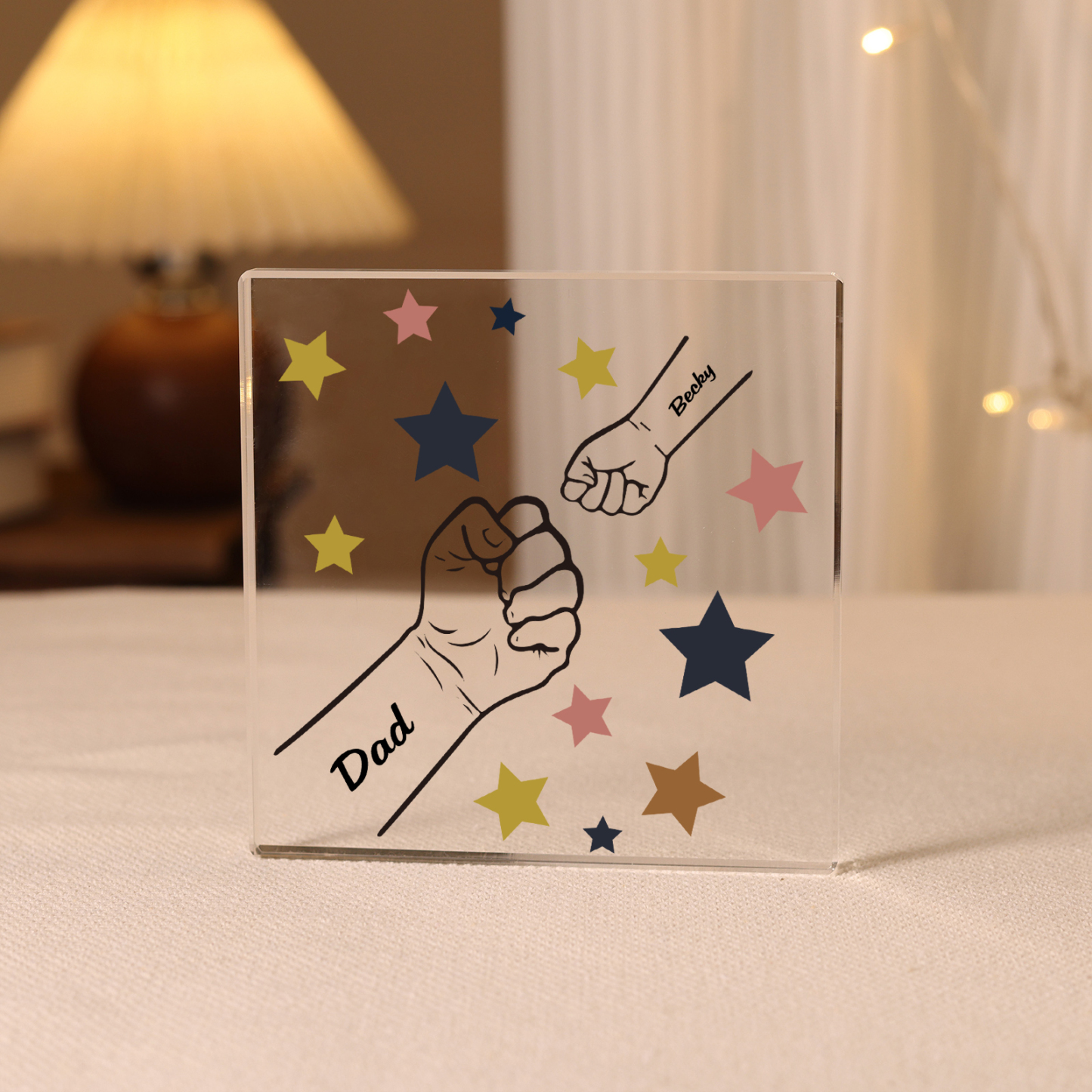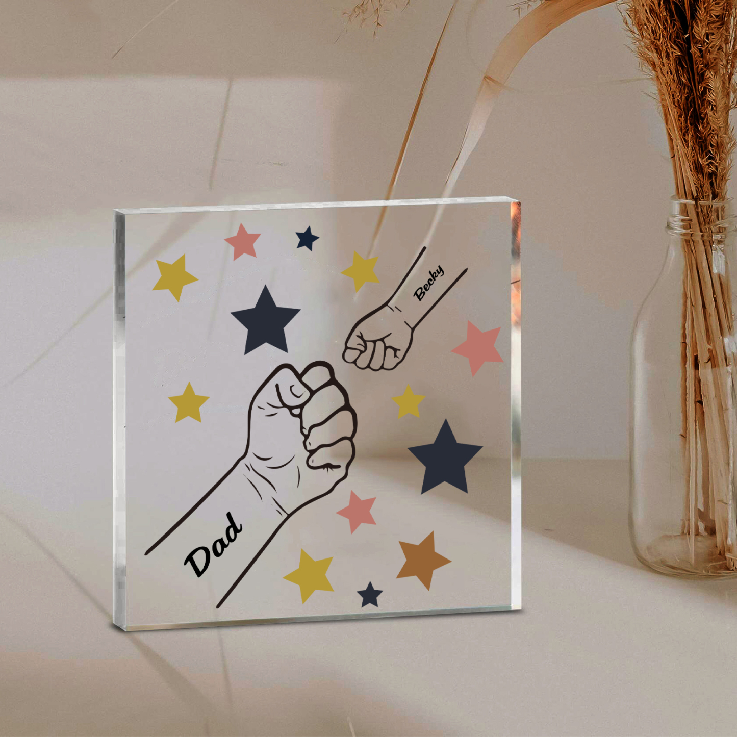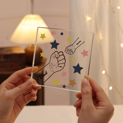 2 Names - Personalized Fist Bump Family Acrylic Keepsake Customized Name Acrylic Home Decor Gift for Dad