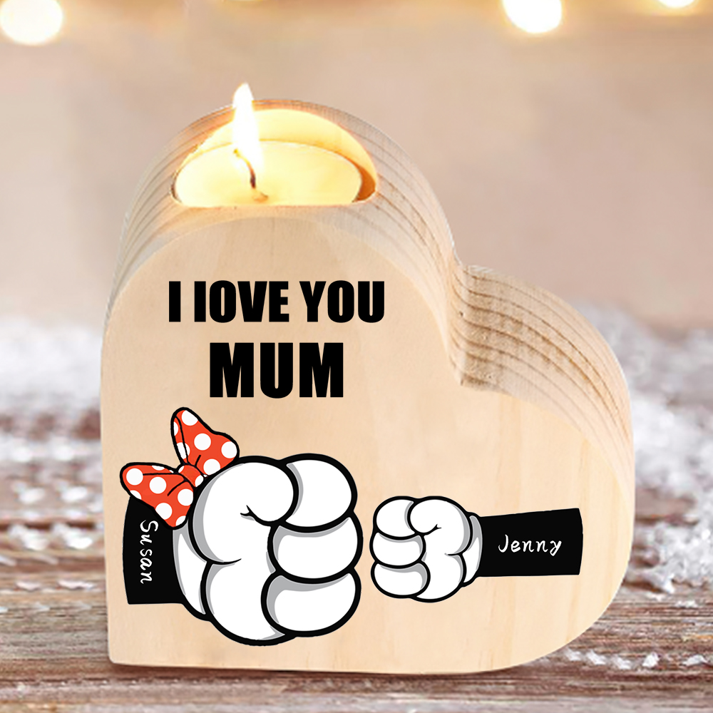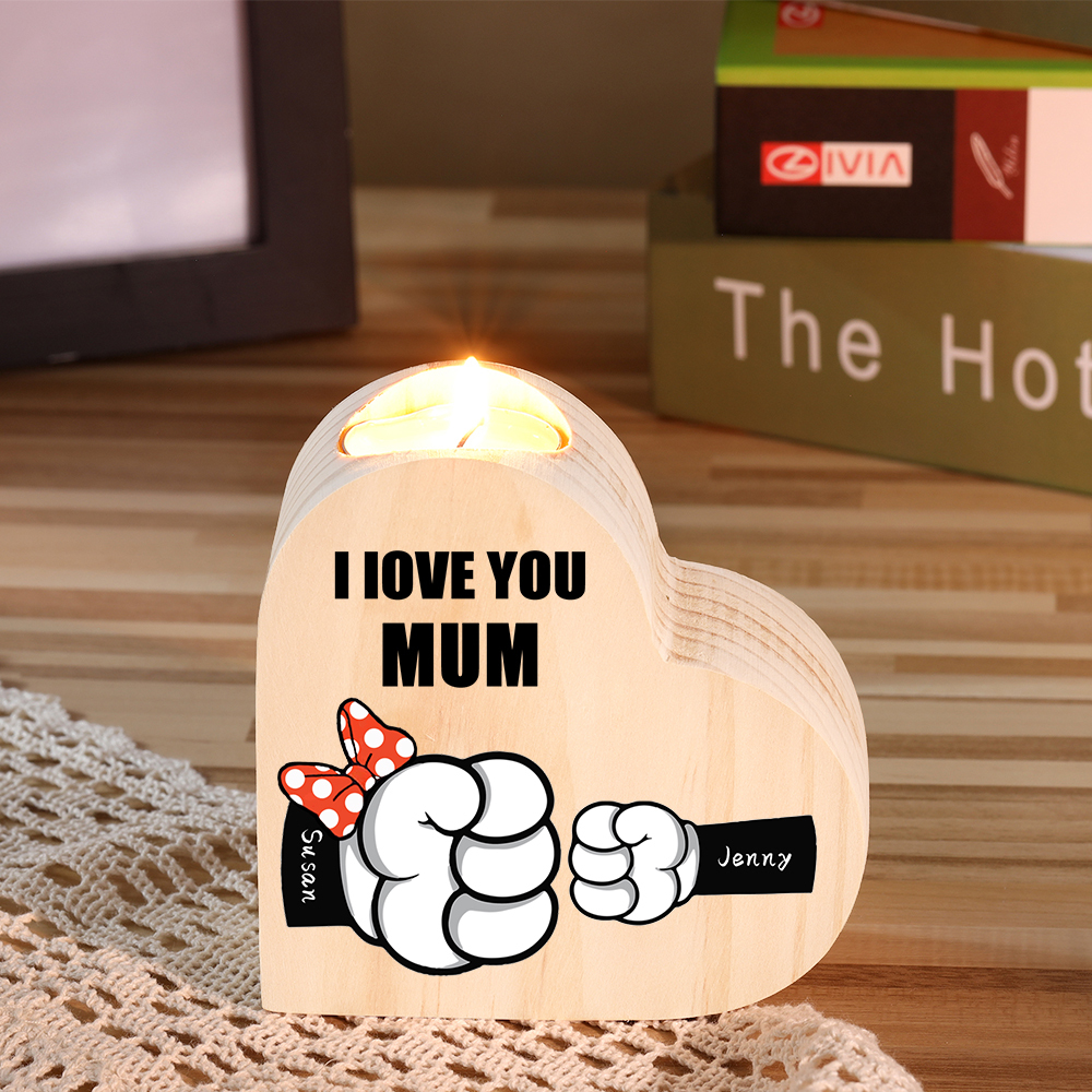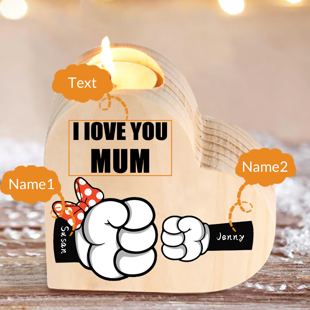 2 Names-Personalized Fist Bump Heart-Shape Candlestick Custom Text Mother's Day Gift Wooden Custom Candle Holder For Family