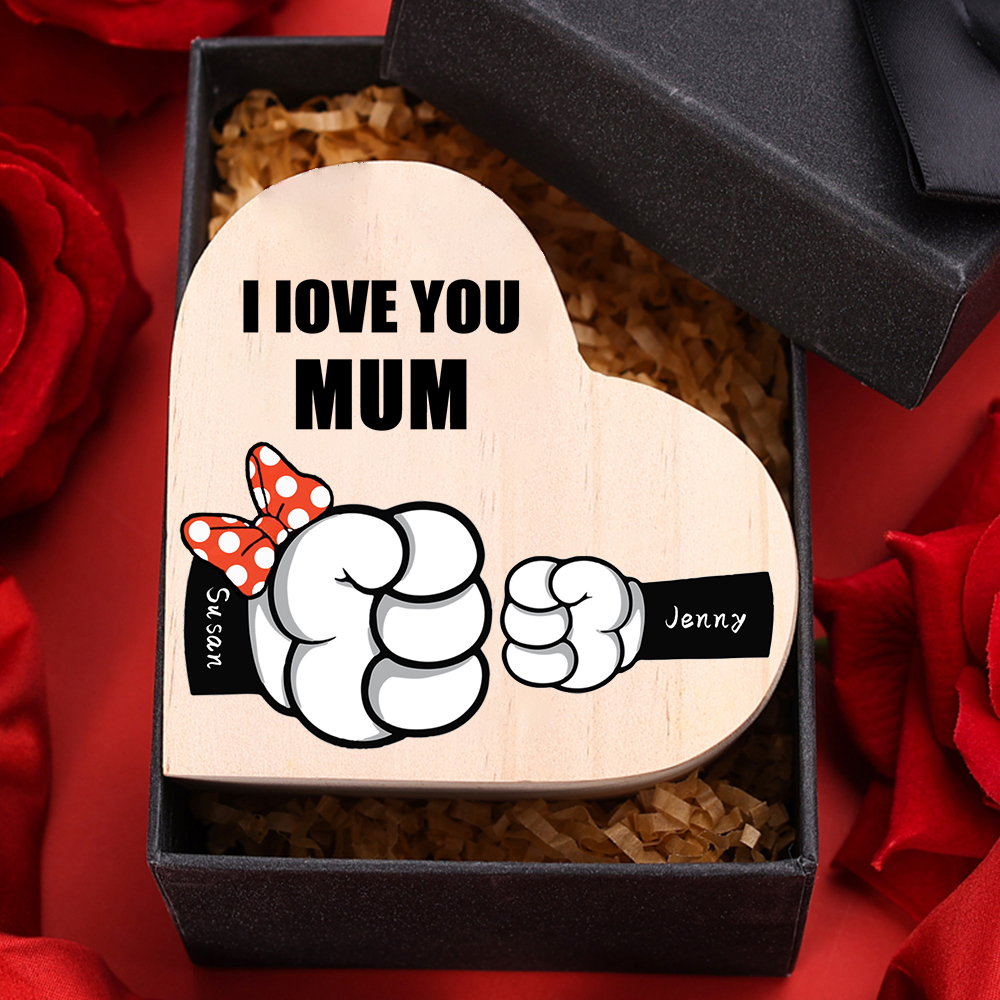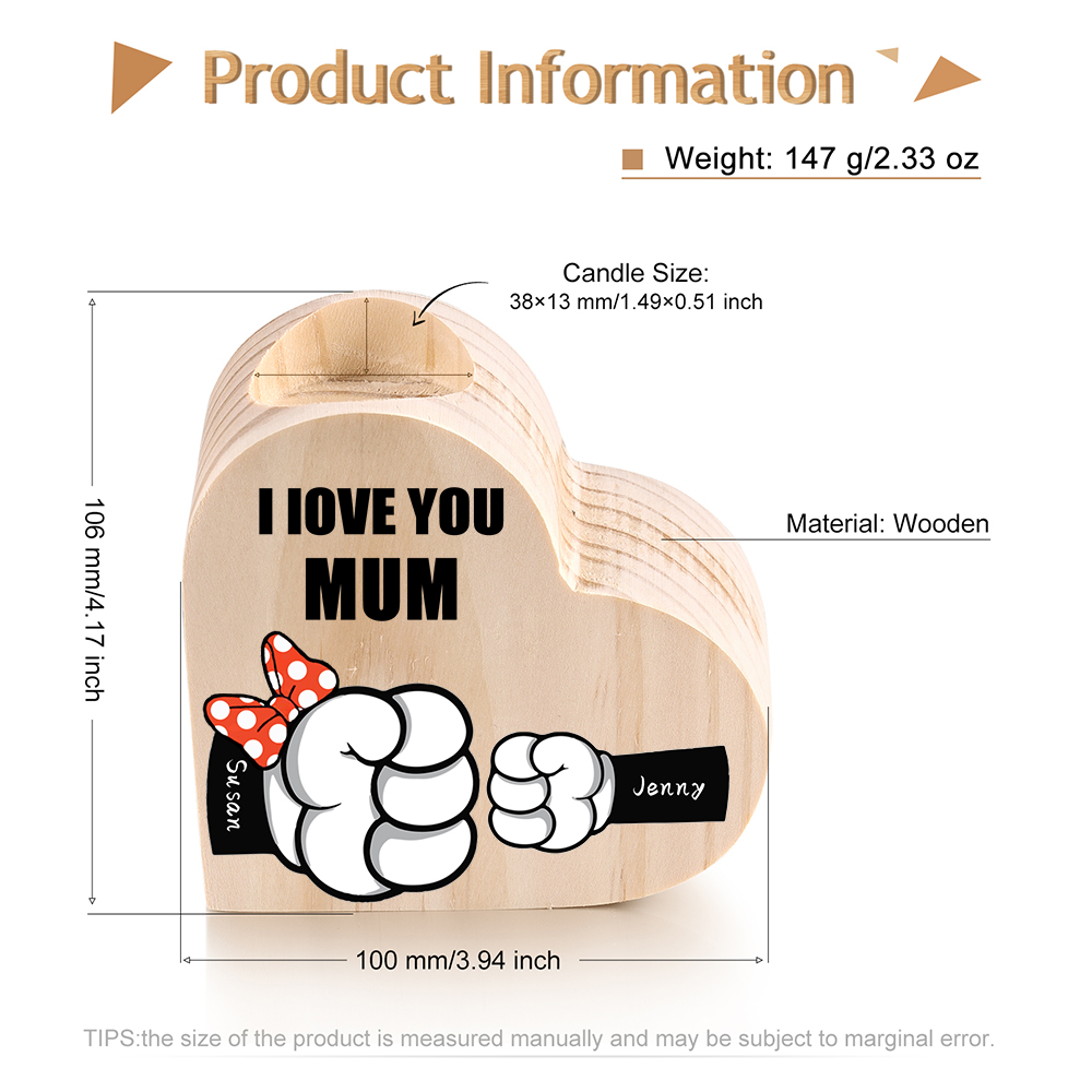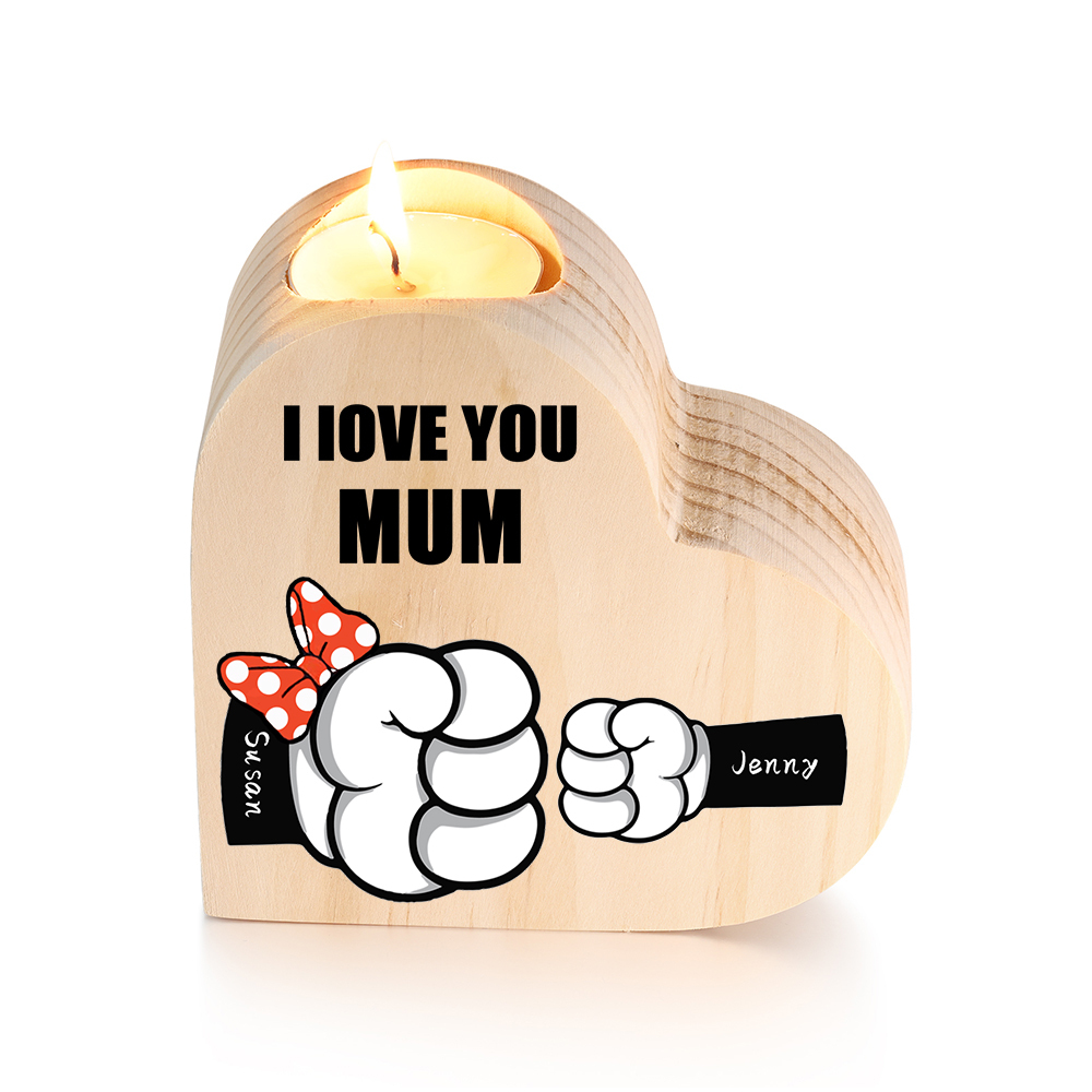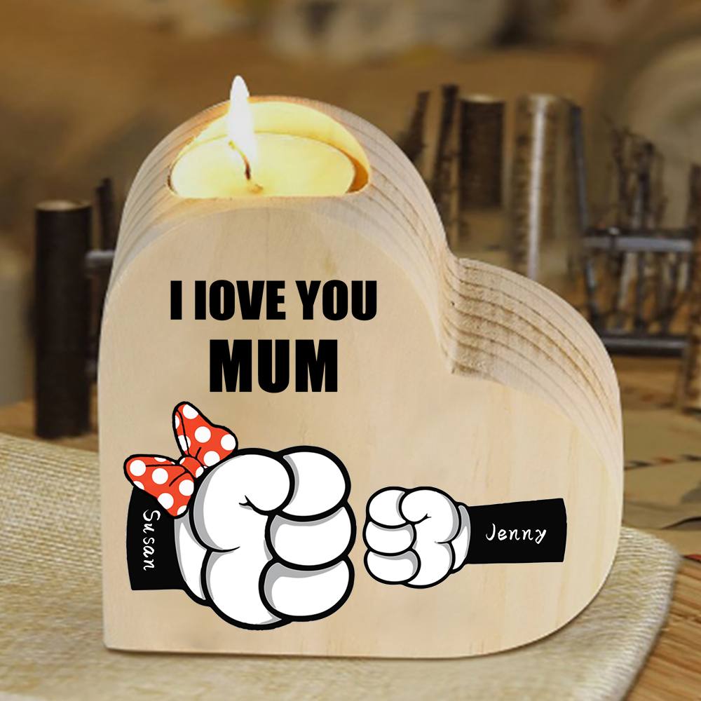 2 Names-Personalized Fist Bump Heart-Shape Candlestick Custom Text Mother's Day Gift Wooden Custom Candle Holder For Family