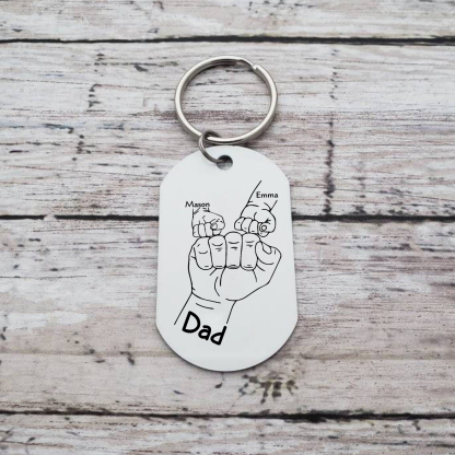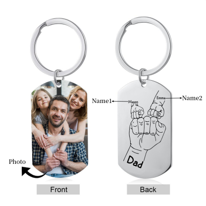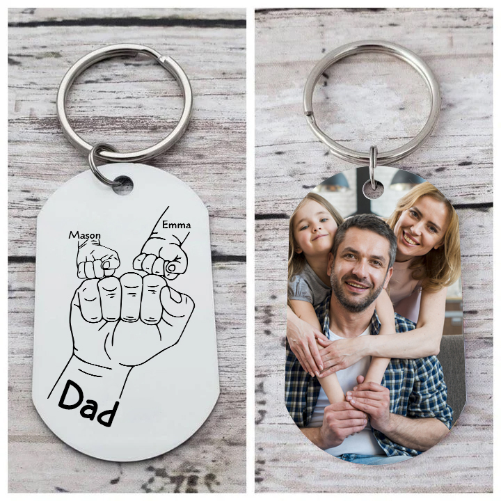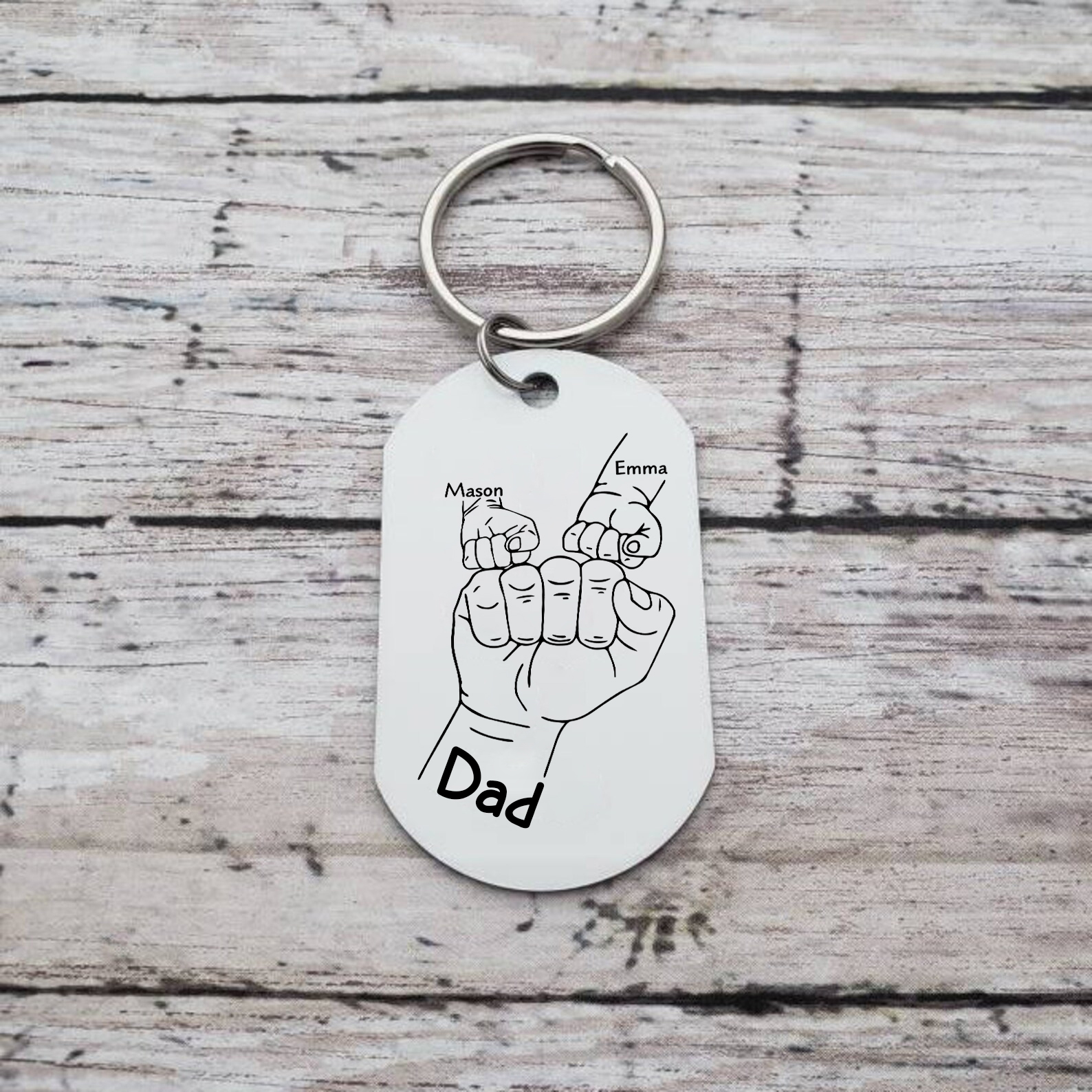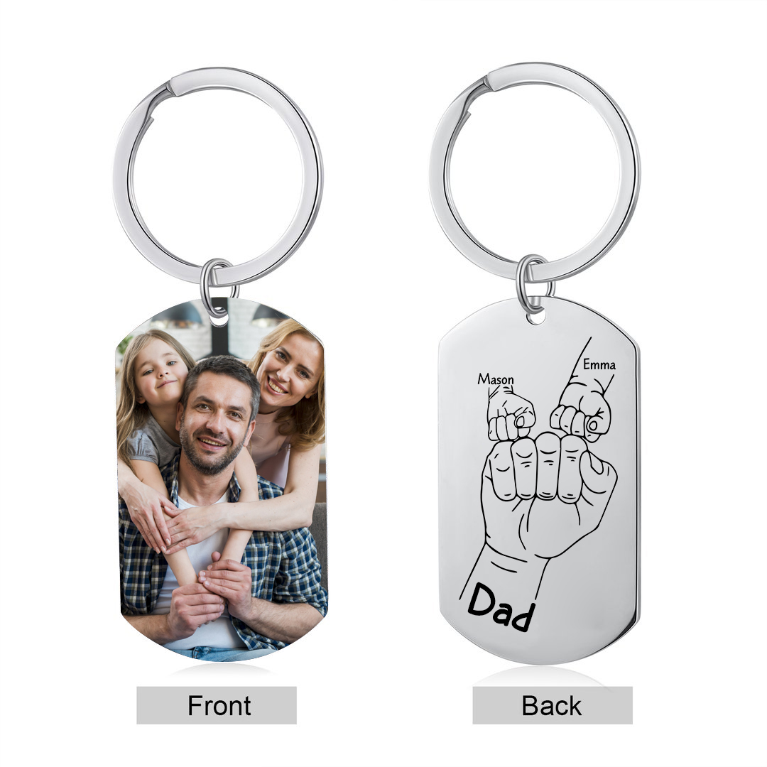 2 Names - Personalized Fist Bump Keychain Custom Photo Father's Day Gift for Dad