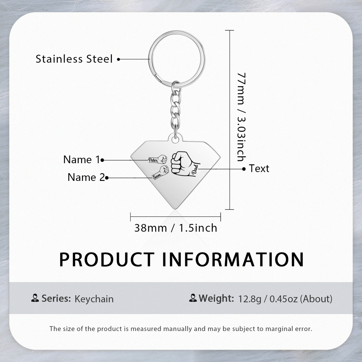 2 Names - Personalized Fist Bump Keychain Engraved Kids Names and text Keychain Gifts for Dad/Grandad