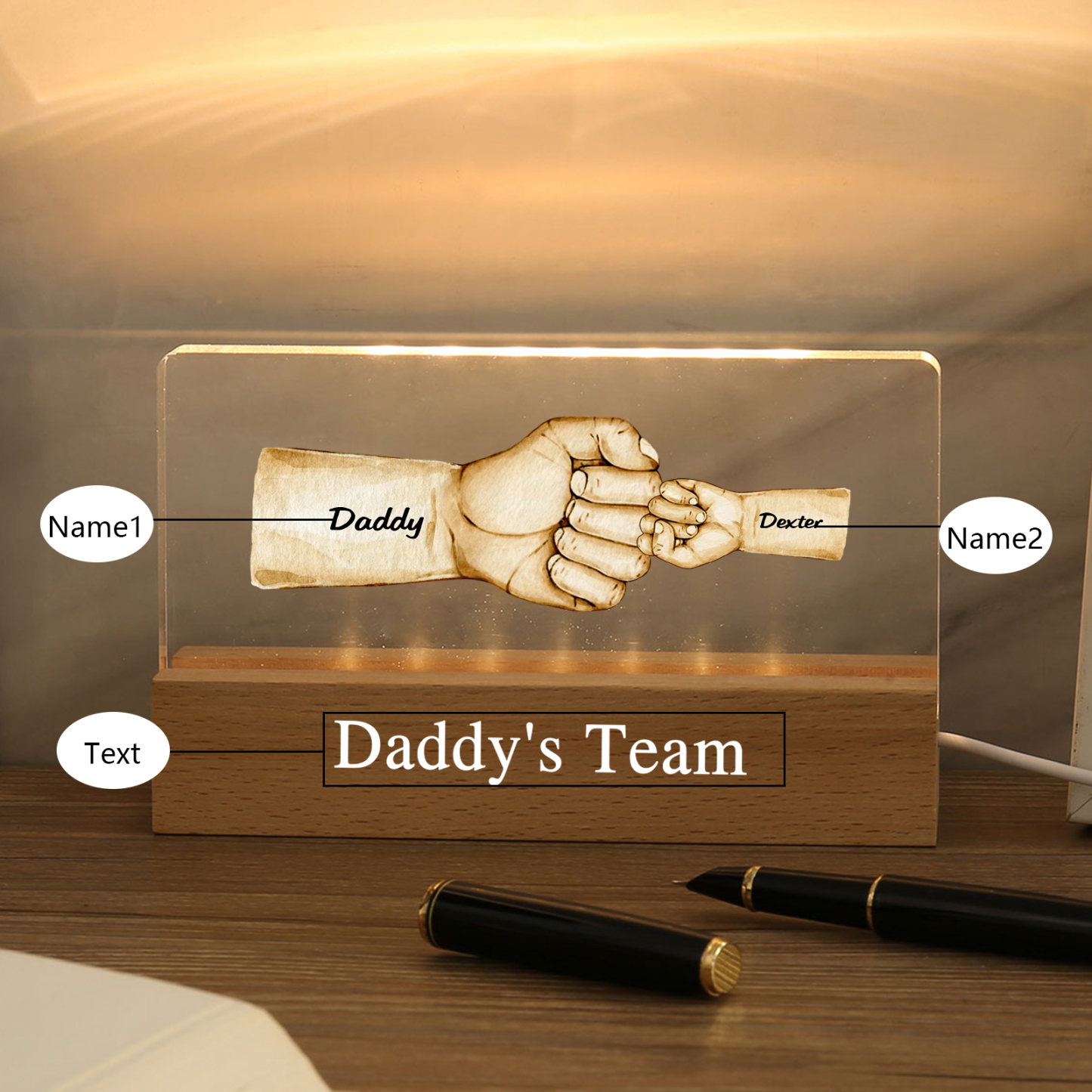 💡Customize a fist bump desk lamp with Dad's name! 🌟 Light up Dad's world with a unique gift. ❤️This stylish fist bump desk lamp with Dad's name and custom text will add a modern touch to his space. Brighten his day with personalized warmth and style. Order now to brighten his day! 🥰
