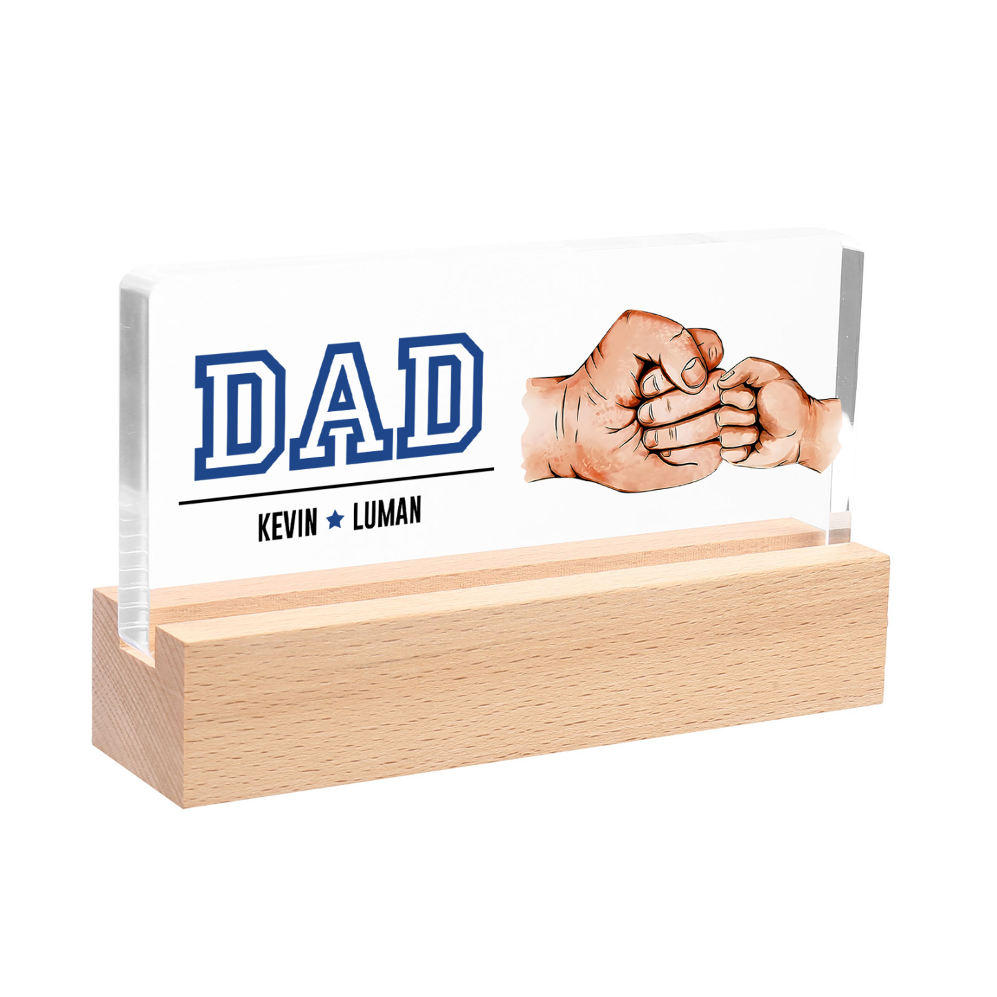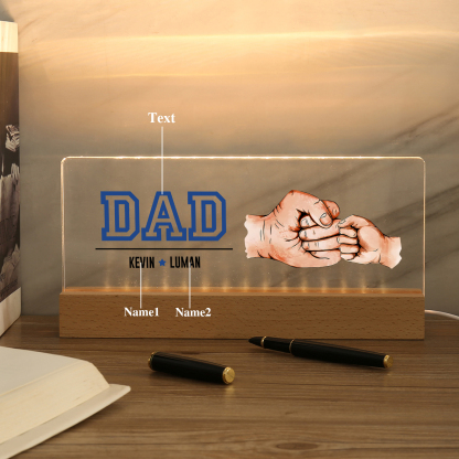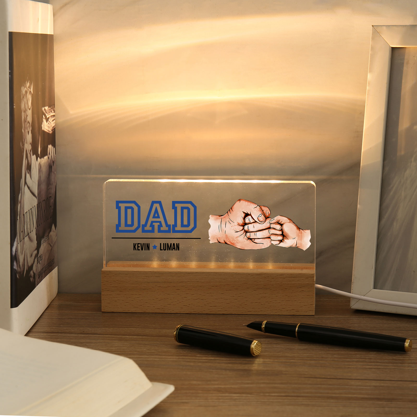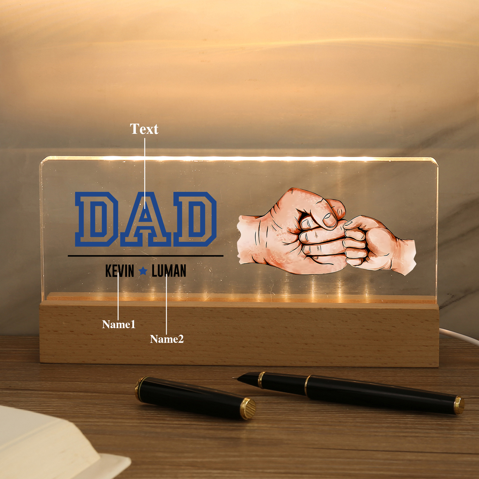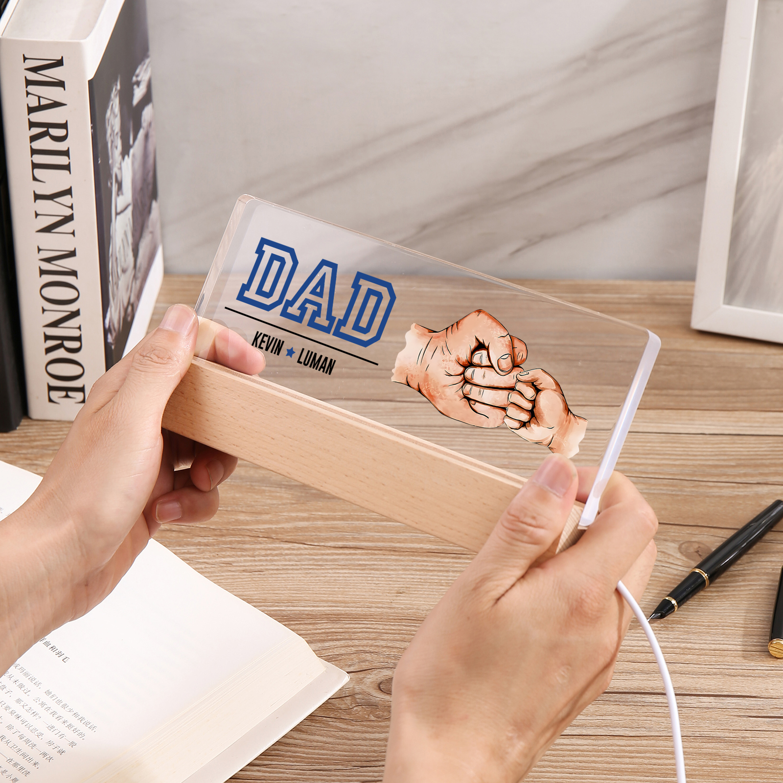 2 Names - Personalized Fist Bump Table Lamp - Dad's Dream Team - Father's Day Gift for Dad