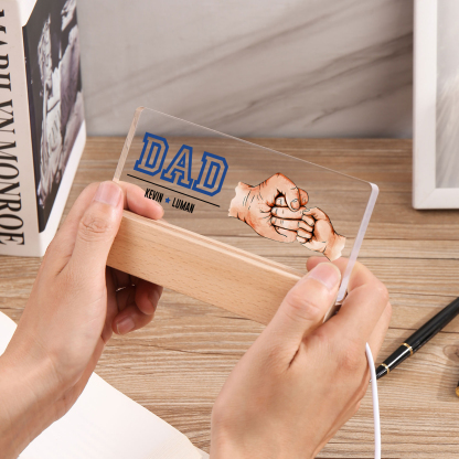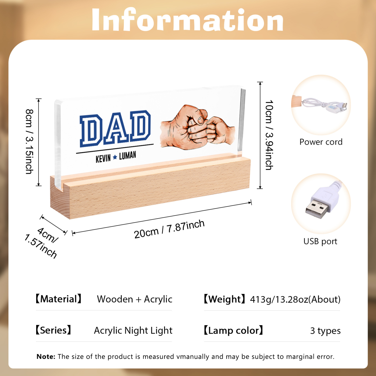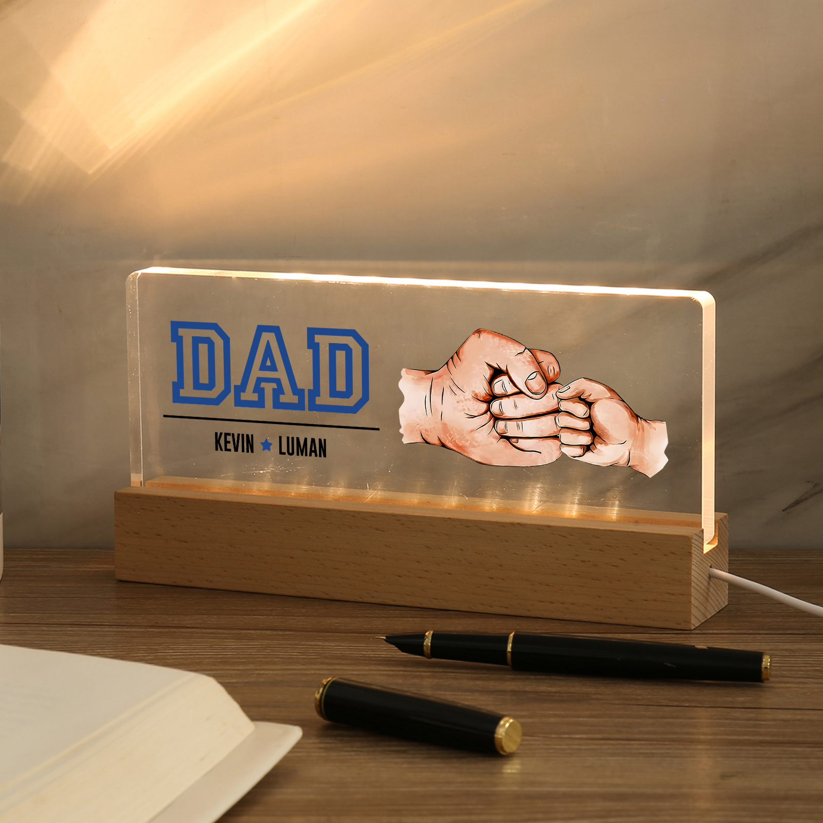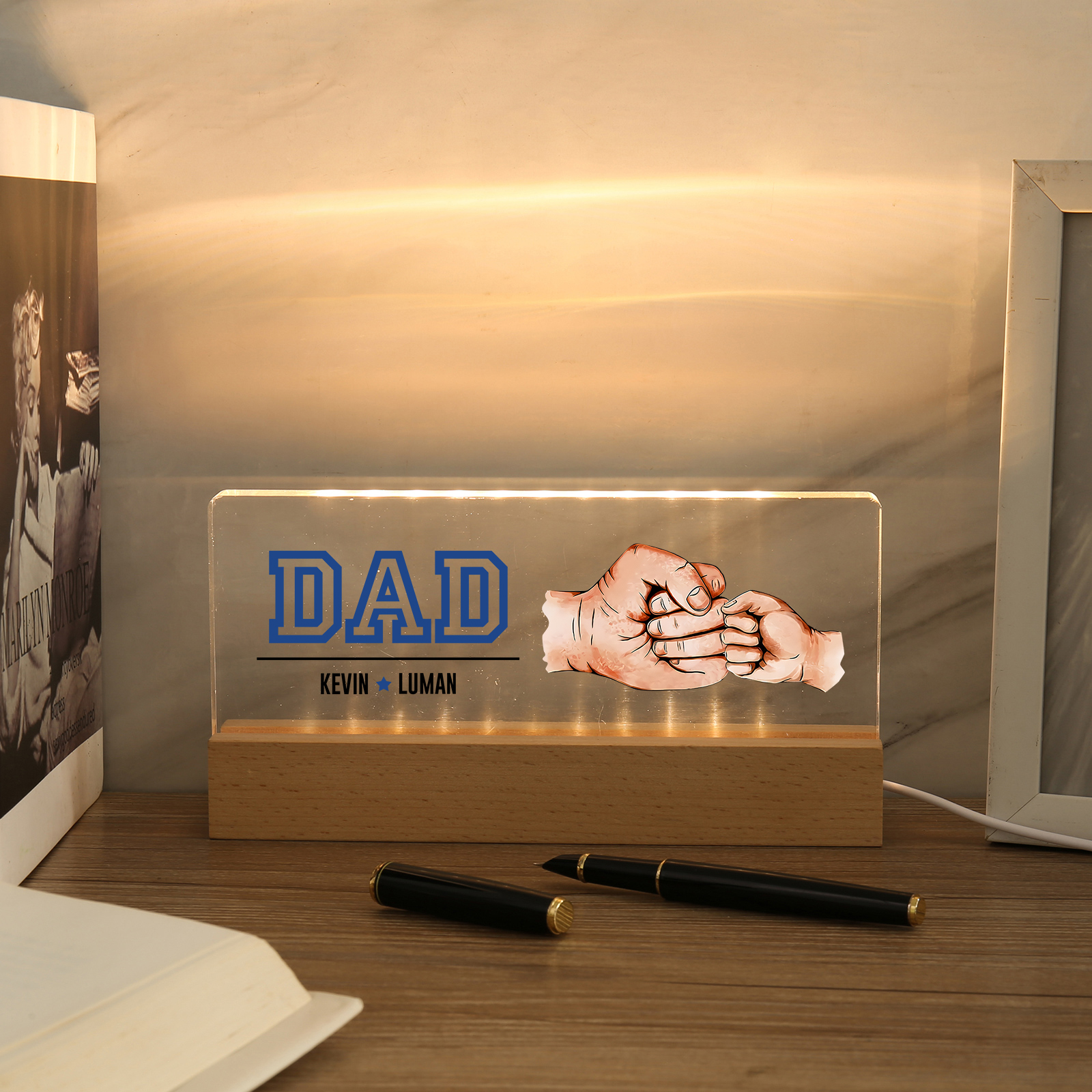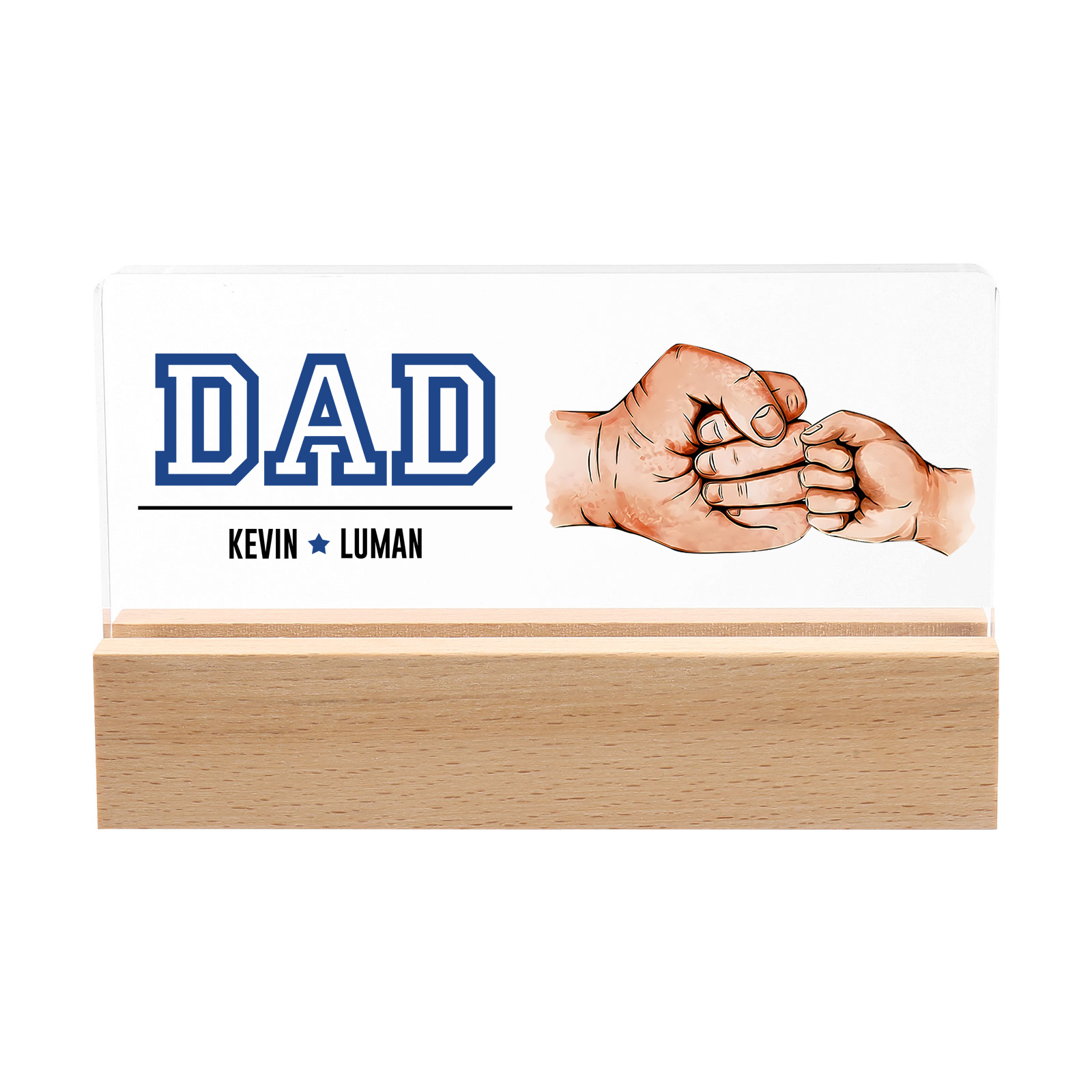 2 Names - Personalized Fist Bump Table Lamp - Dad's Dream Team - Father's Day Gift for Dad