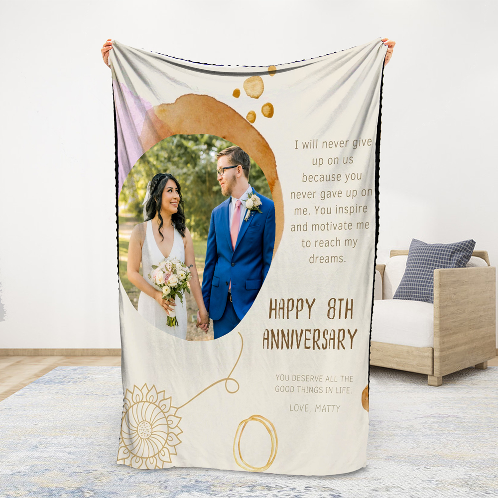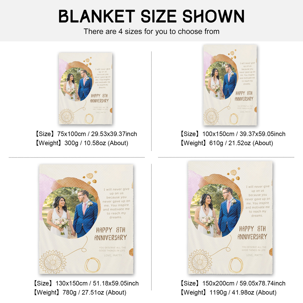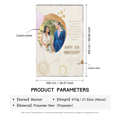 2 Names-Personalized Happy 8th Anniversary Couple Blanket Custom Photo Sweet Gift For Valentine's Day