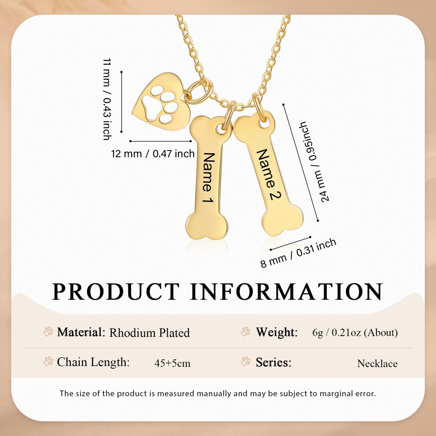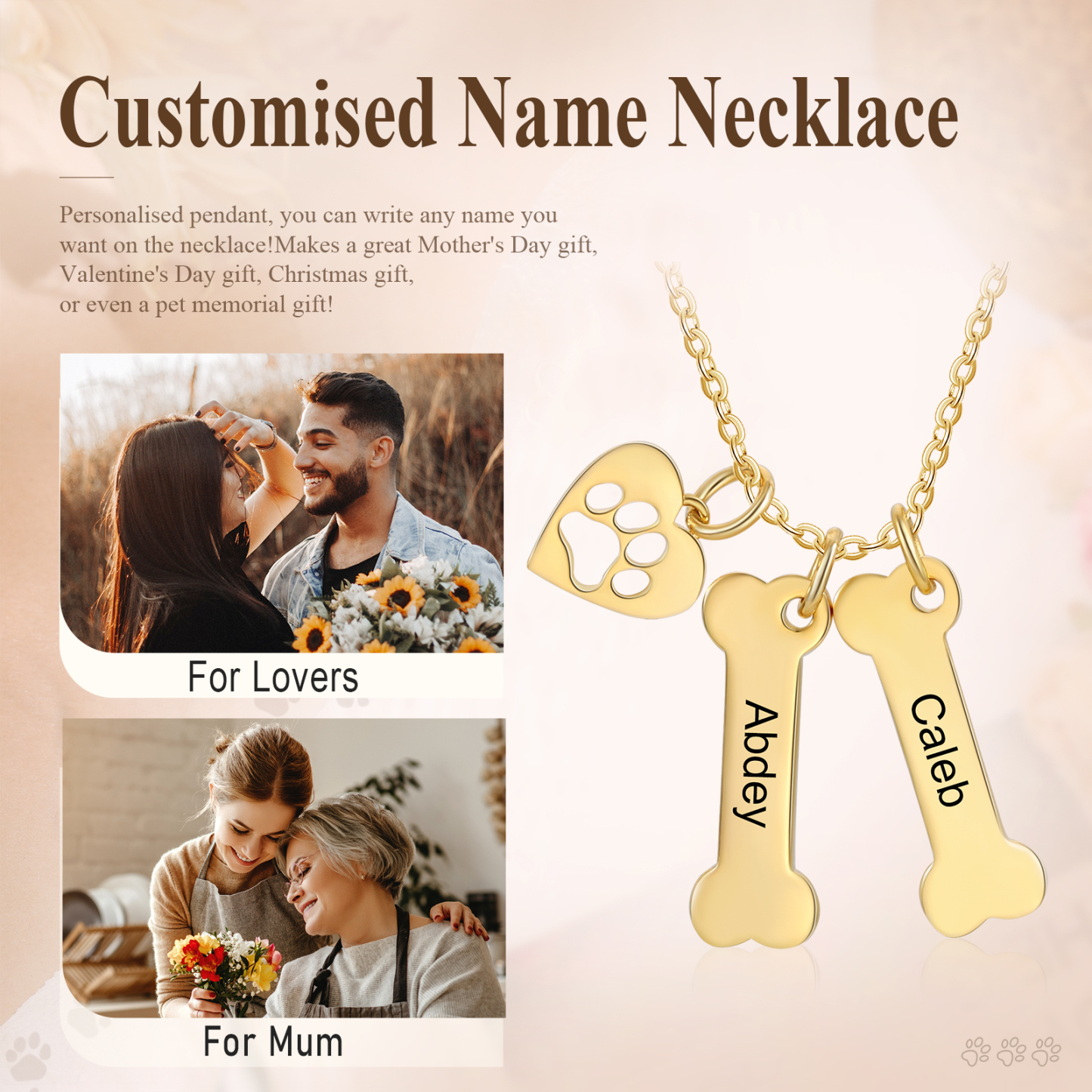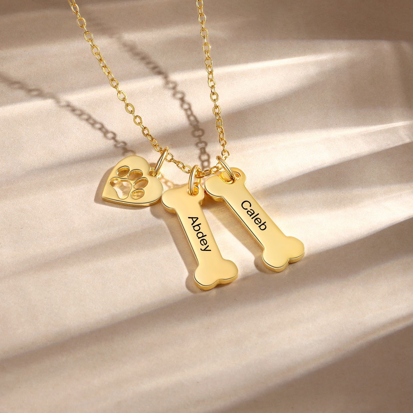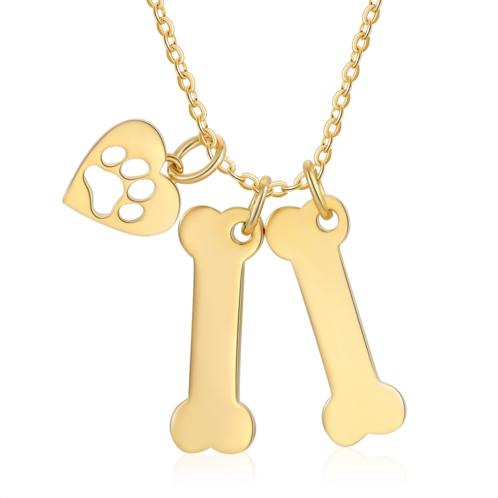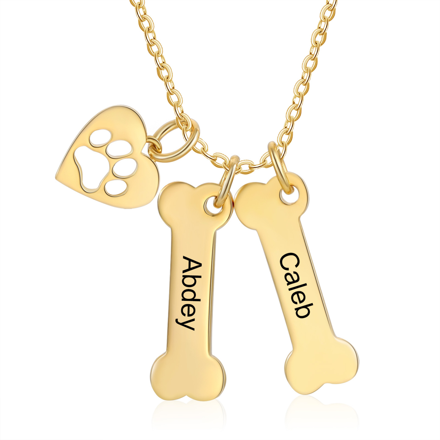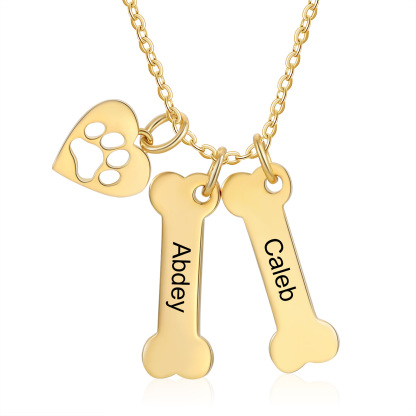 2 Names - Personalized Heart and Bones Charm Pendant Necklace, Custom Name Gift for Her