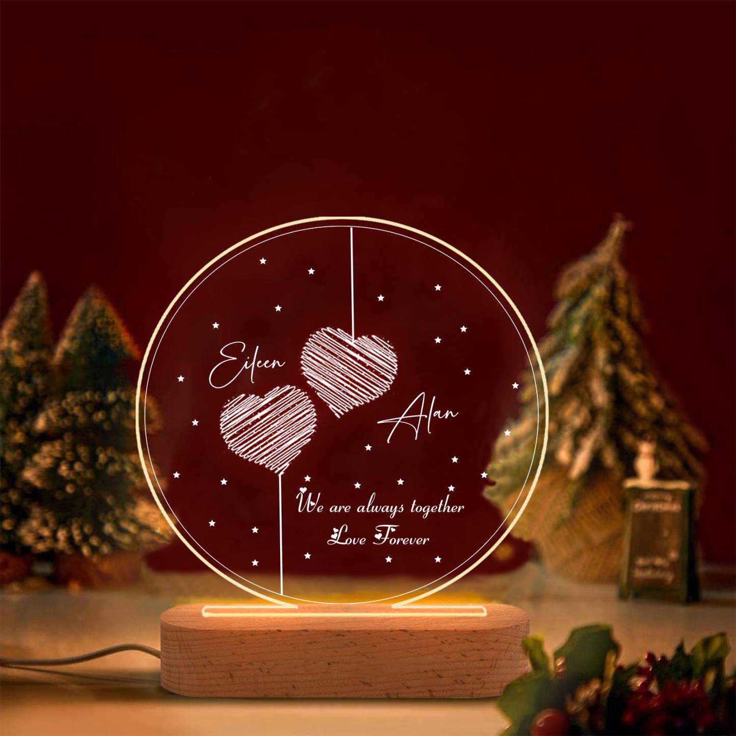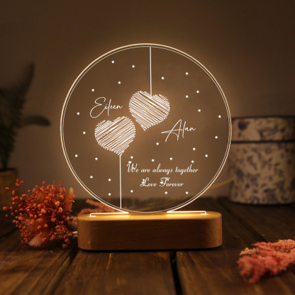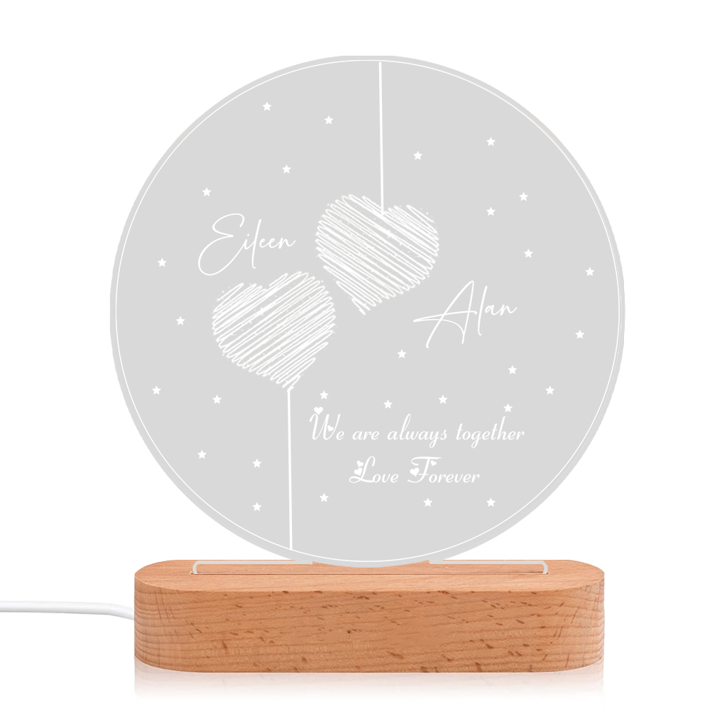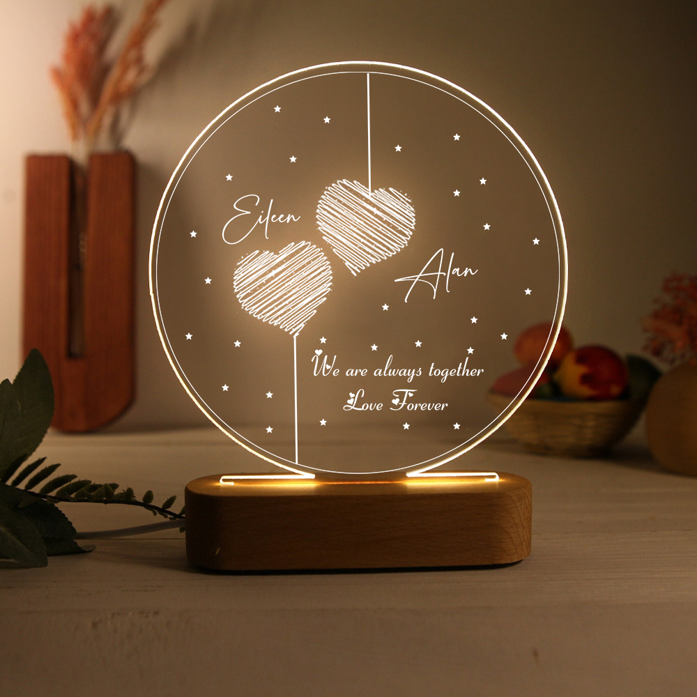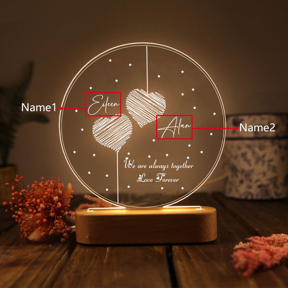 2 Names-Personalized Heart Couple Acrylic Night Light, Custom Names Lamp Christmas Gifts