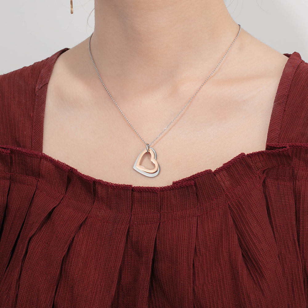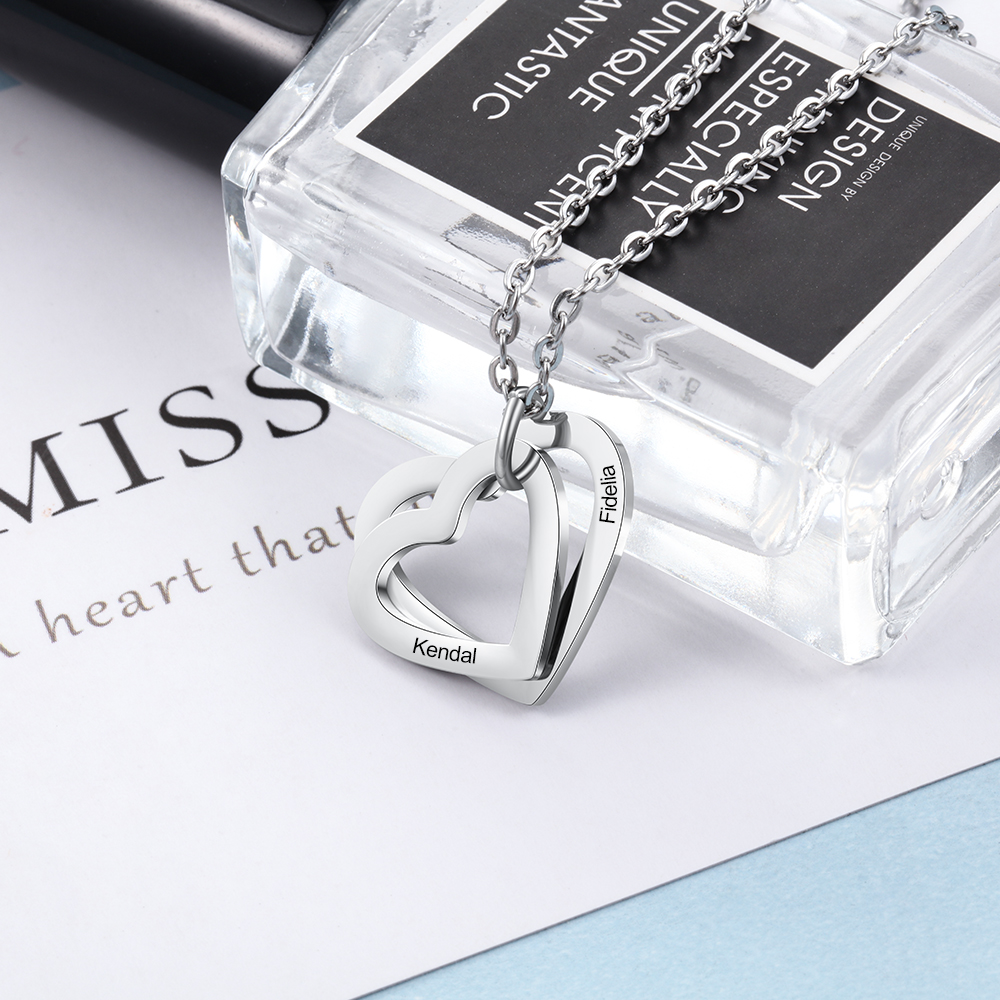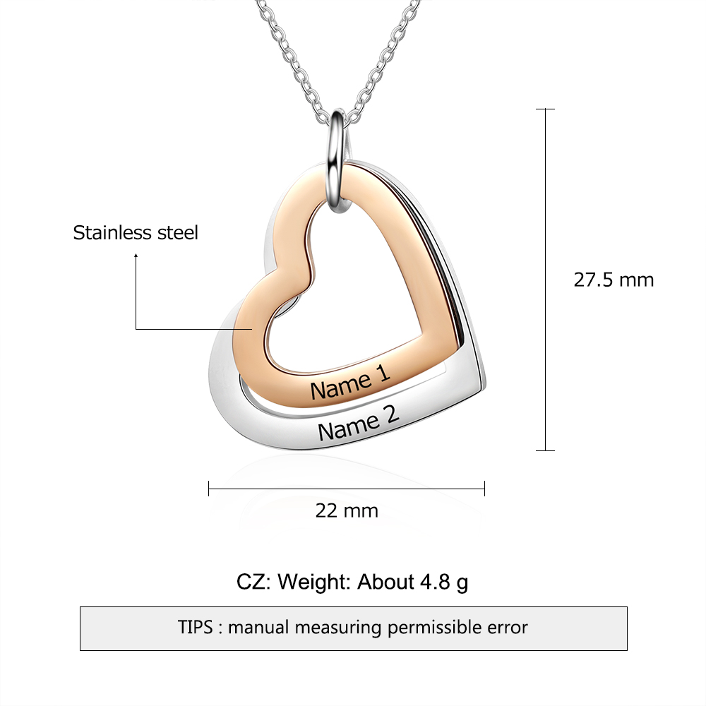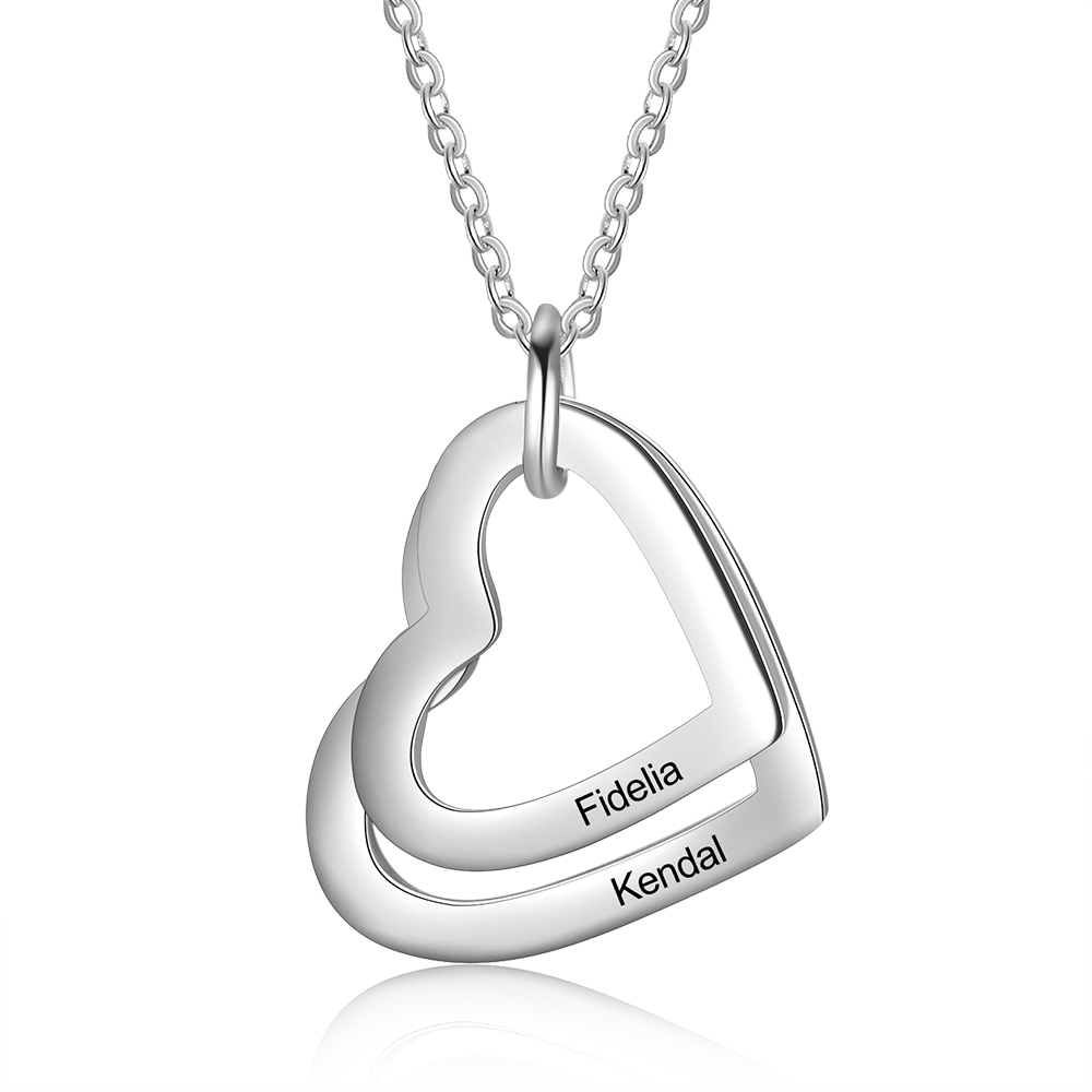 2 Names-Personalized Heart Necklace With 2 Heart Pendant Engraved Names Gift For Women