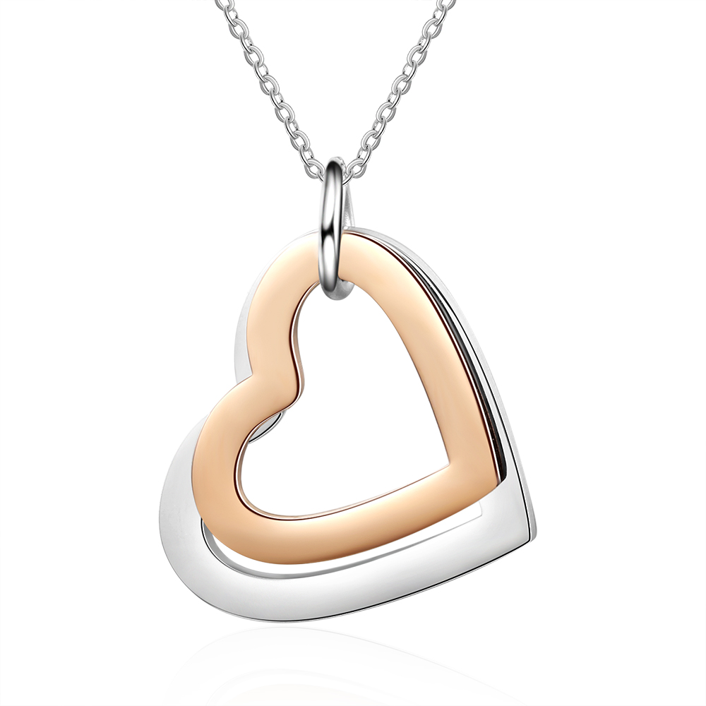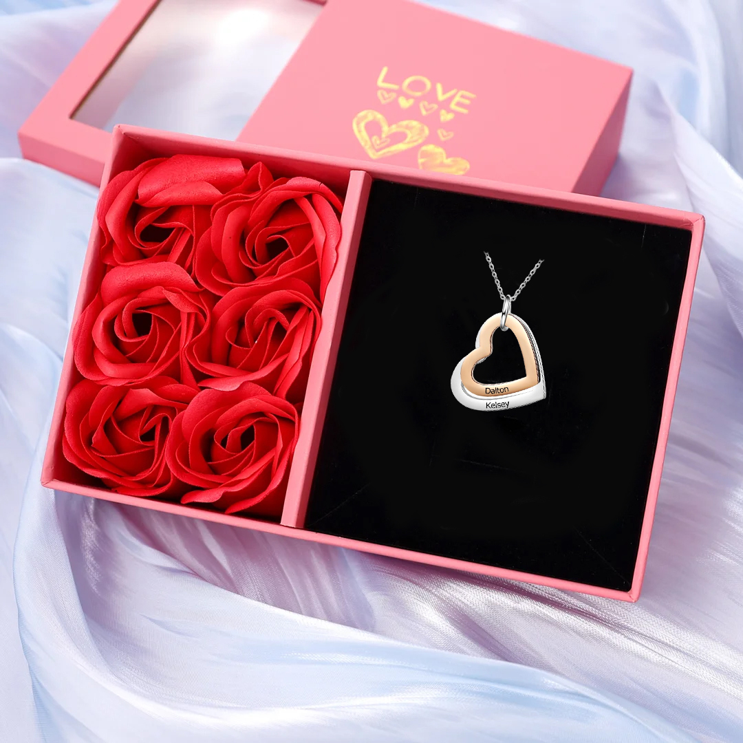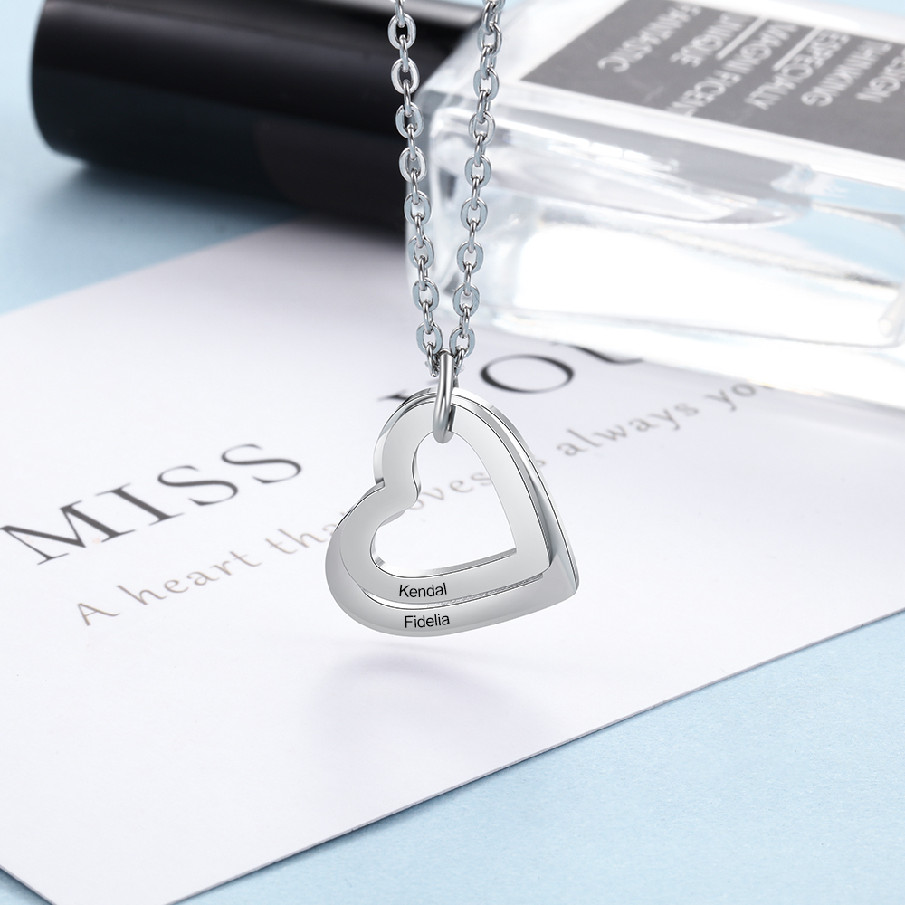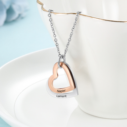 2 Names-Personalized Heart Necklace With 2 Heart Pendant Engraved Names Gift For Women