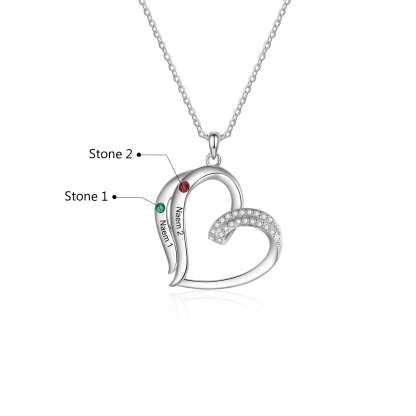 2 Names-Personalized Hearts Necklace Custom Birthstone Necklace Gifts for Mom