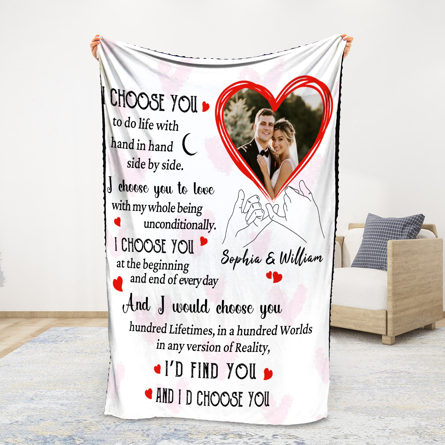 2 Names-Personalized I Choose You Couple Blanket Custom Photo Sweet Gift For Valentine's Day