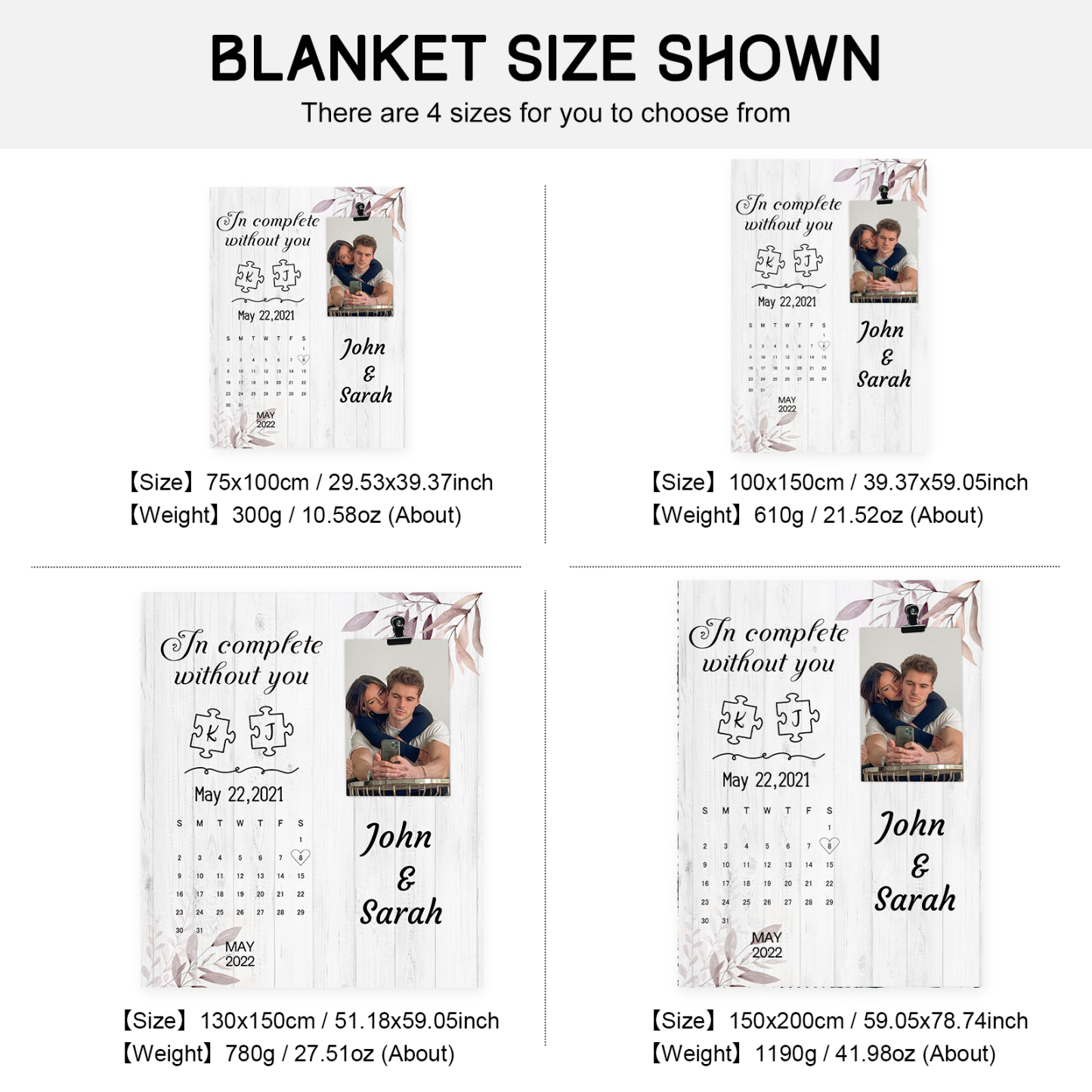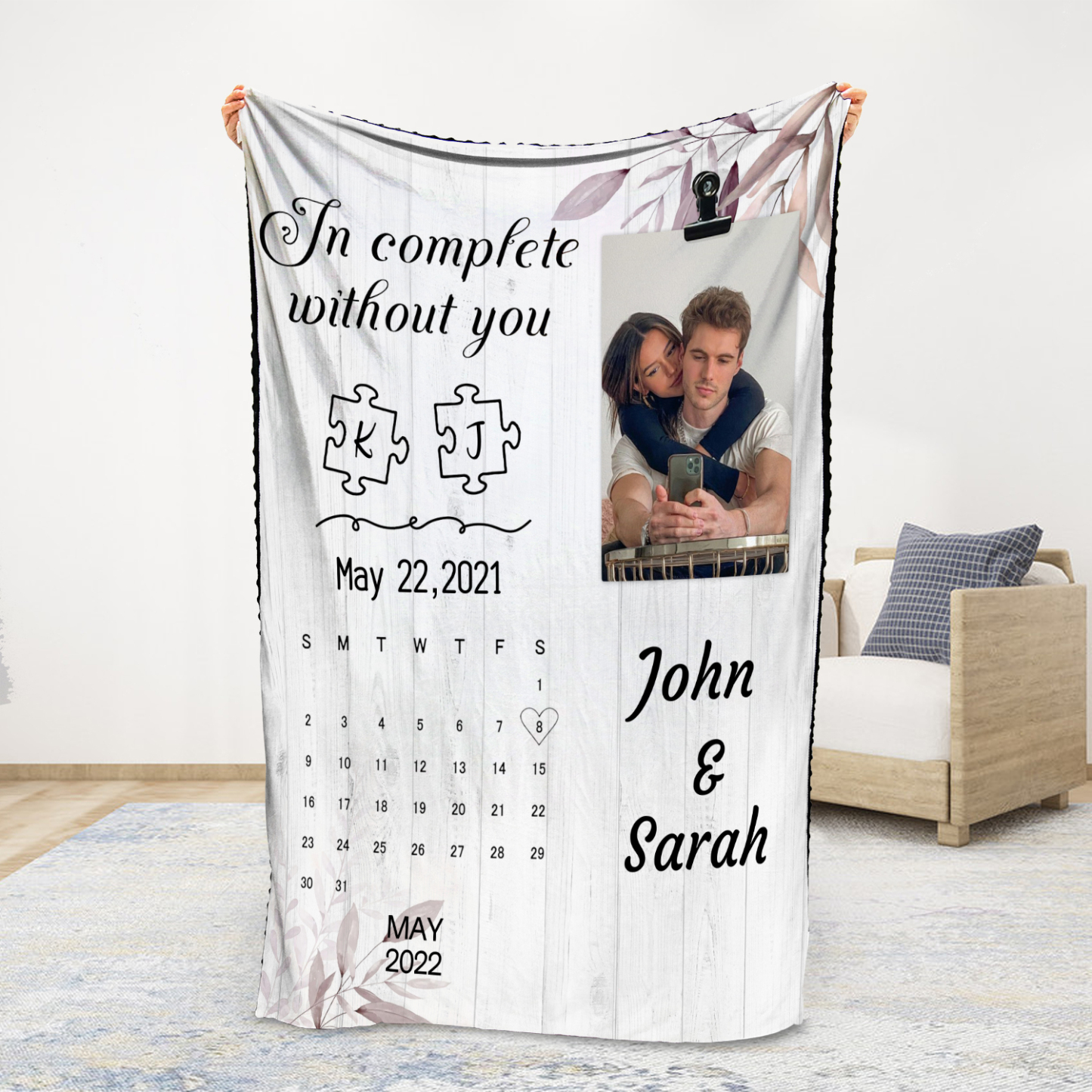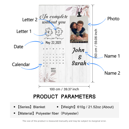 2 Names-Personalized In Complete Without You Couple Blanket Custom Photo And Date Sweet Gift For Valentine's Day