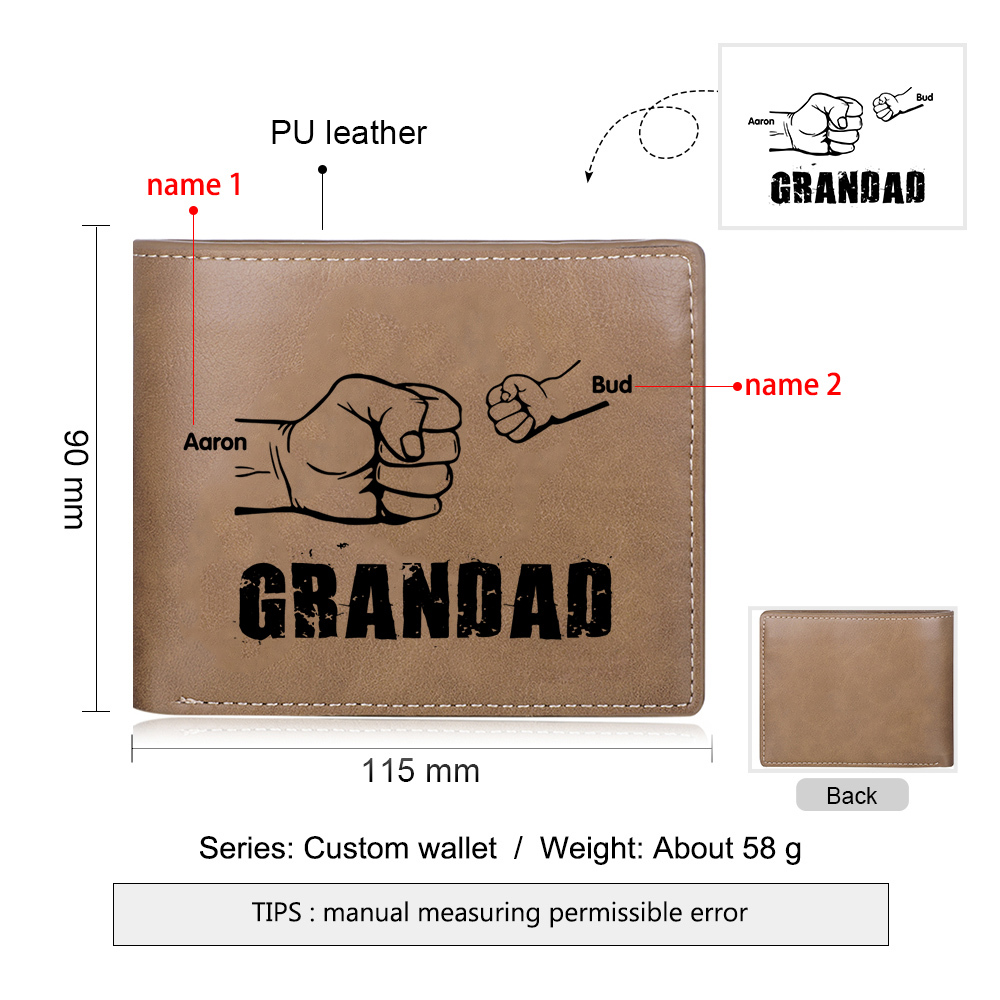 2 Names-Personalized Leather Men Wallet Engraved 2 Names Fist Bump Folding Wallet Gift For Grandad