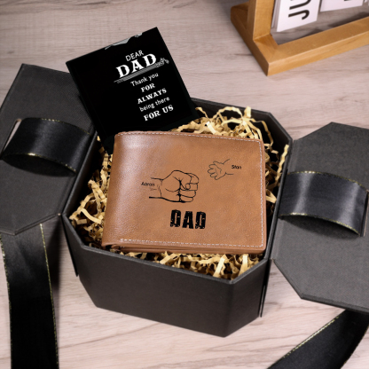 2 Names-Personalized Leather Men Wallet Engraved 2 Names Fist Bump Folding Wallet Gift Set For Dad