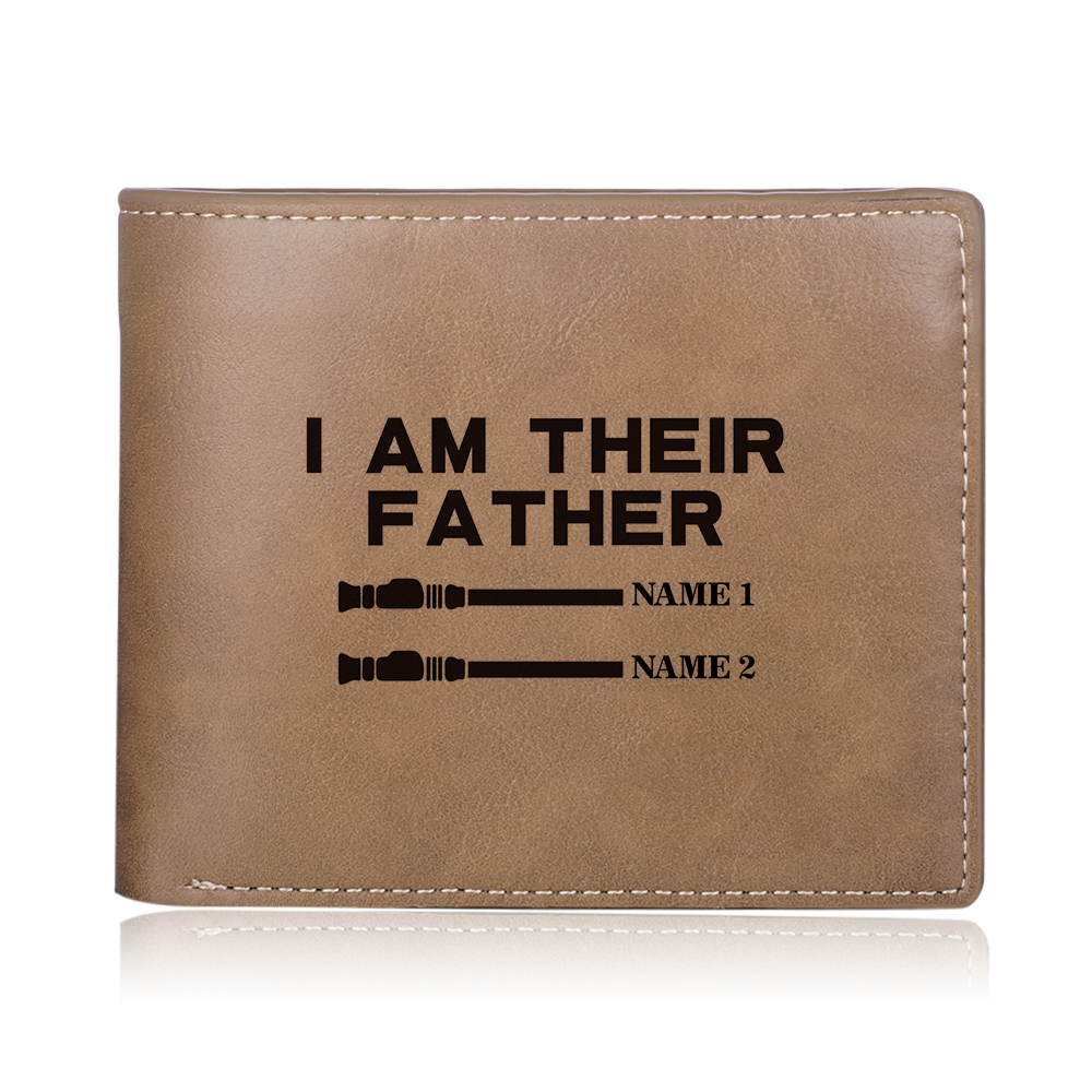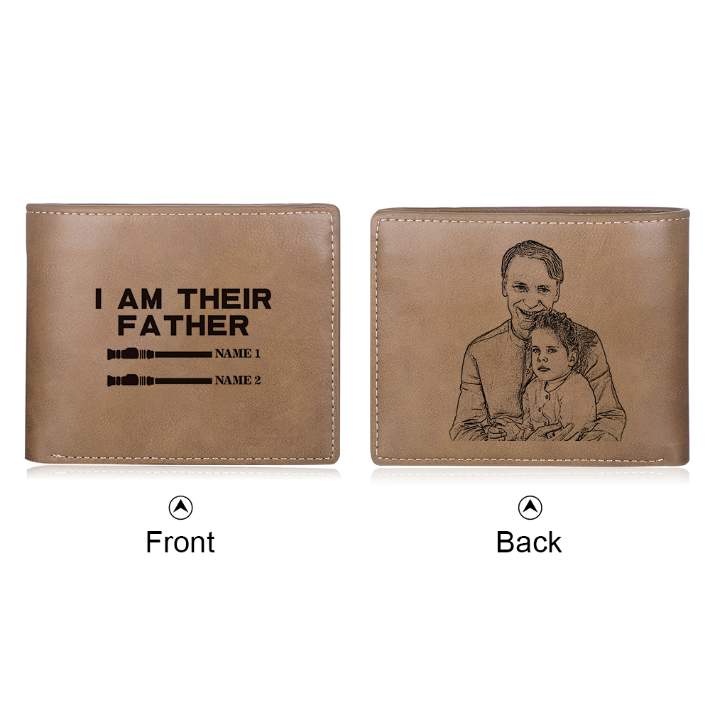2 Names-Personalized Leather Mens Horizontal Wallet Engraved 2 Names And Photo I Am Their Father Folding Wallet Father's Day Gifts For Dad