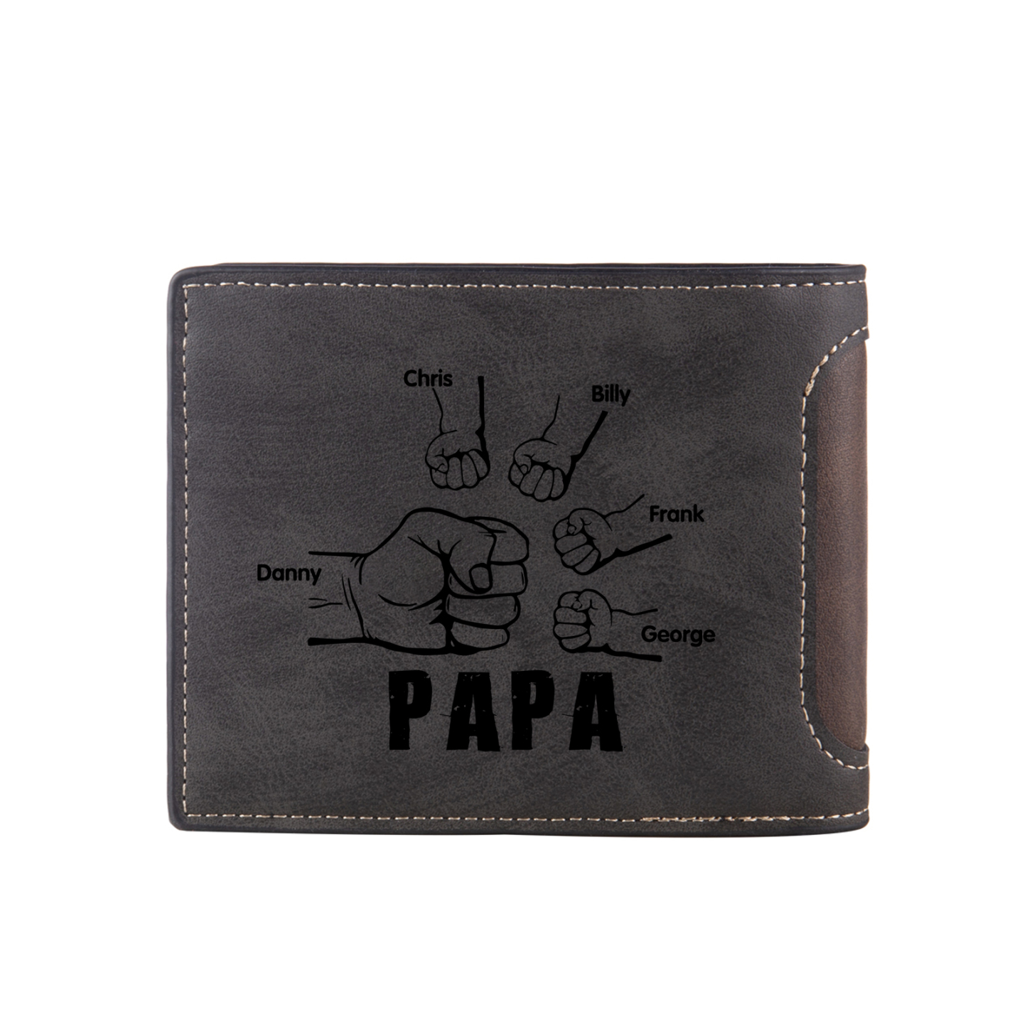5-Names Personalized Leather Men's wallet With Card Slot Engraved With Name And Photo For Papa As a Father's Day Gift