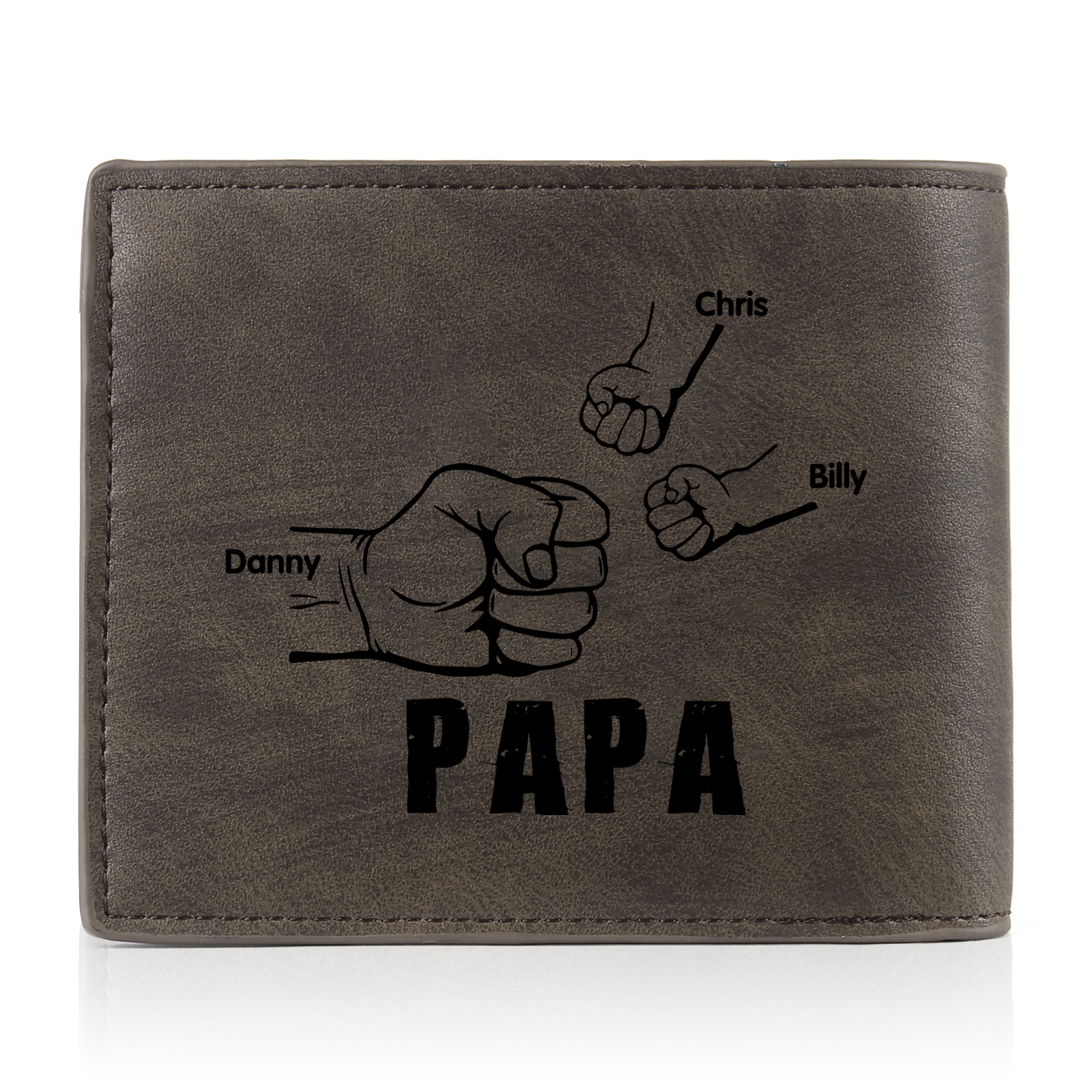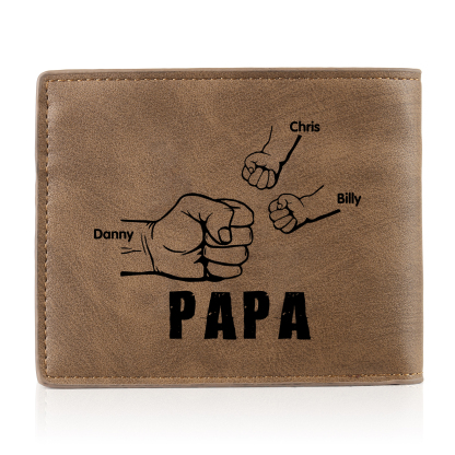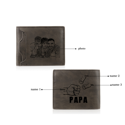 3-Names Personalized Leather Men's wallet With Card Slot Engraved With Name And Photo For Papa As a Father's Day Unique Gift