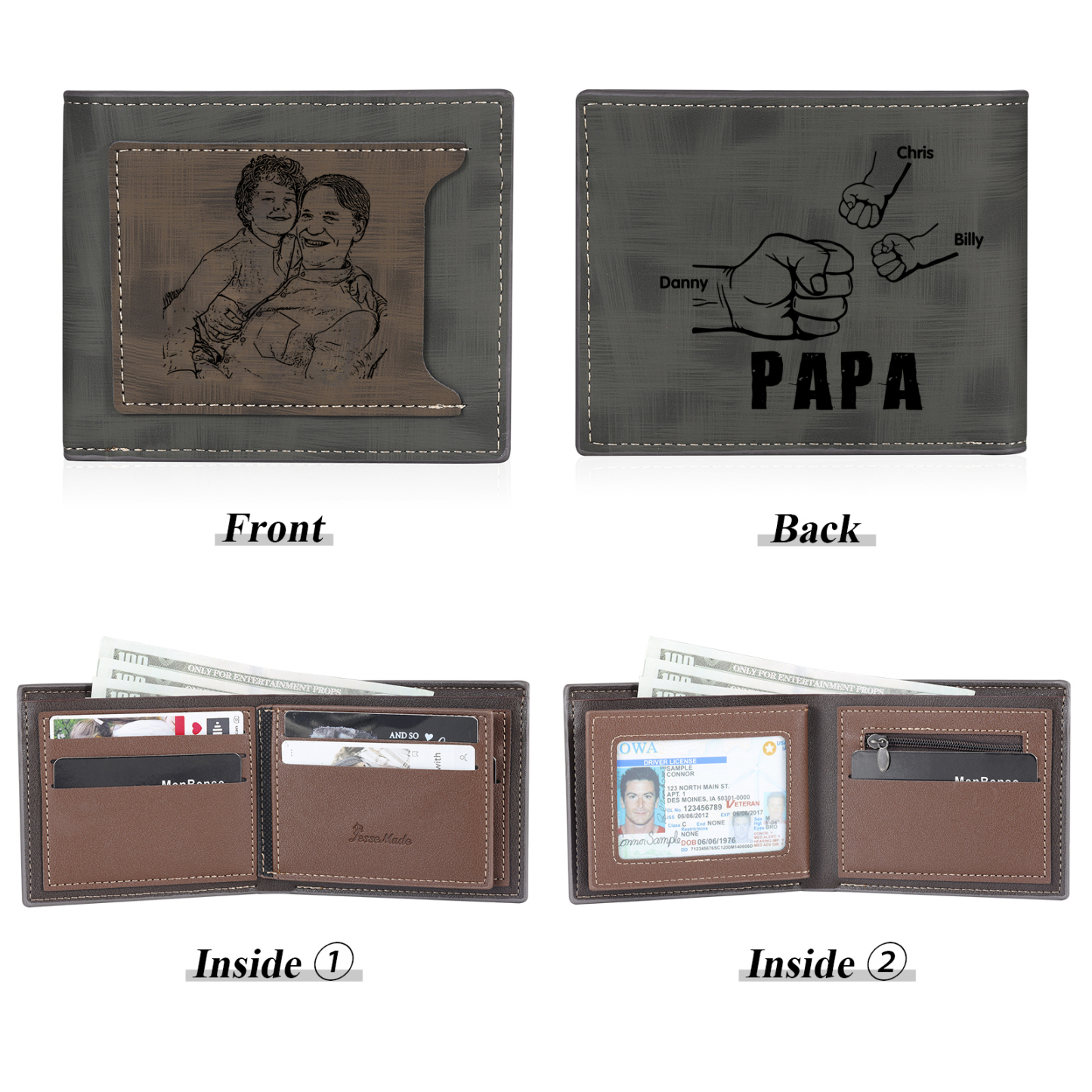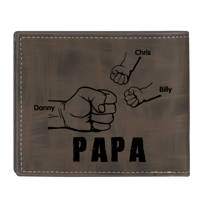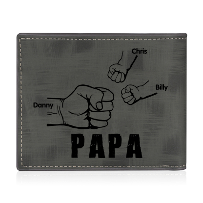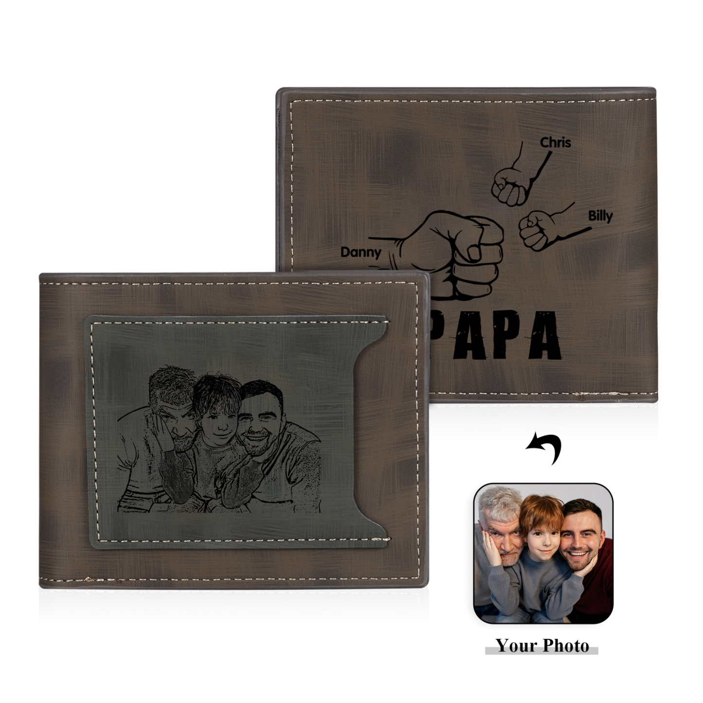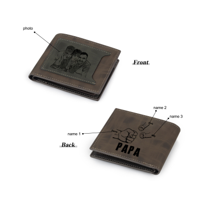 3-Names Personalized Leather Men's wallet With Card Slot Engraved With Name And Photo For Papa As a Father's Day Unique Gift
