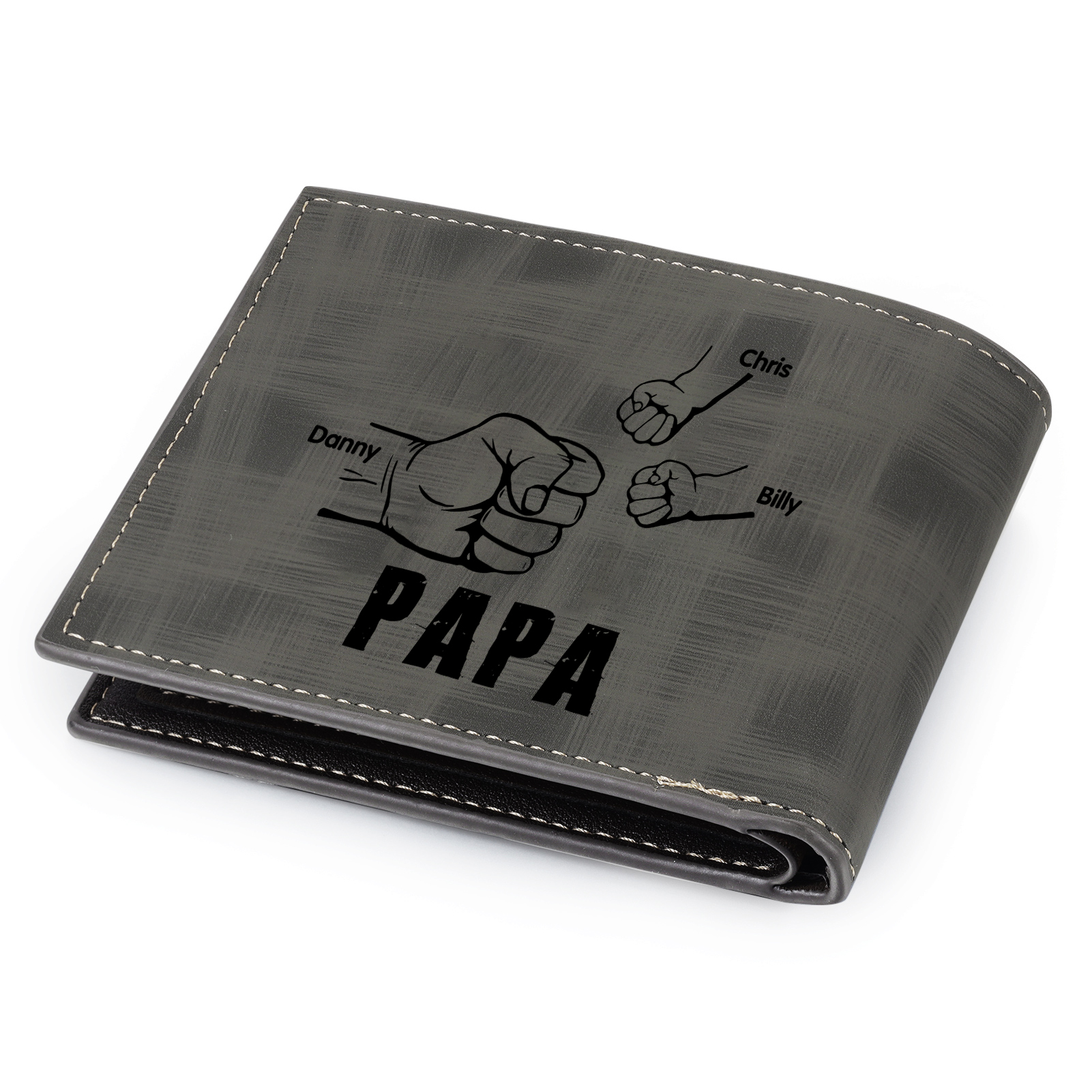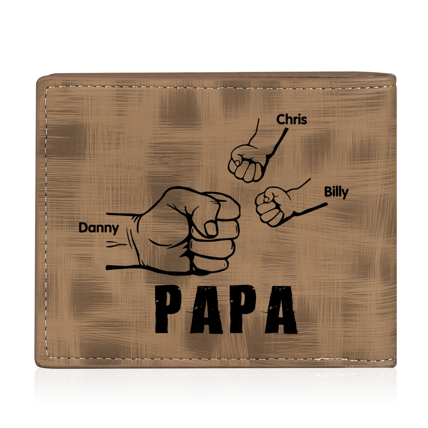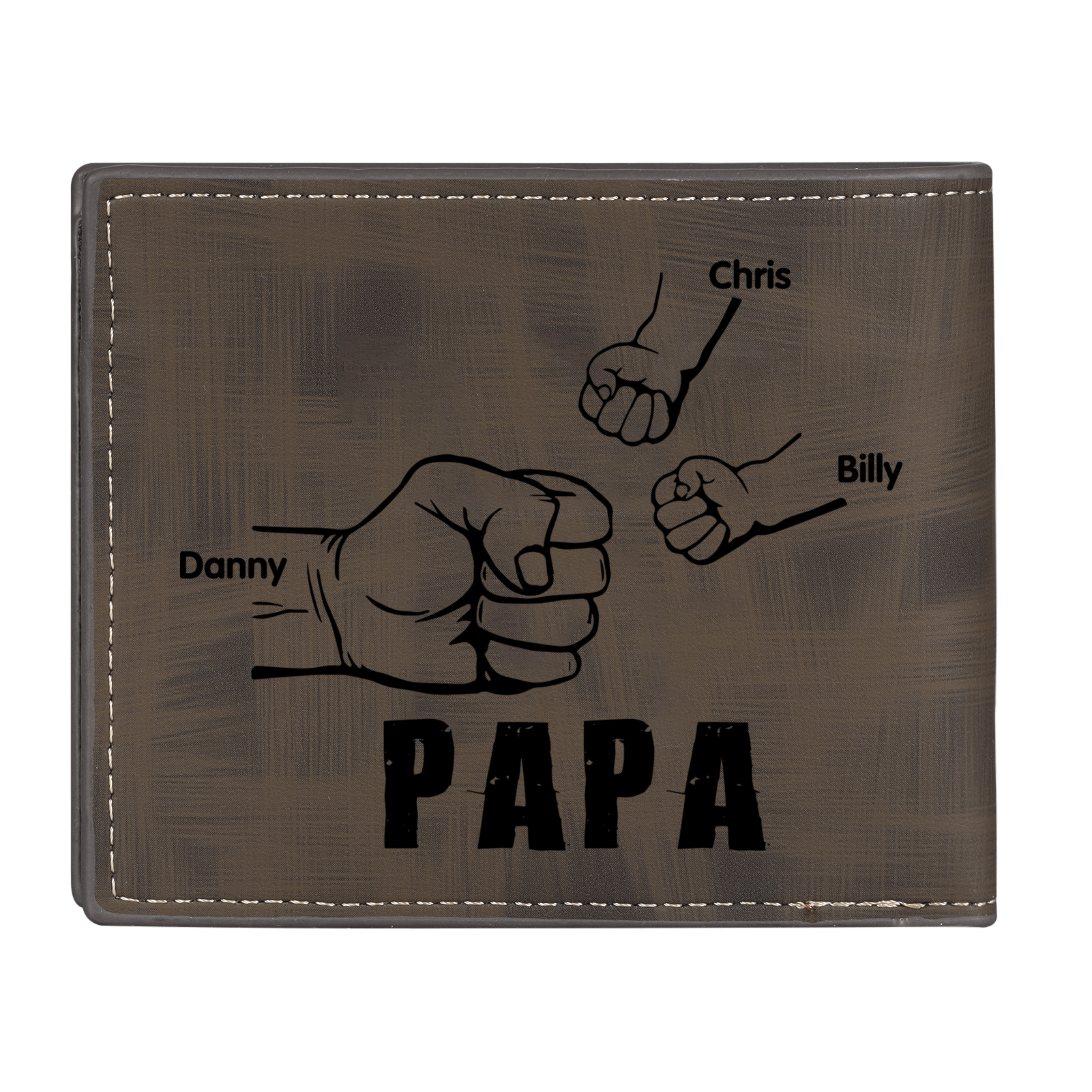 3-Names Personalized Leather Men's wallet With Card Slot Engraved With Name And Photo For Papa As a Father's Day Unique Gift