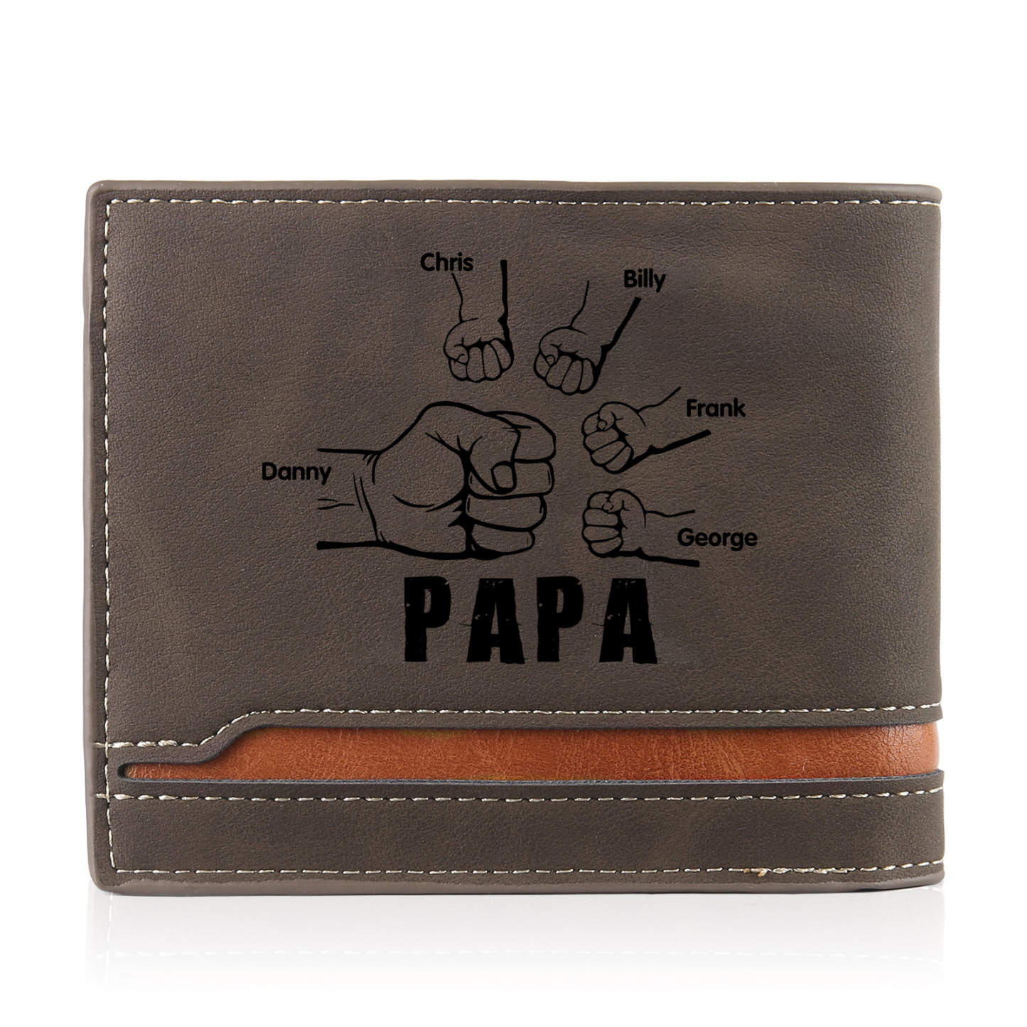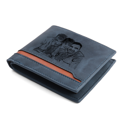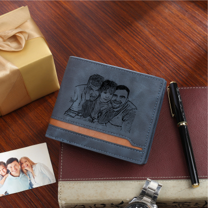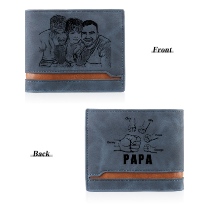 5-Names Personalized Leather Men's wallet With Card Slot Engraved With Name And Photo For Papa As a Father's Day Gift