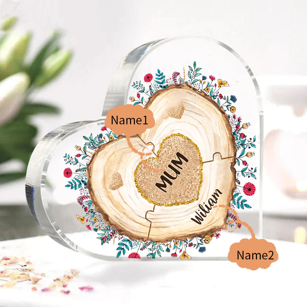 2 Names-Personalized Mom Acrylic Heart Keepsake Growth Rings Ornaments Gifts Set With Gift Box for Grandma/Mother