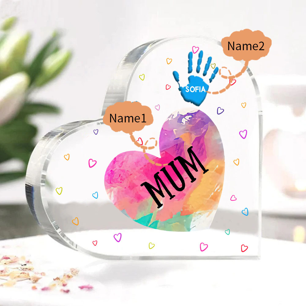 2 Names-Personalized Mom Acrylic Heart Keepsake Palm Ornaments Gifts Set With Gift Box for Grandma/Mother